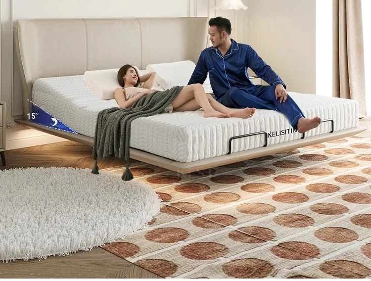 (First layer cowhide) bed + (German OKIN three motors) semi-Separates bed frame +(AI) spring latex mattress