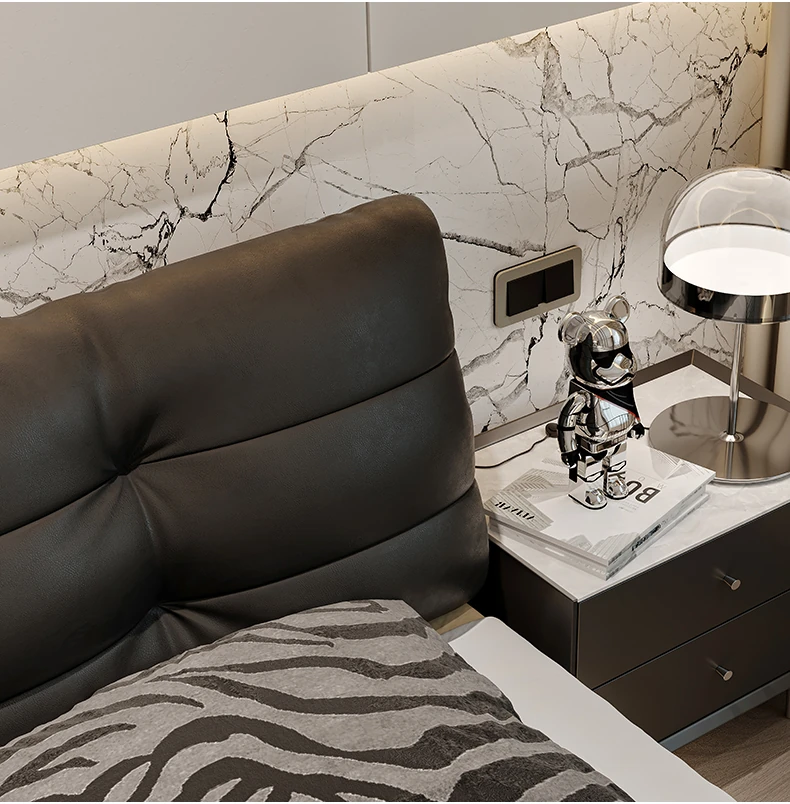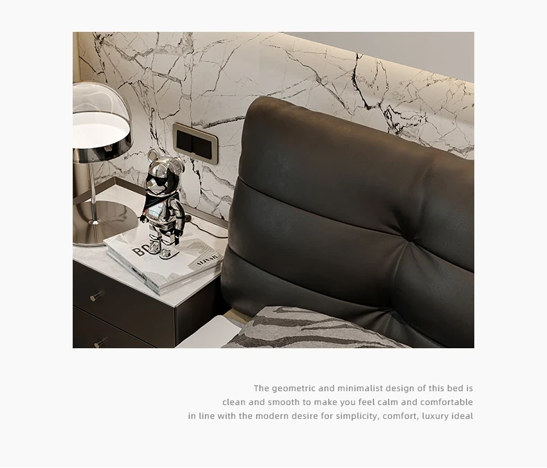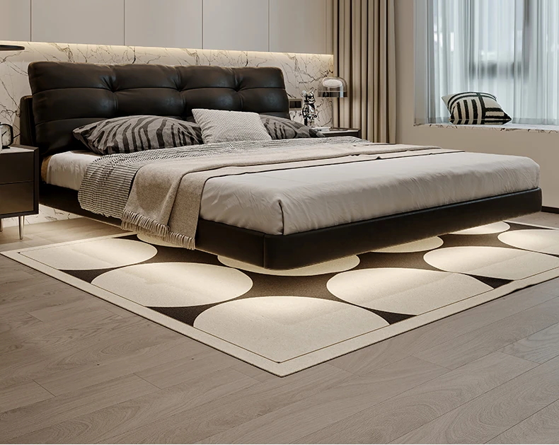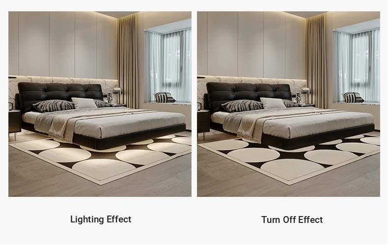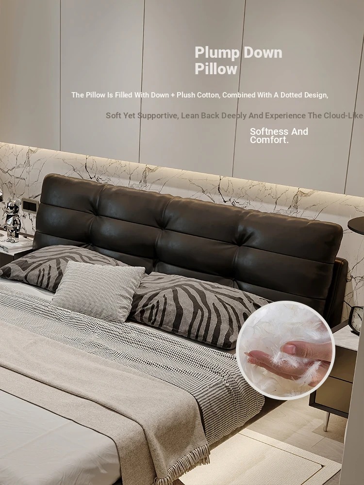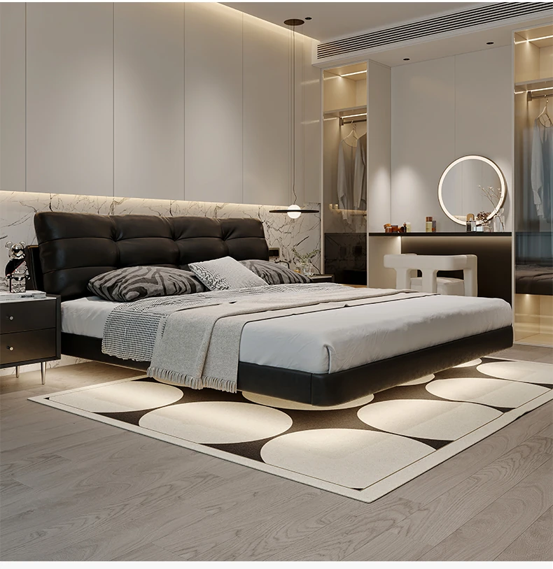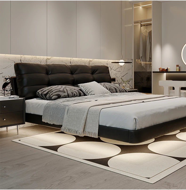 Cloud Floating Bed - Italian Minimalist Black Genuine Leather Modern French Light Luxury Upholstered Bed with Cozy Down Padding - Perfect for Trendy Spaces!