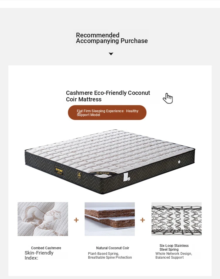 [Flagship Edition] Single Bed + (Hard) Cashmere Environmental-Friendly Coconut Mattress (Light Belt)
