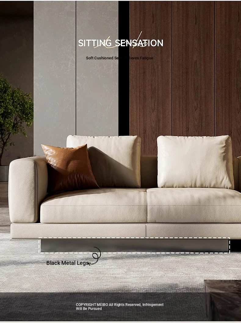 Connolly Italian Minimalist Top Grain Leather Floating Sofa Set for Villas and Spacious Living Rooms - Stylish and Contemporary Design