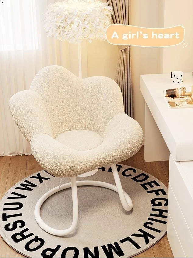 Creamy Aesthetic Makeup Vanity Chair - Chic and Elegant Bedroom Dressing Chair for Women, Perfect as a Stylish Backrest Seat in Living Room or Dining Area
