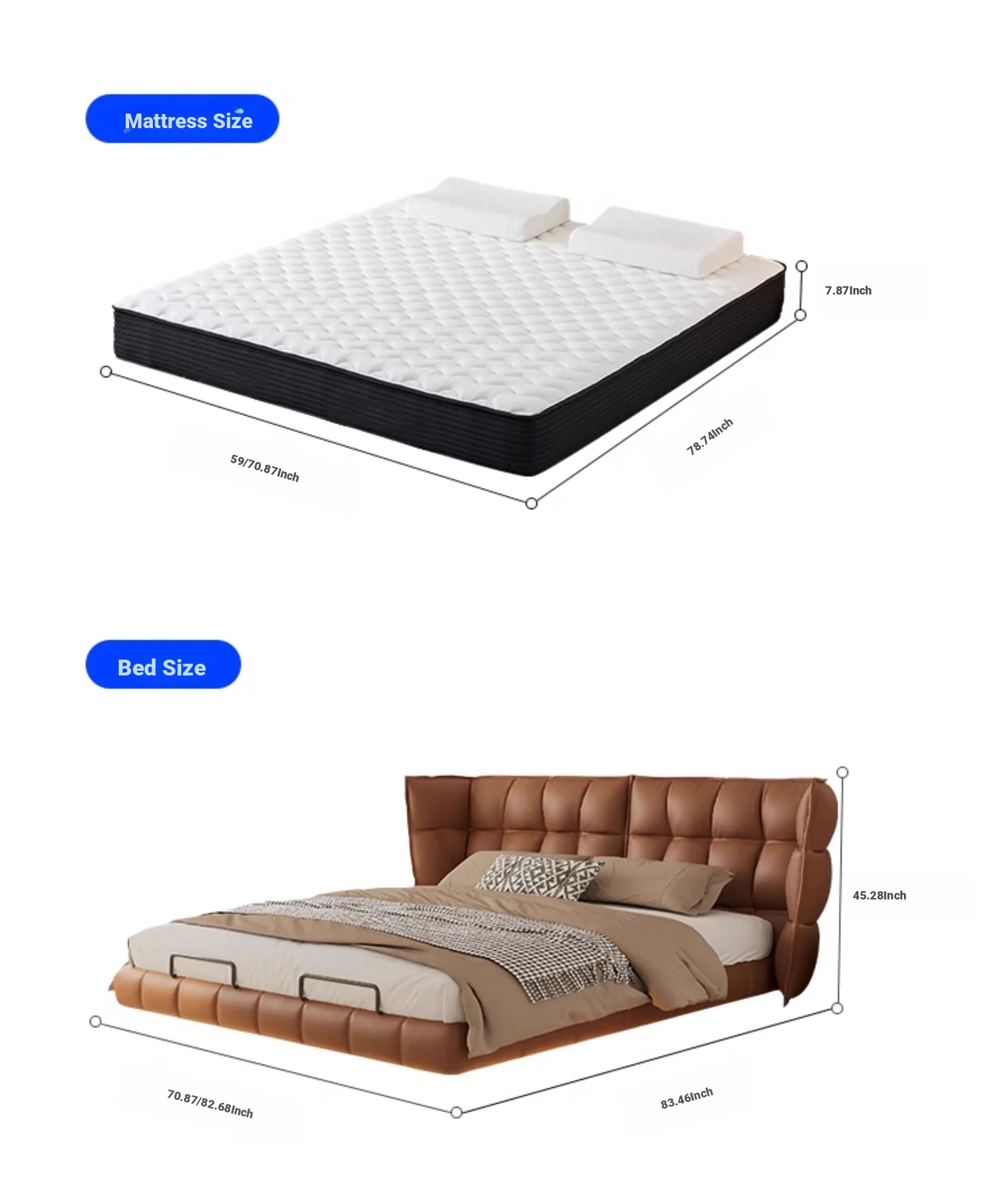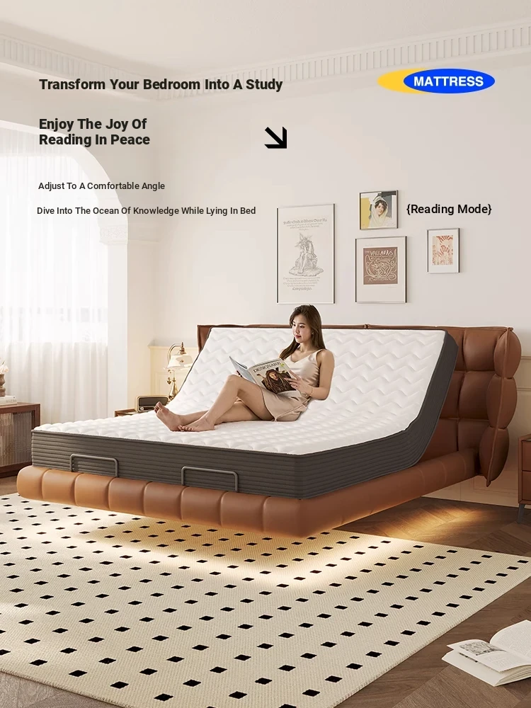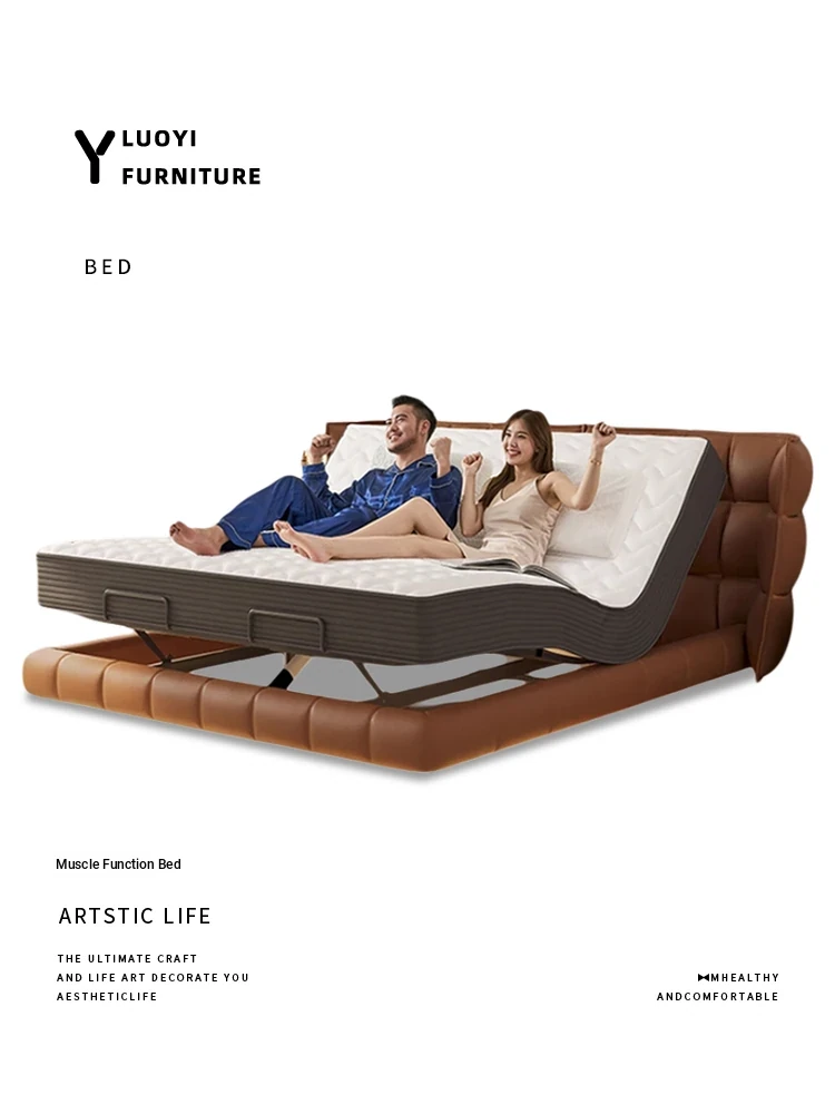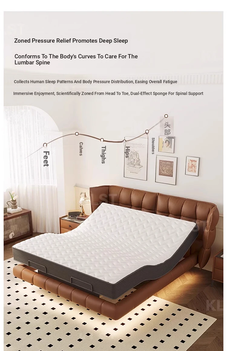 Electric Functional Muscle Suspension Bed - Minimalist Modern Genuine Leather Bed for Master Bedroom, Featuring Top-Grade Cowhide, Adjustable Height, and Independent Operation for Ultimate Comfort and Style.