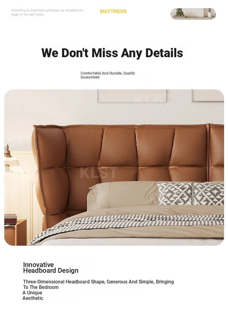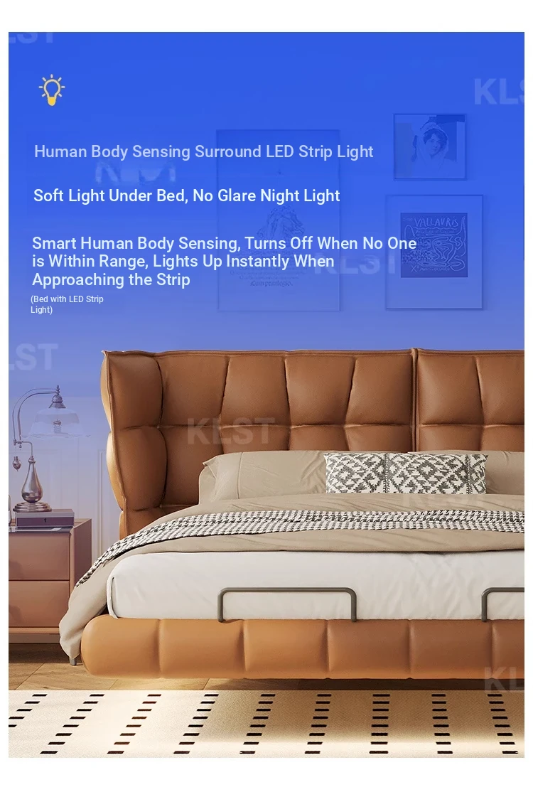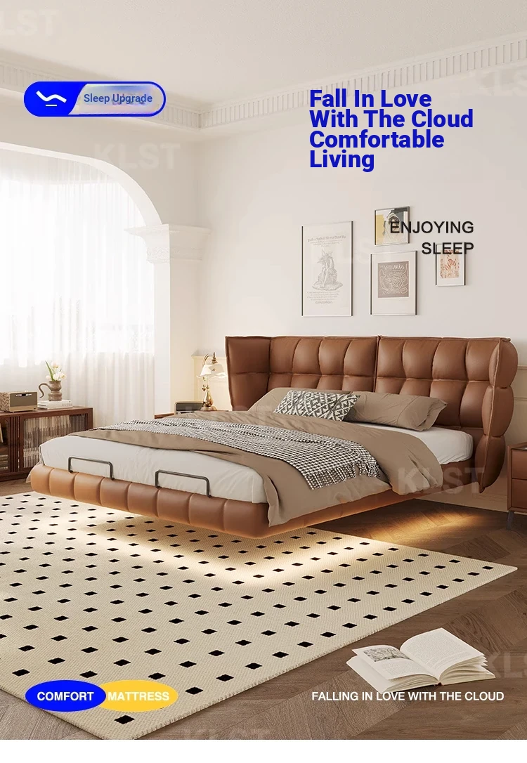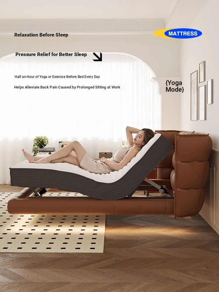 Electric Functional Muscle Suspension Bed - Minimalist Modern Genuine Leather Bed for Master Bedroom, Featuring Top-Grade Cowhide, Adjustable Height, and Independent Operation for Ultimate Comfort and Style.