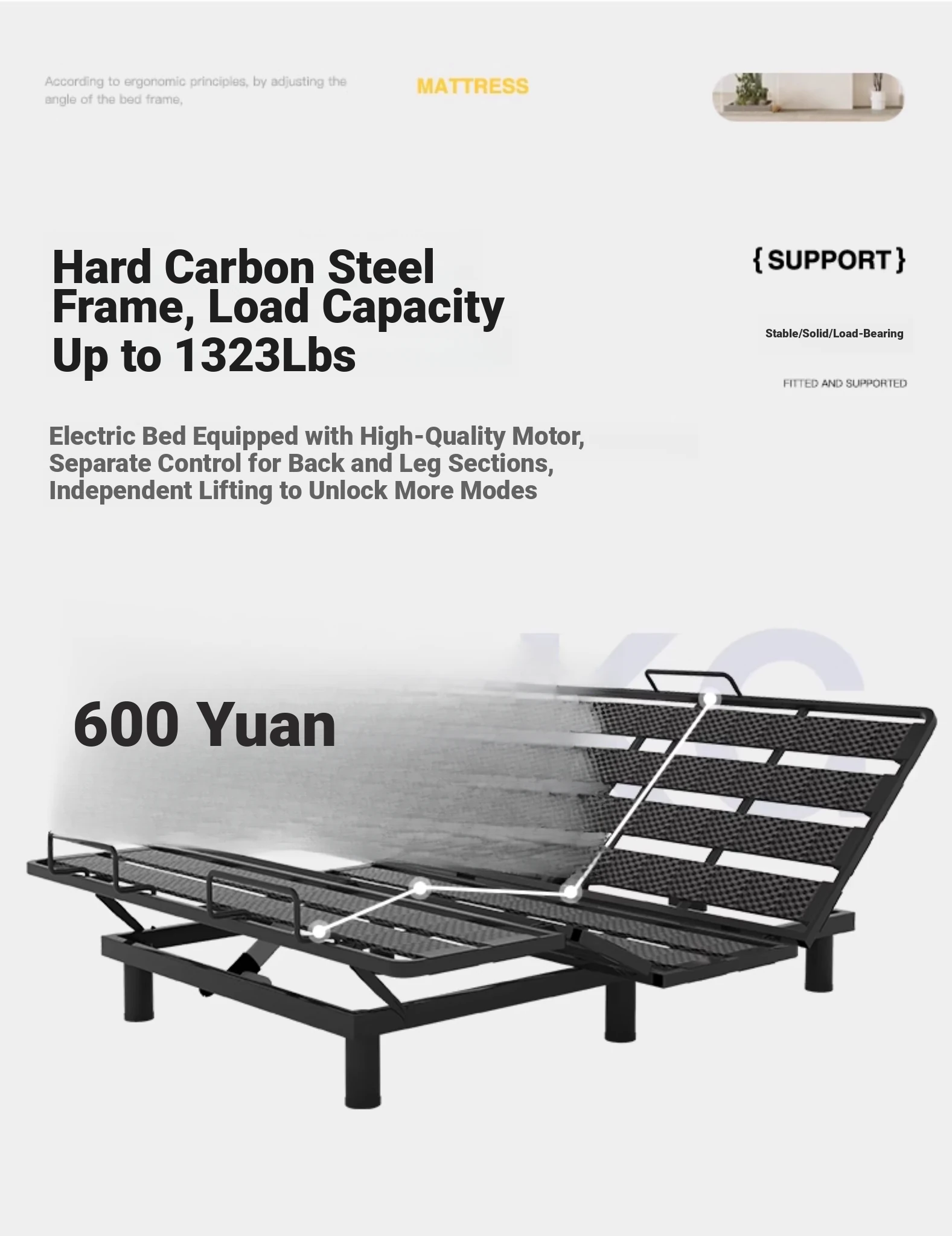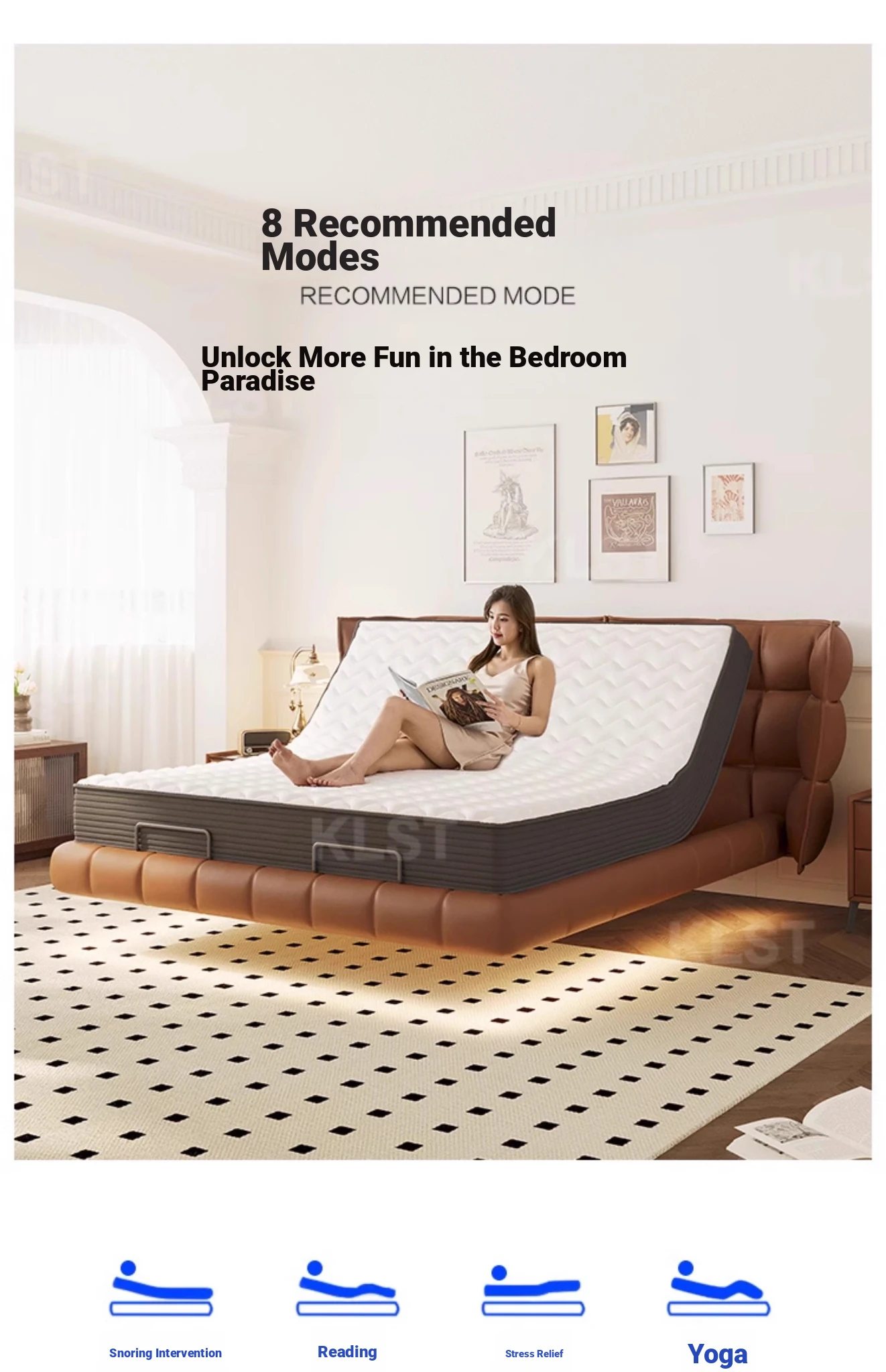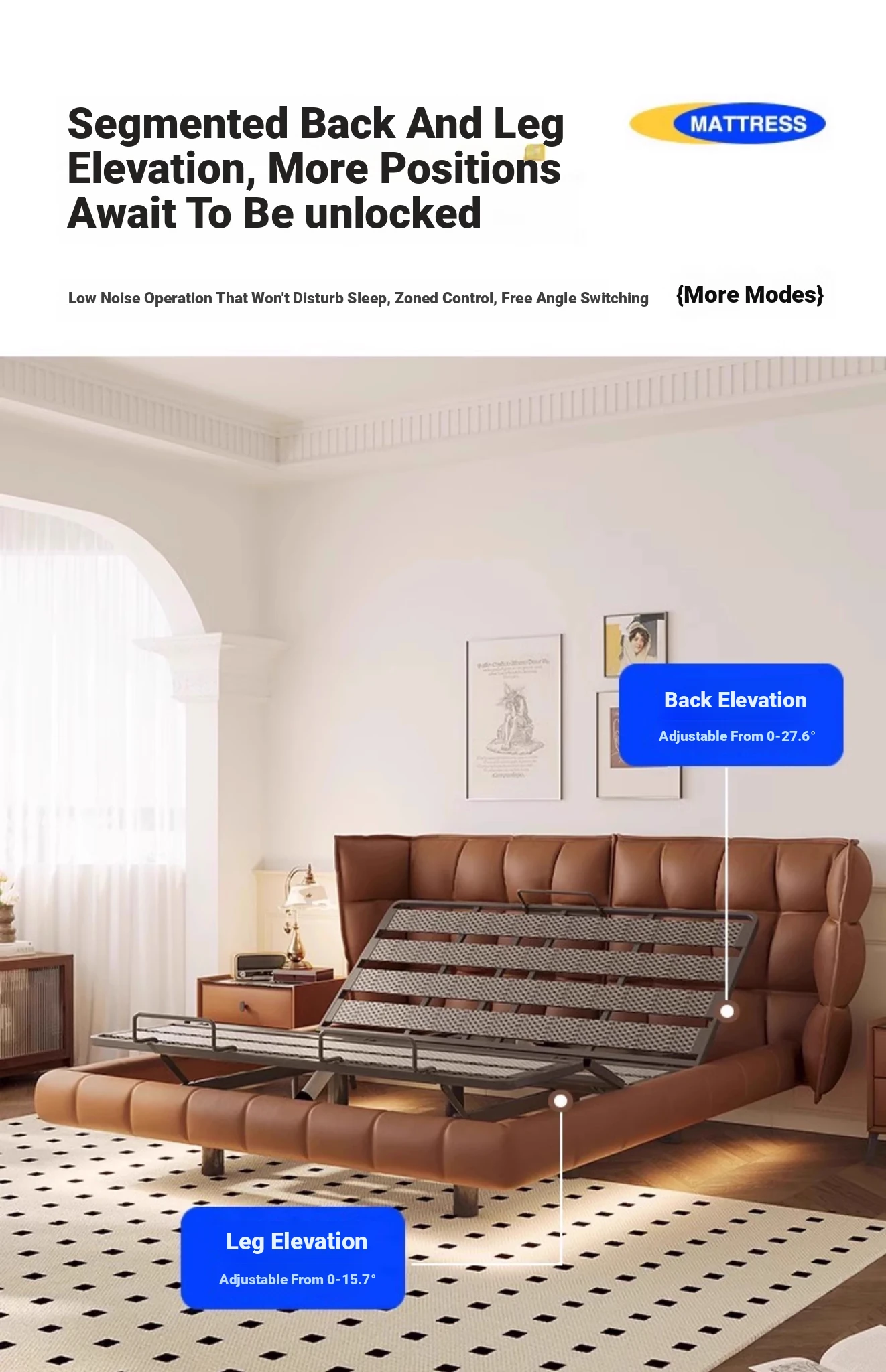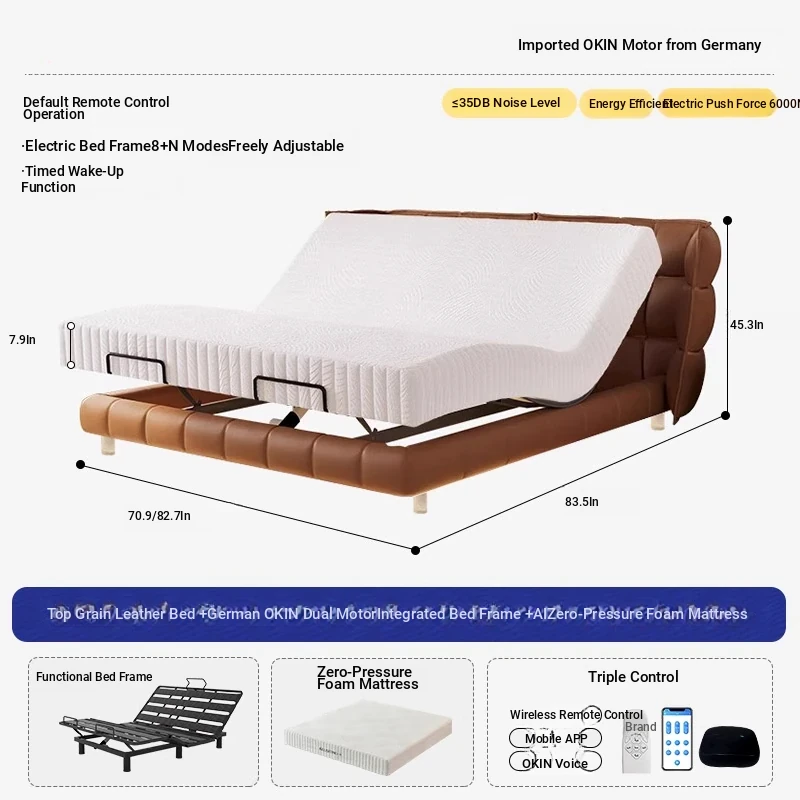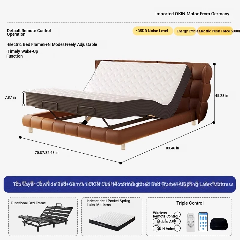 (First layer cowhide bed) + (German OKIN three motors) semi-Separates bed frame +(AI) zero pressure sponge mattress