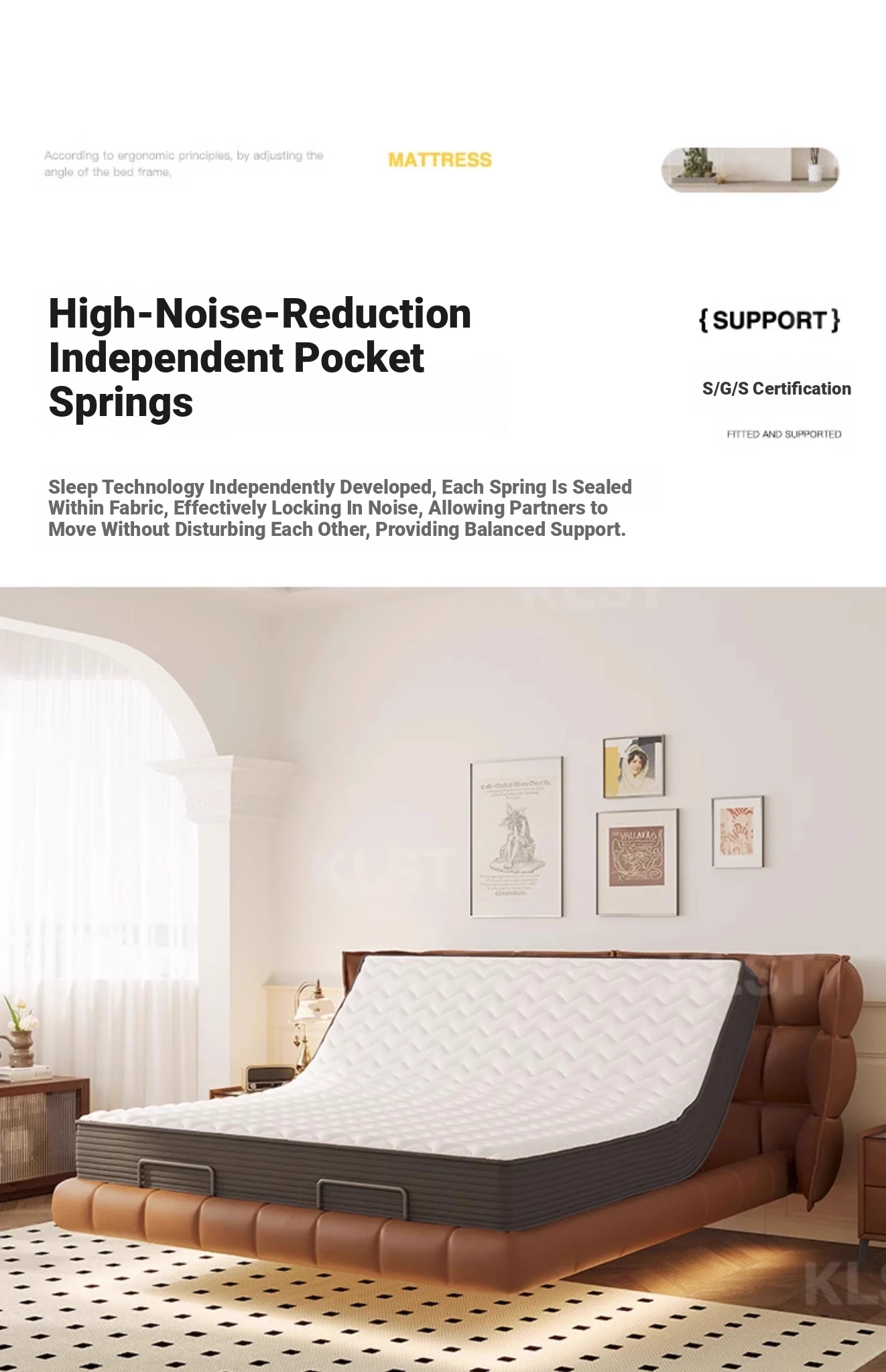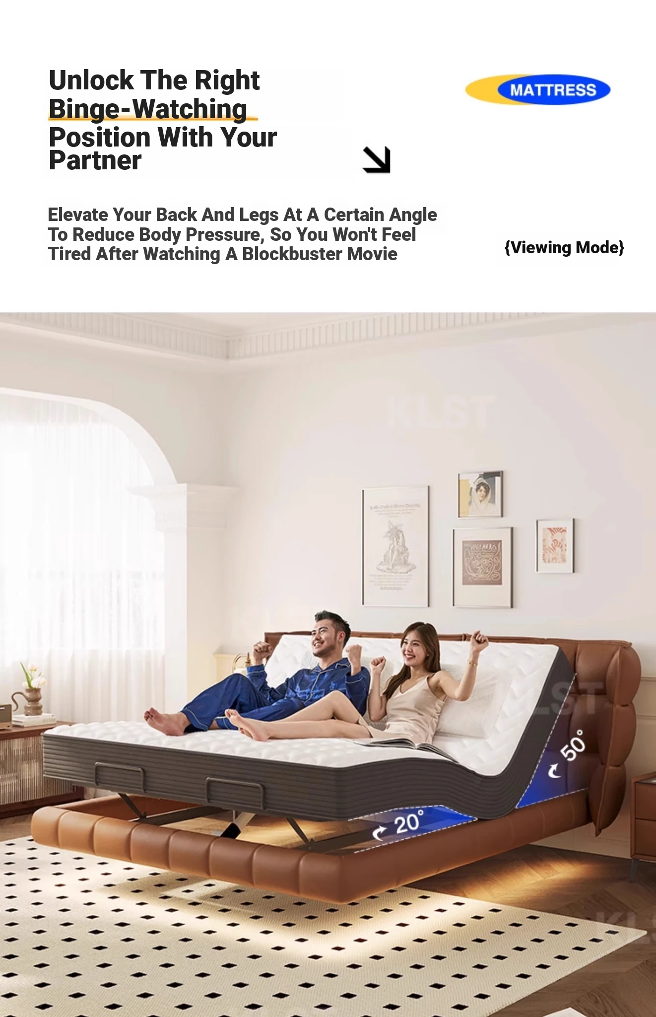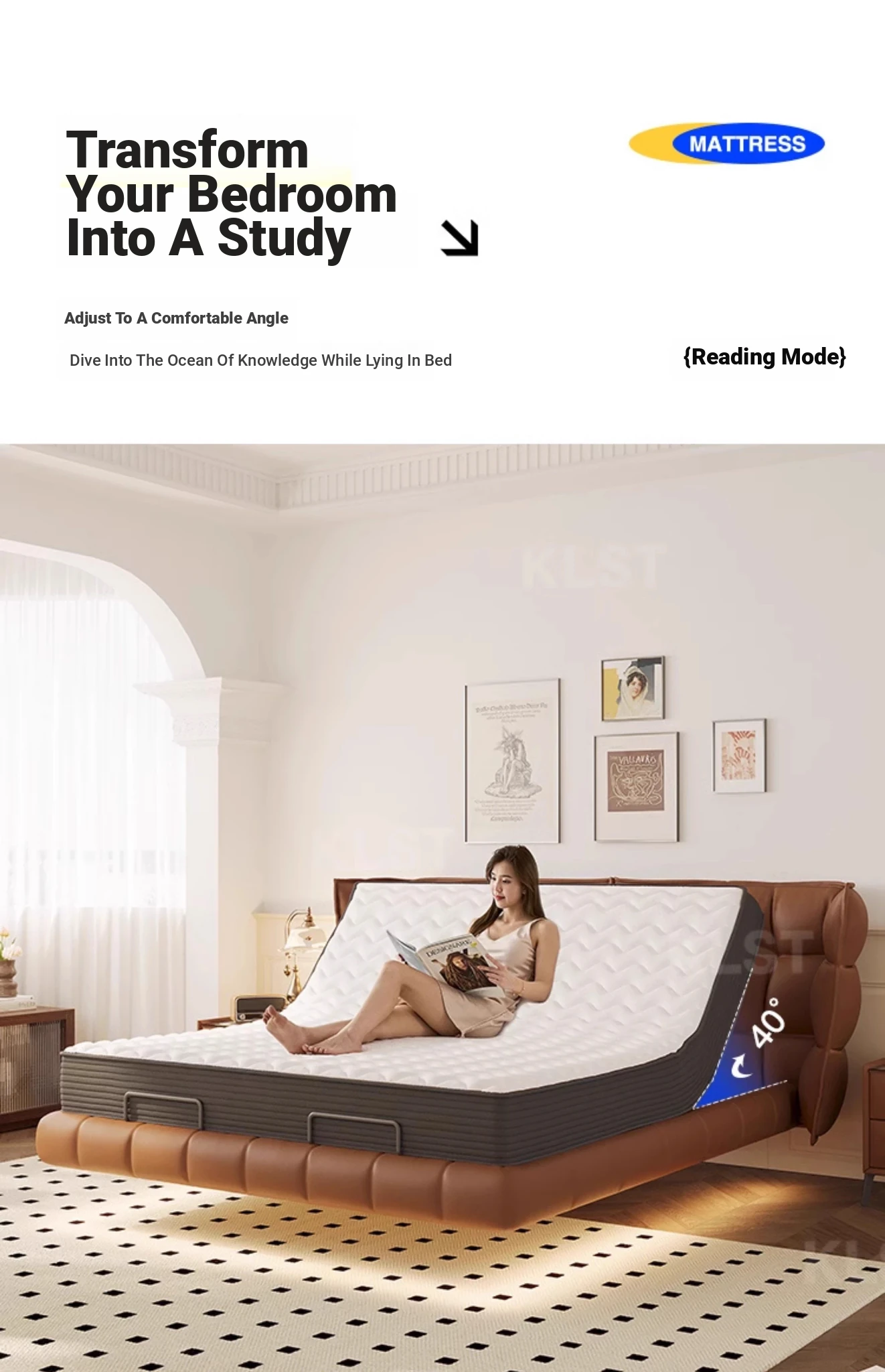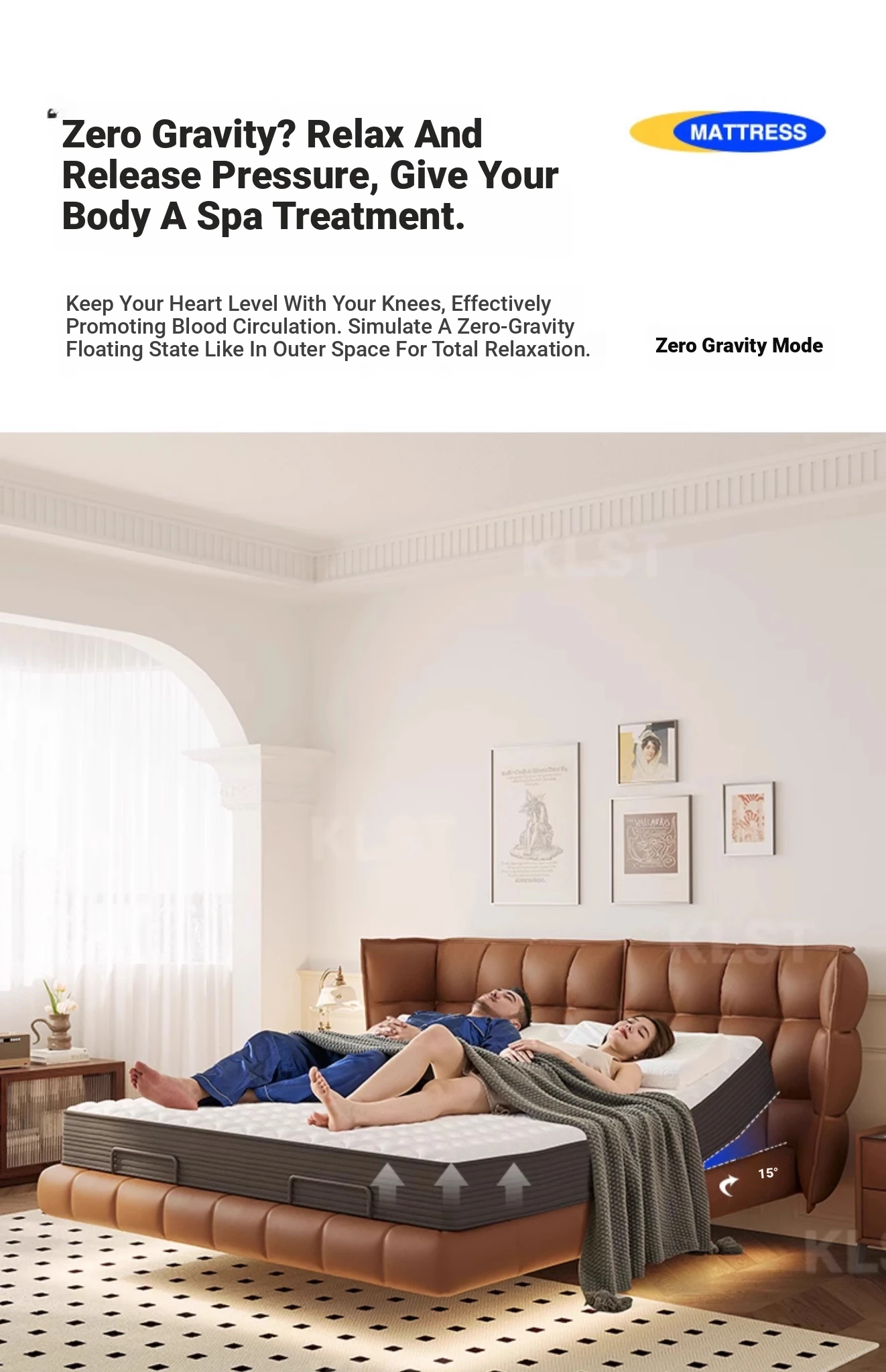 (First layer cowhide bed) + (German OKIN three motors) semi-Separates bed frame +(AI) zero pressure sponge mattress