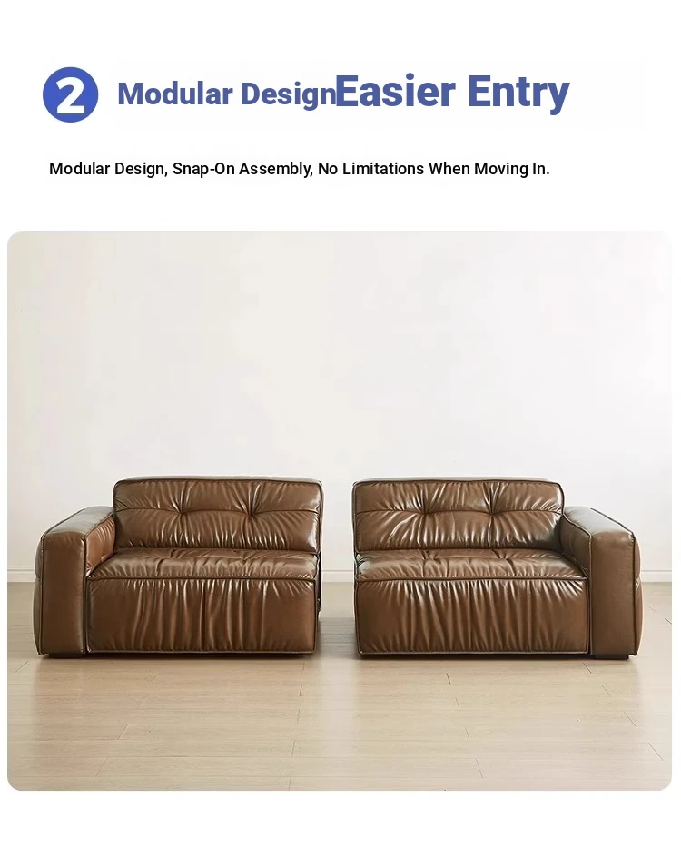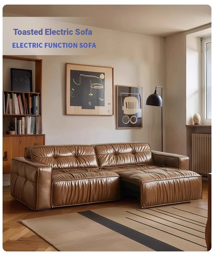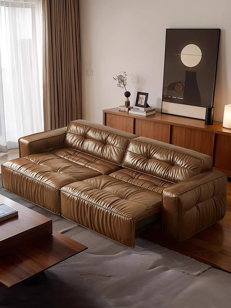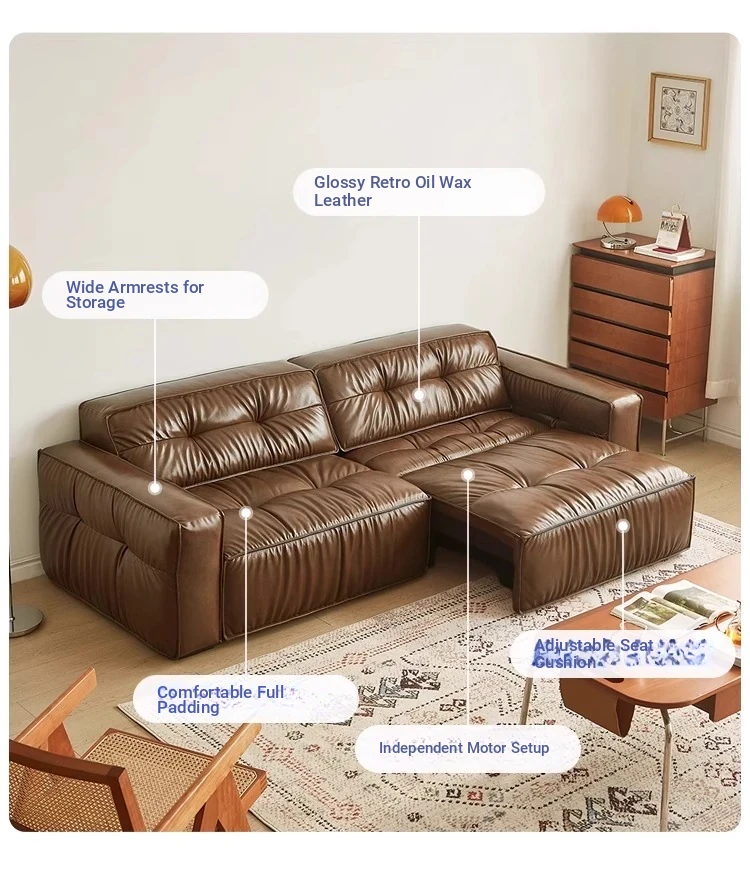 Electric Sliding Sofa - Italian Minimalist Retro Design, Made with Premium Waxed Top-Grain Leather, Perfect for Living Rooms, Wall-Free & Convertible into a Bed
