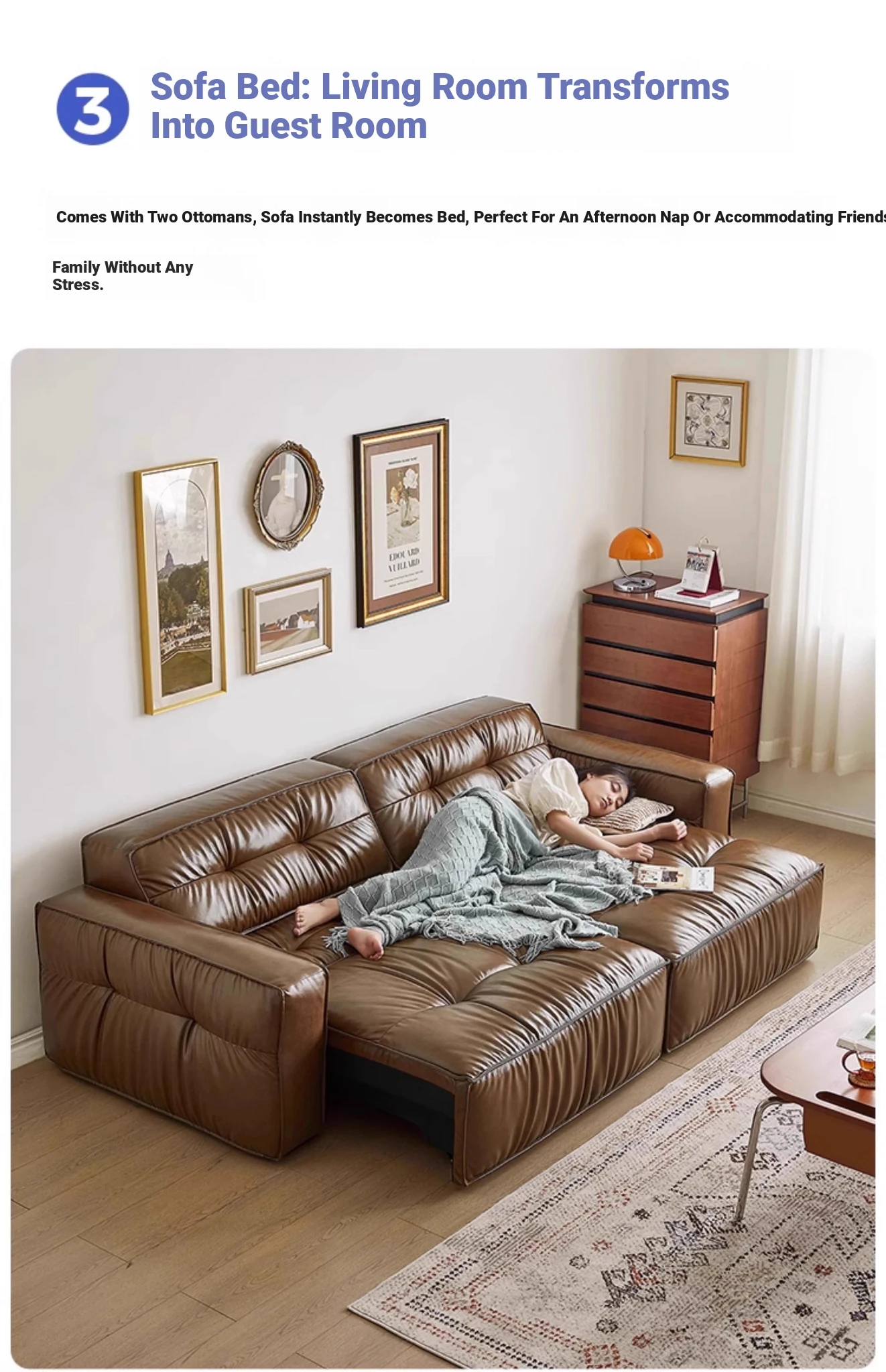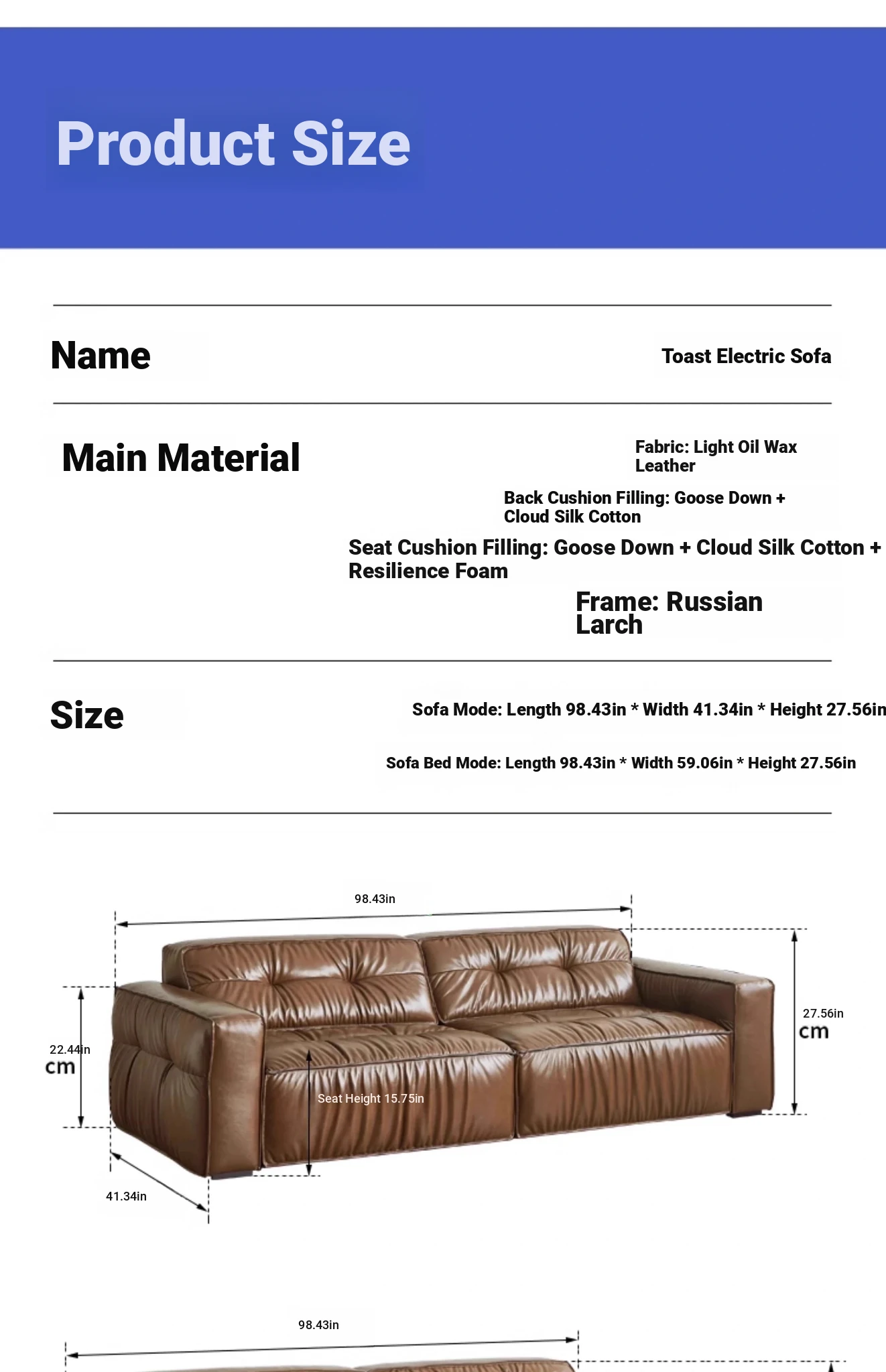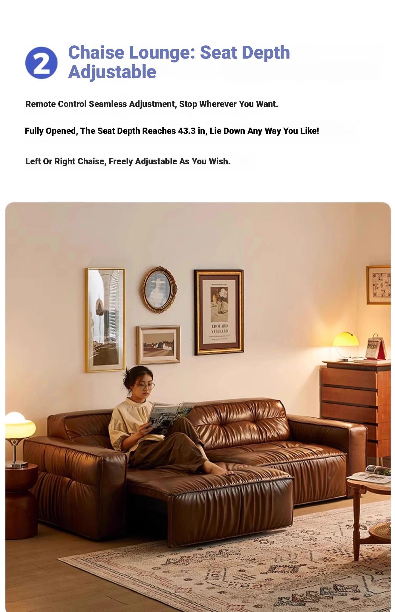 Electric Sliding Sofa - Italian Minimalist Retro Design, Made with Premium Waxed Top-Grain Leather, Perfect for Living Rooms, Wall-Free & Convertible into a Bed