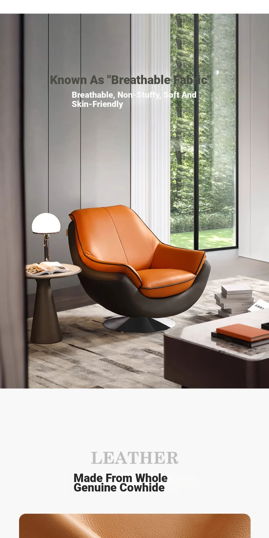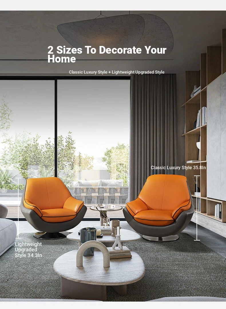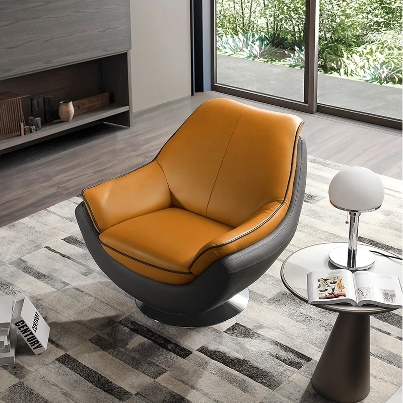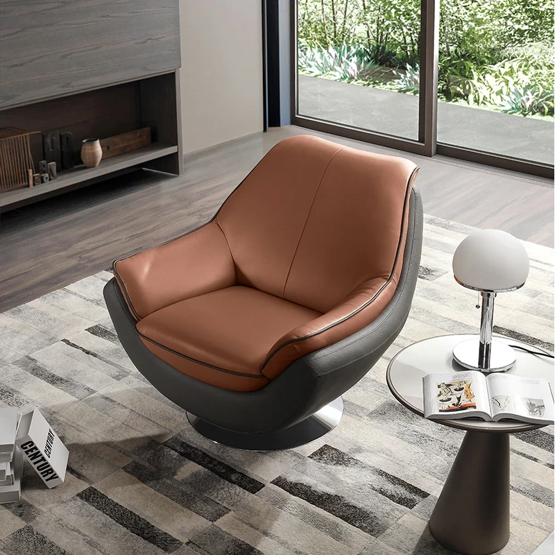 Farrell Luxury Modern Leather Single Sofa Chair with Swivel for Relaxation – Minimalist High-End Armchair for Your Living Room