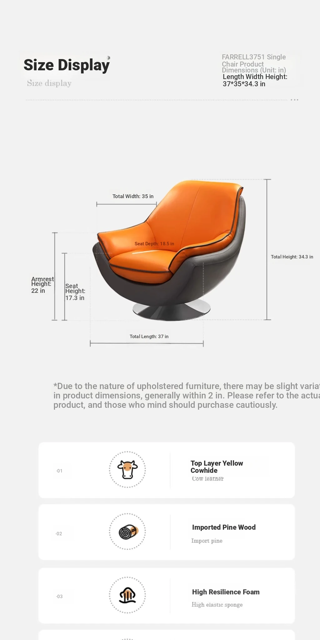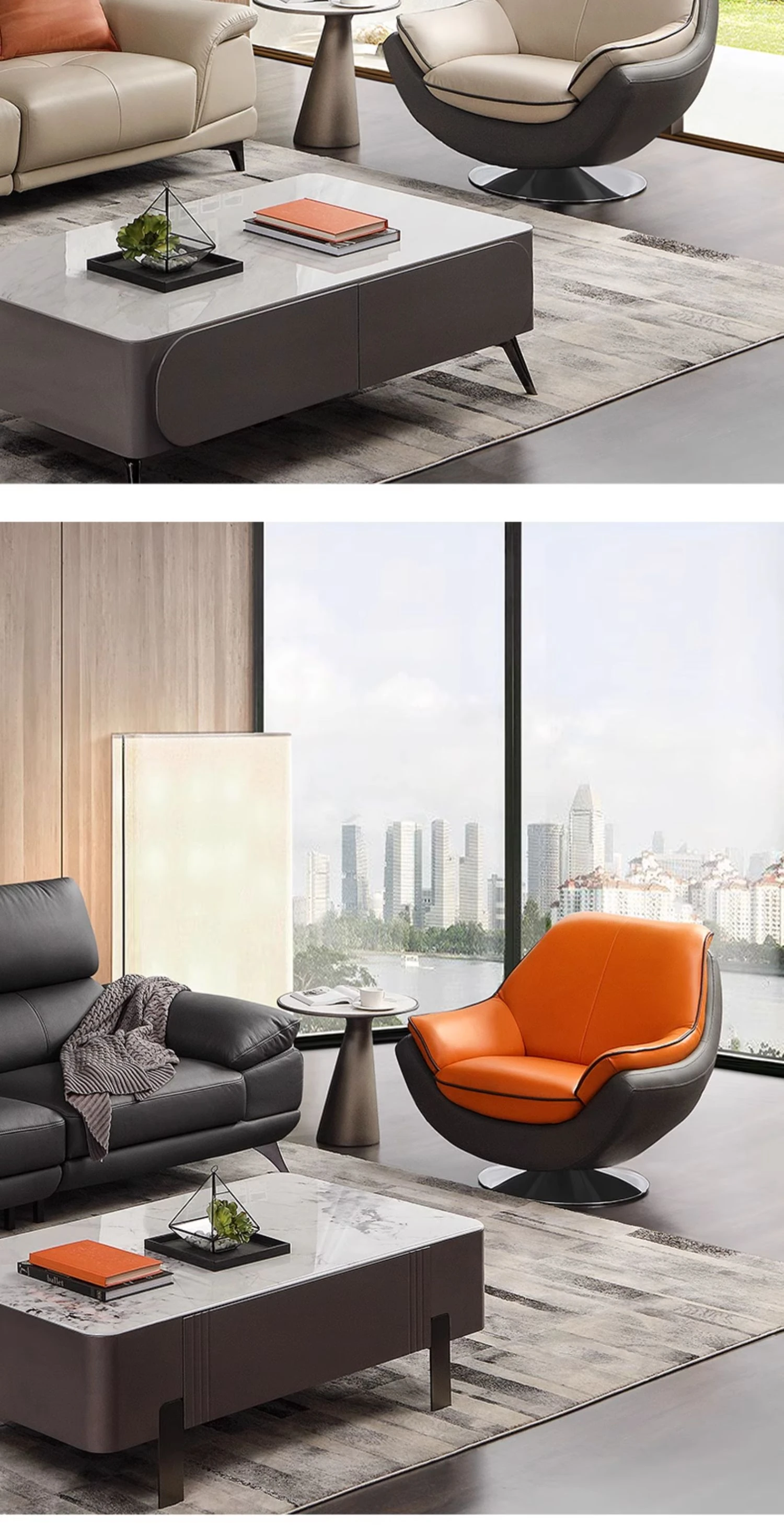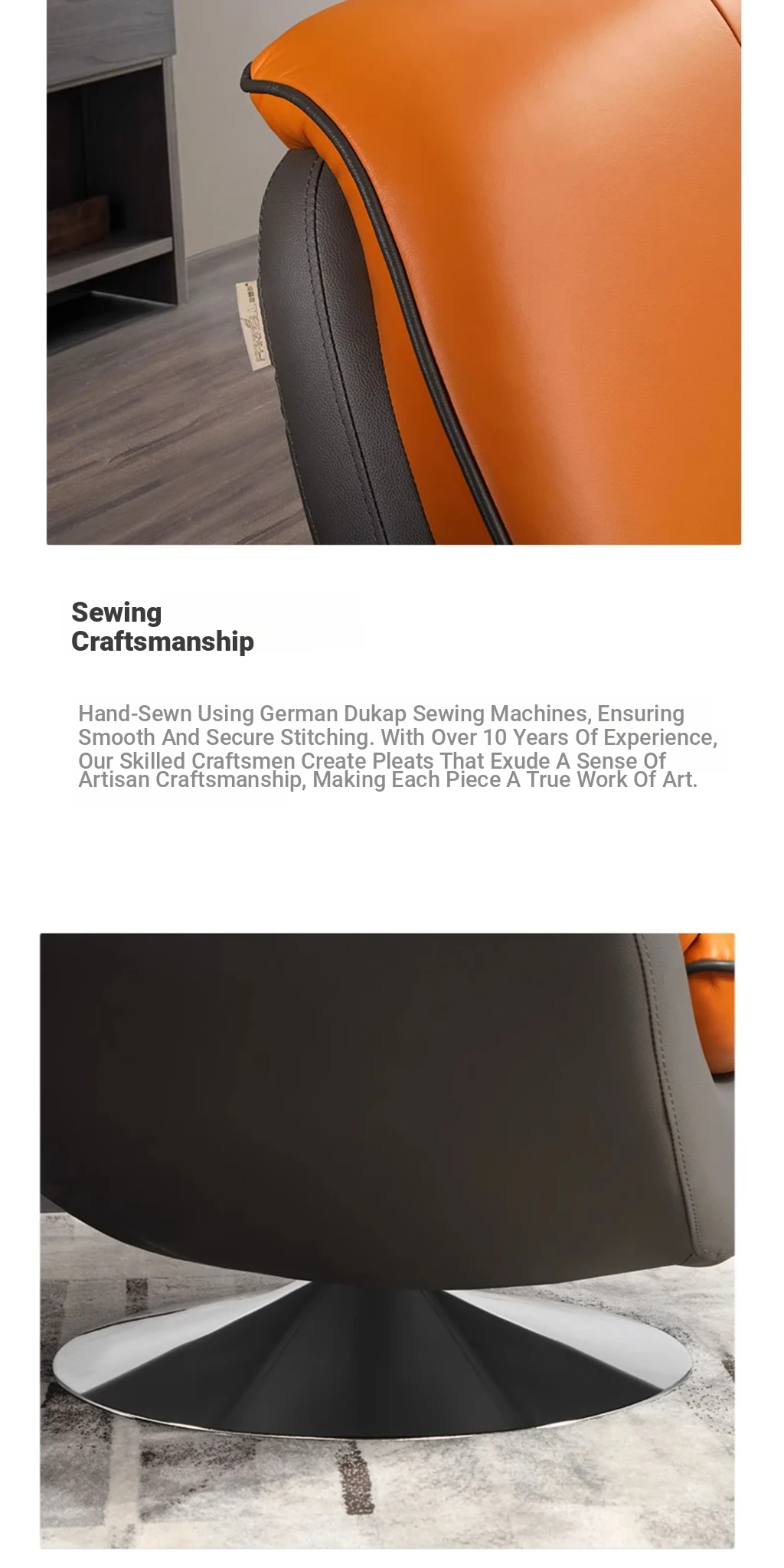 Farrell Luxury Modern Leather Single Sofa Chair with Swivel for Relaxation – Minimalist High-End Armchair for Your Living Room