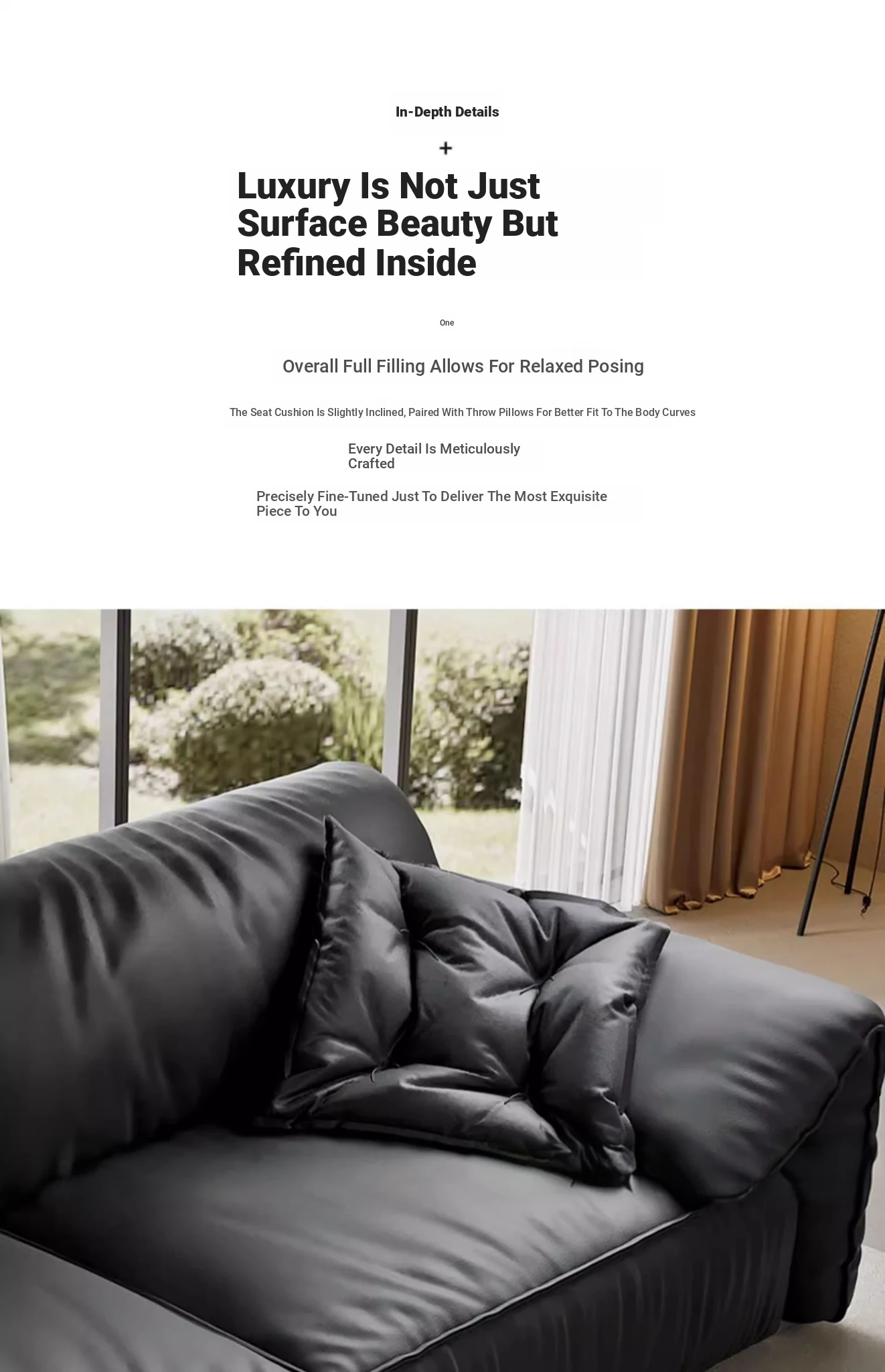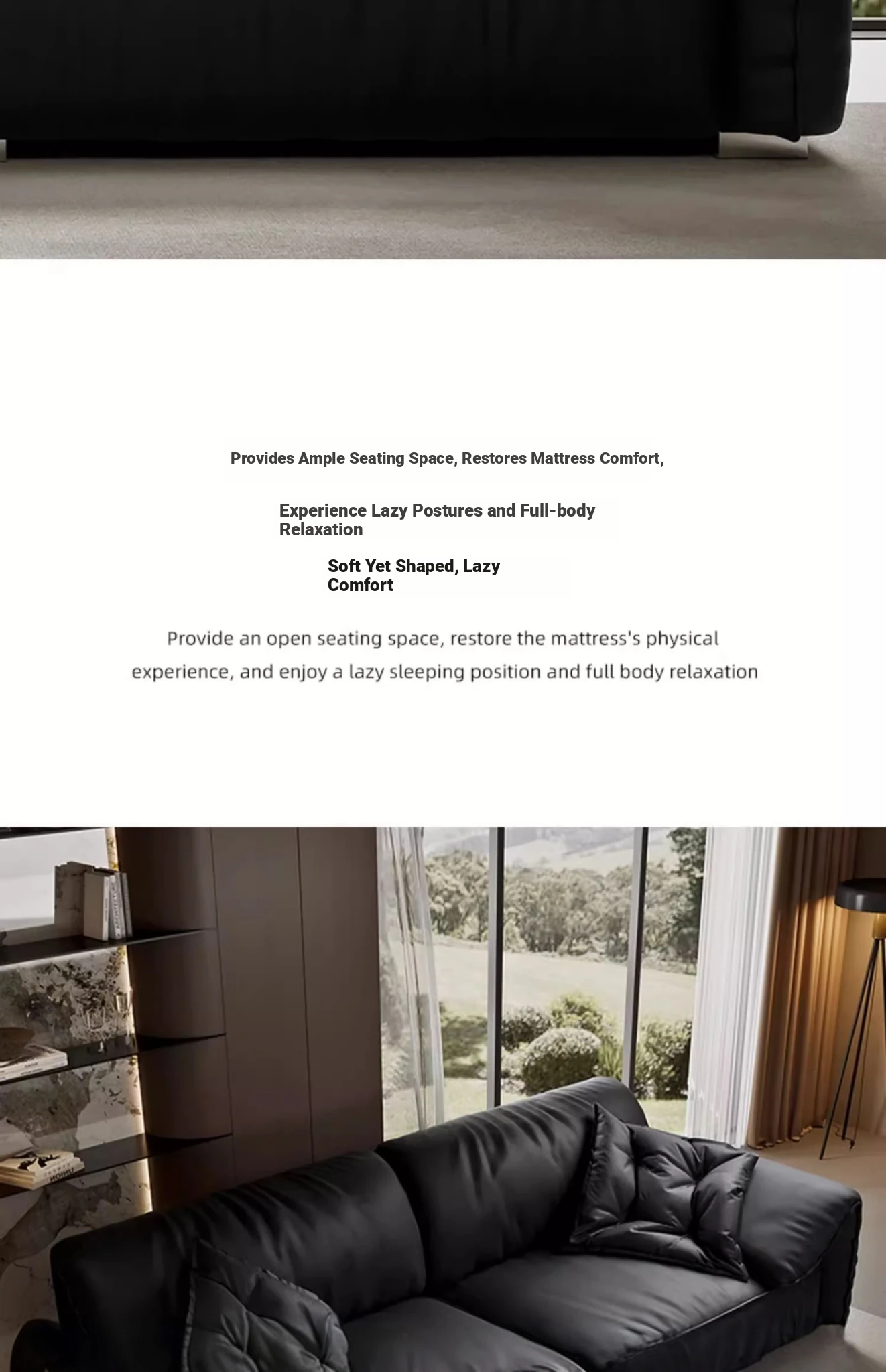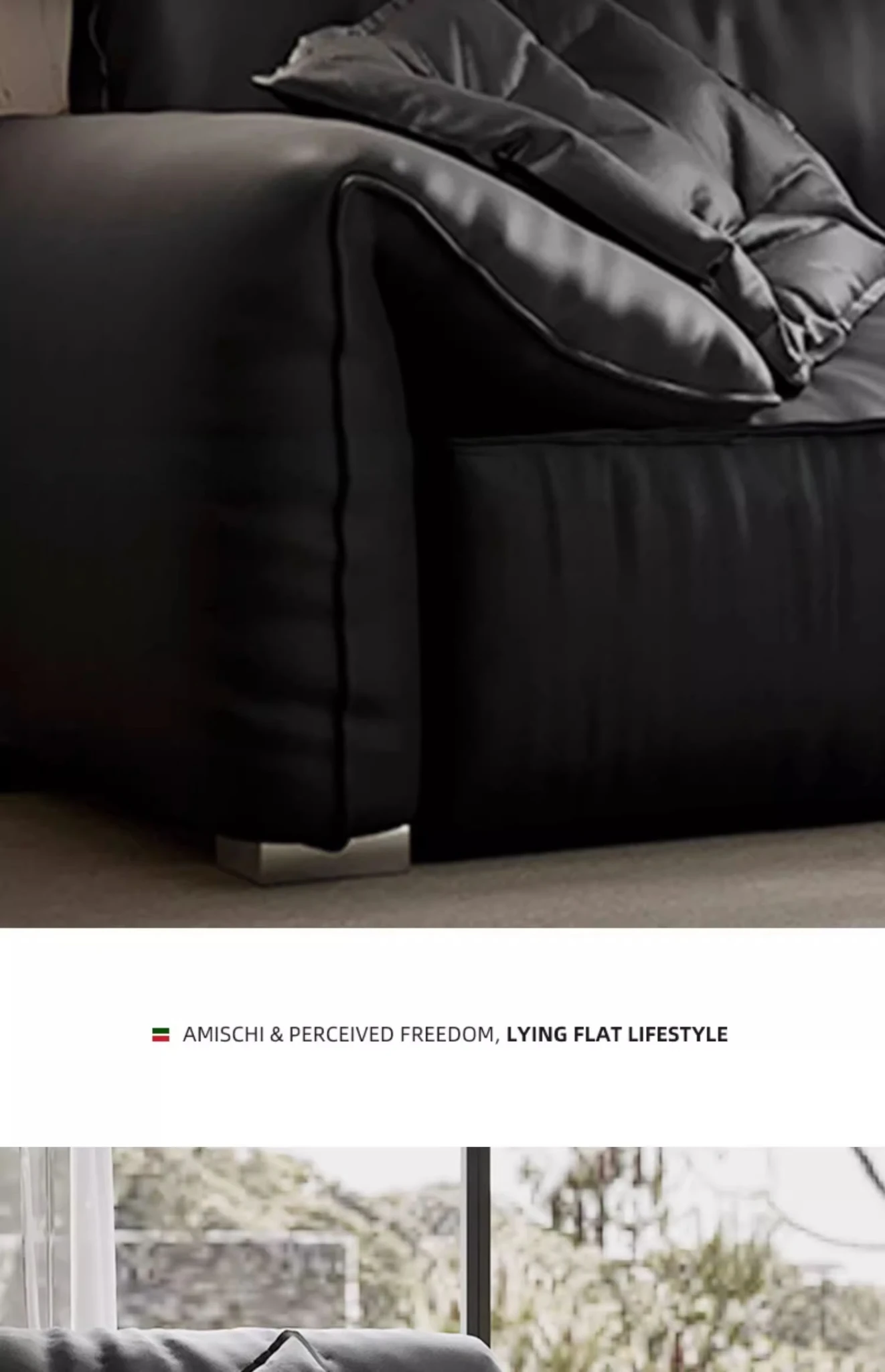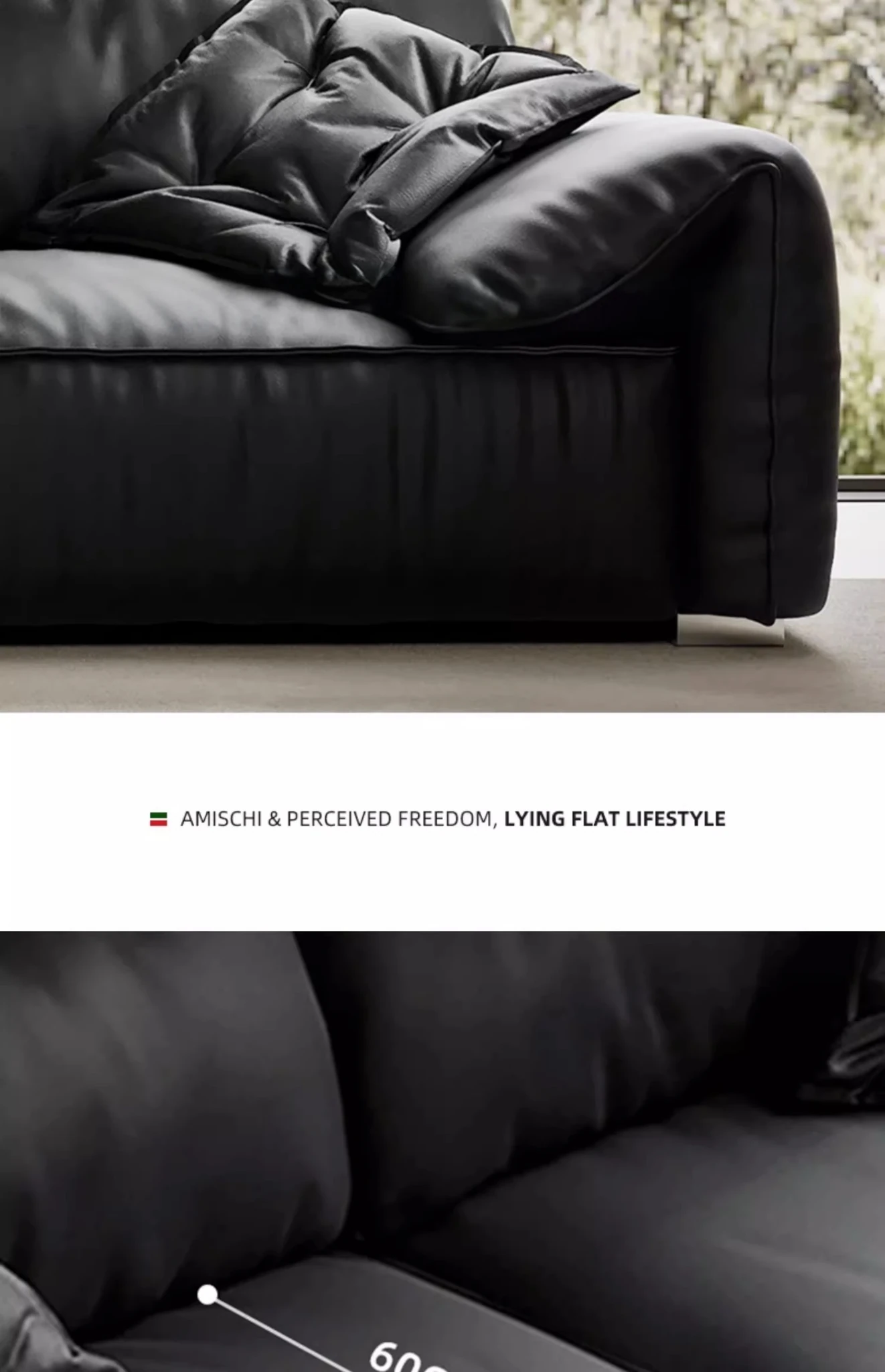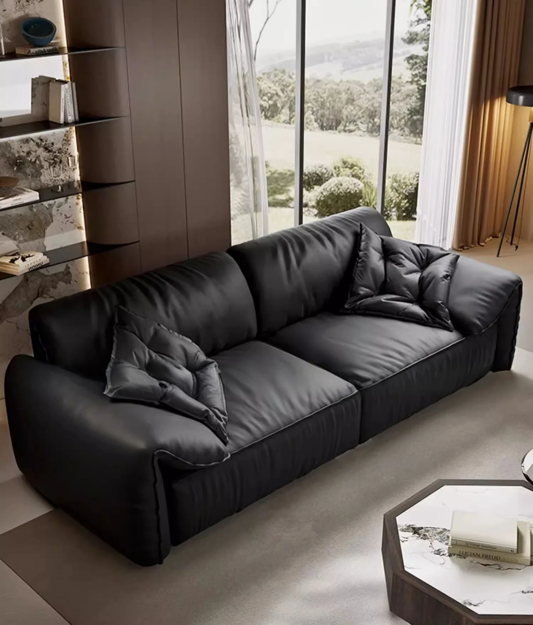 Italian Minimalist Genuine Leather Sofa for Spacious Villas - Black Down-Filled Elephant Ear Design, Perfect for Large Living Rooms