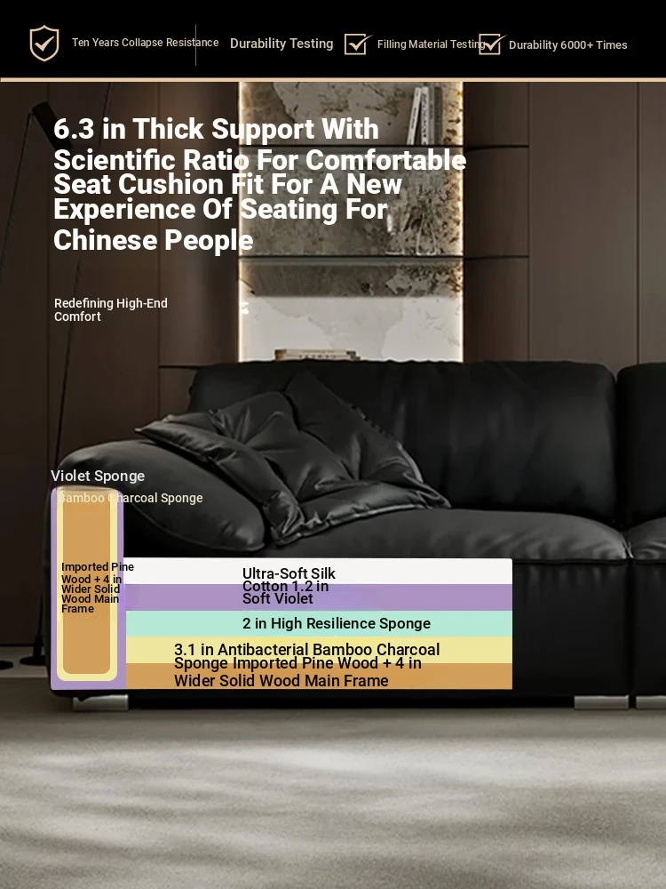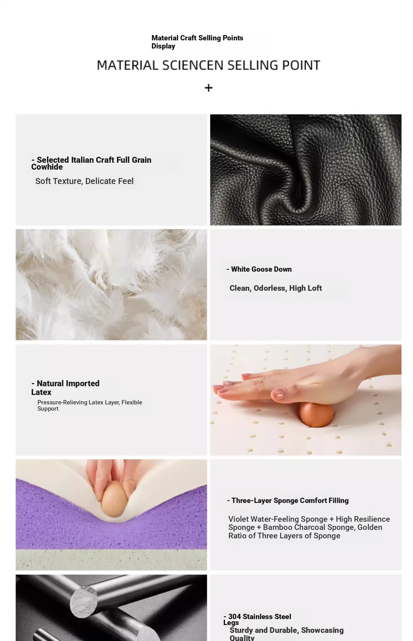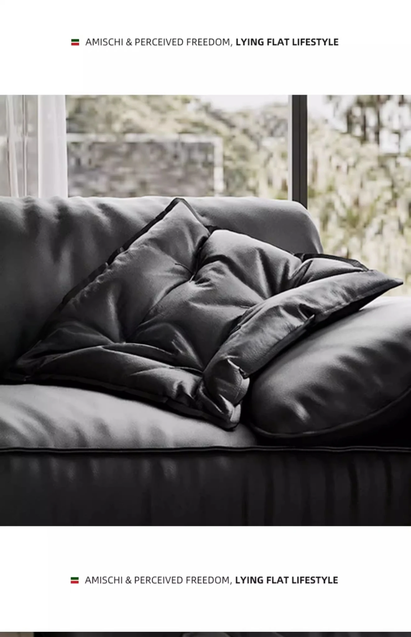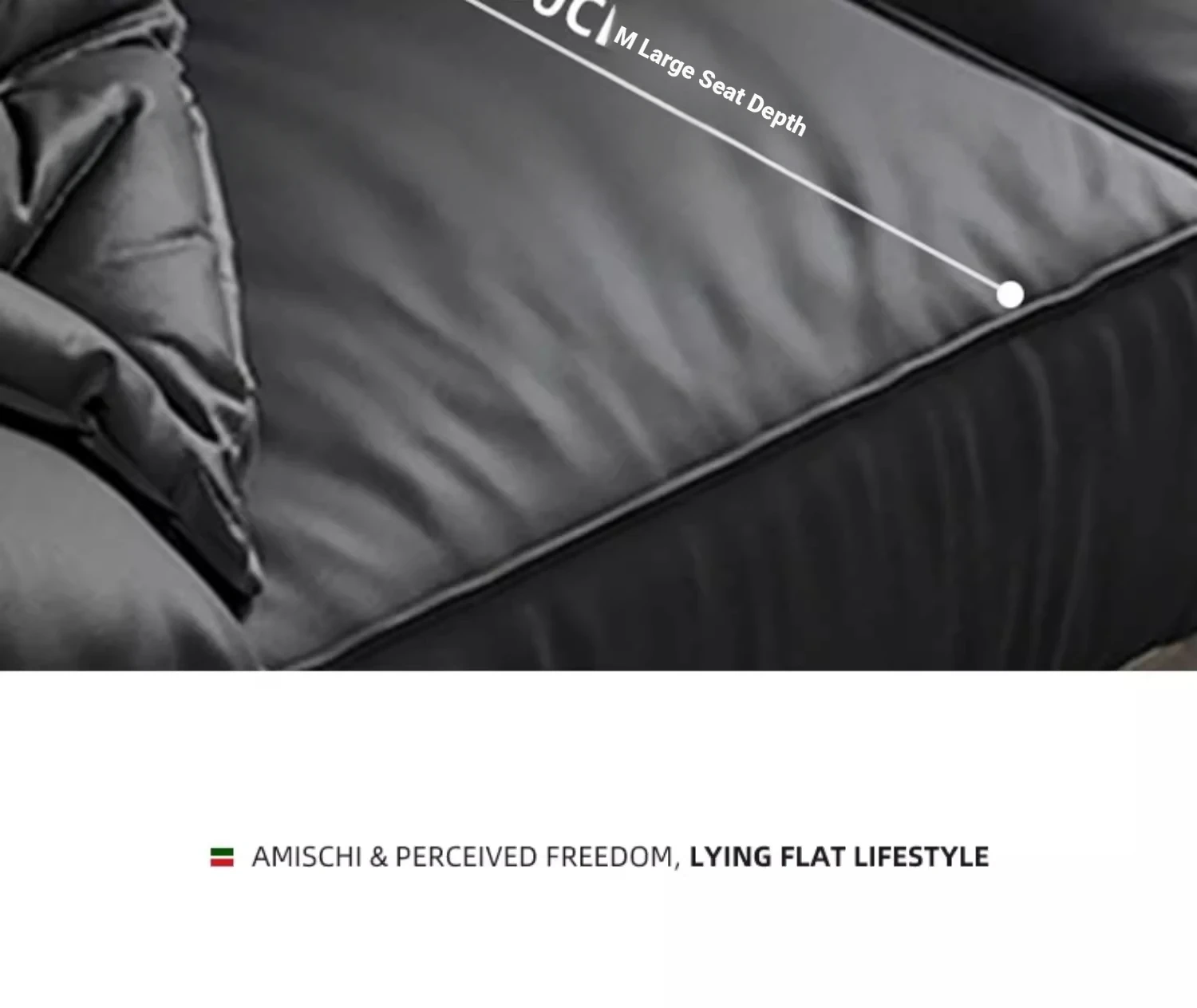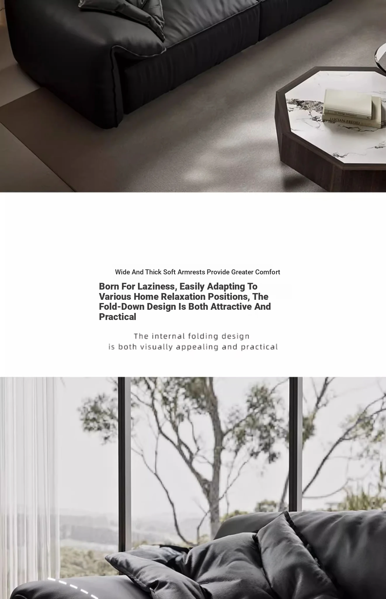 Italian Minimalist Genuine Leather Sofa for Spacious Villas - Black Down-Filled Elephant Ear Design, Perfect for Large Living Rooms