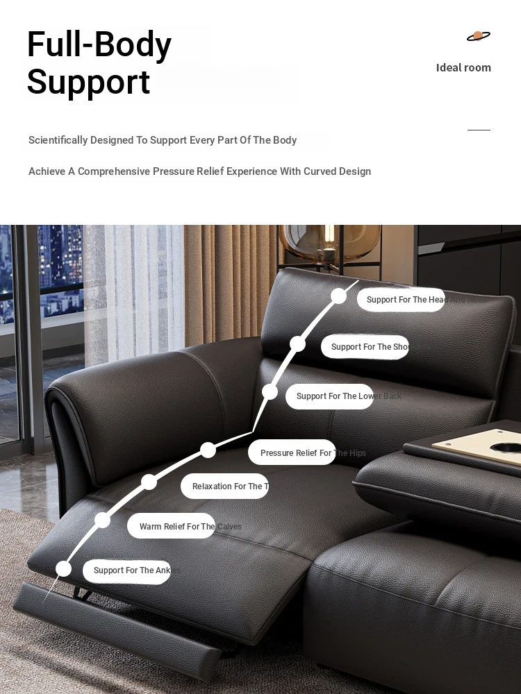 144.88in four-person (double electric + middle flip)(360 leather) with mobile phone holder