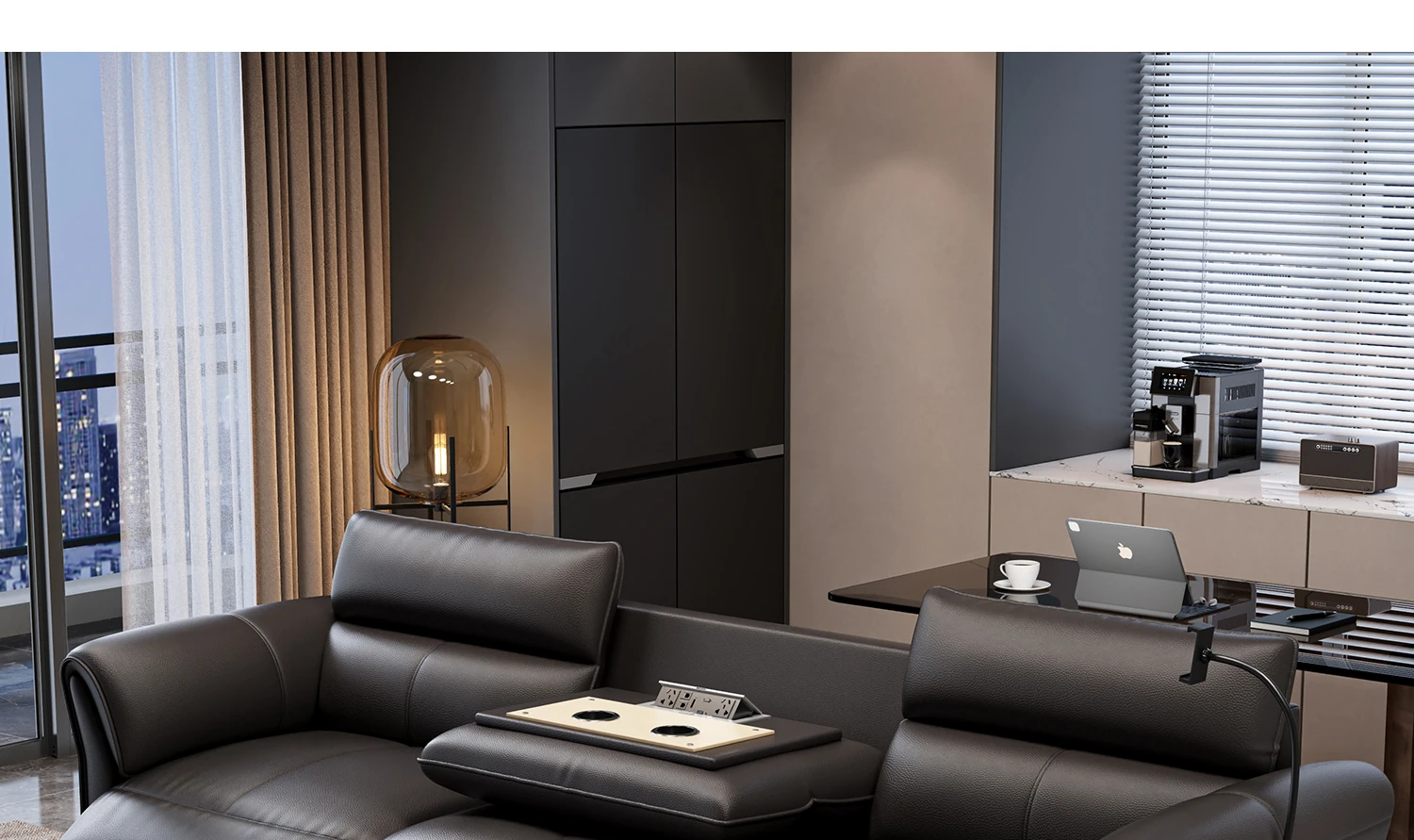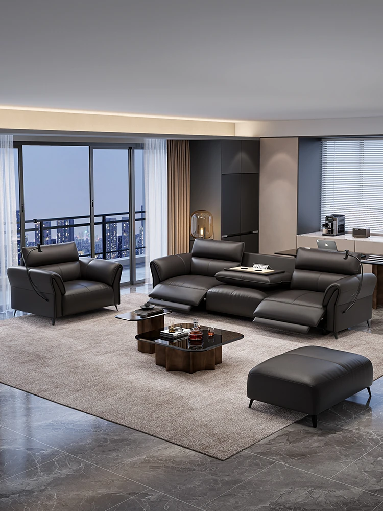 124.41in four-person (double electric + middle flip cover) (contact surface leather) with mobile phone holder