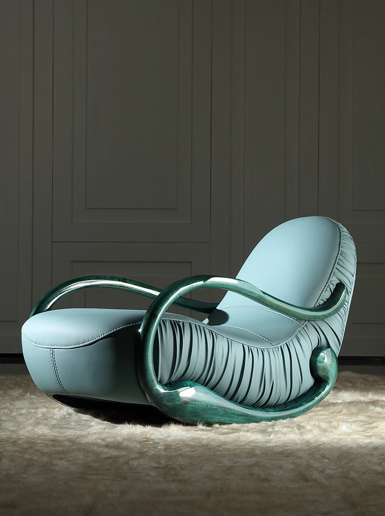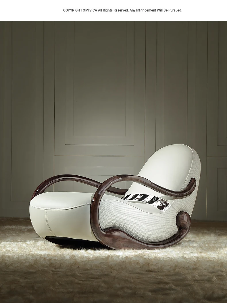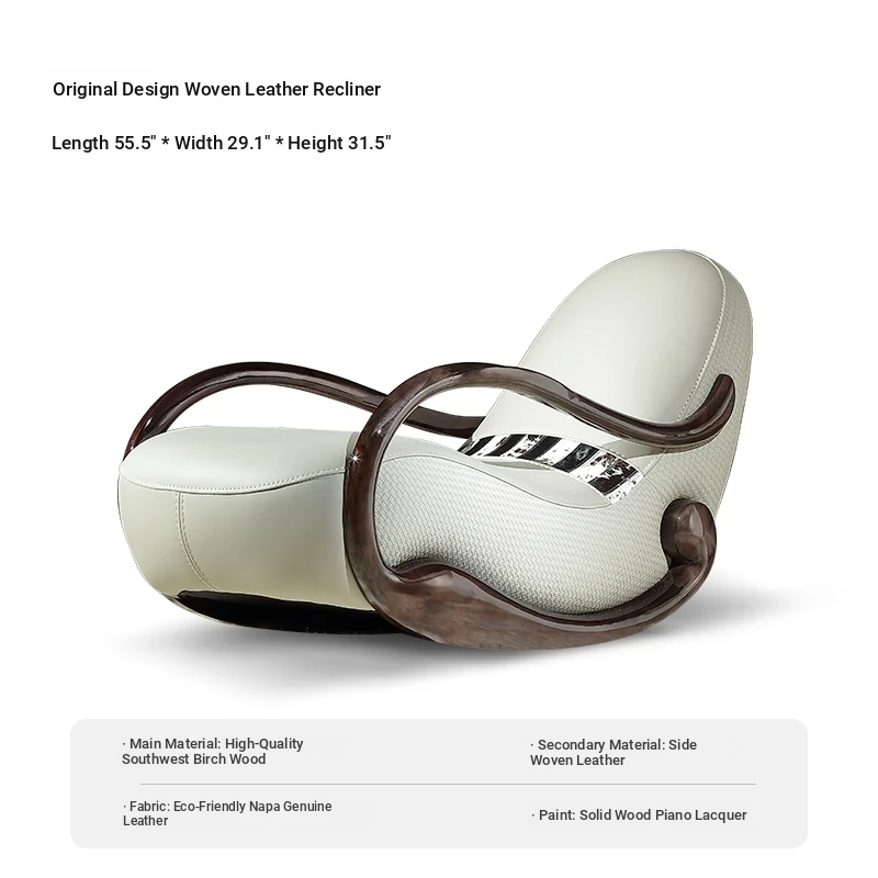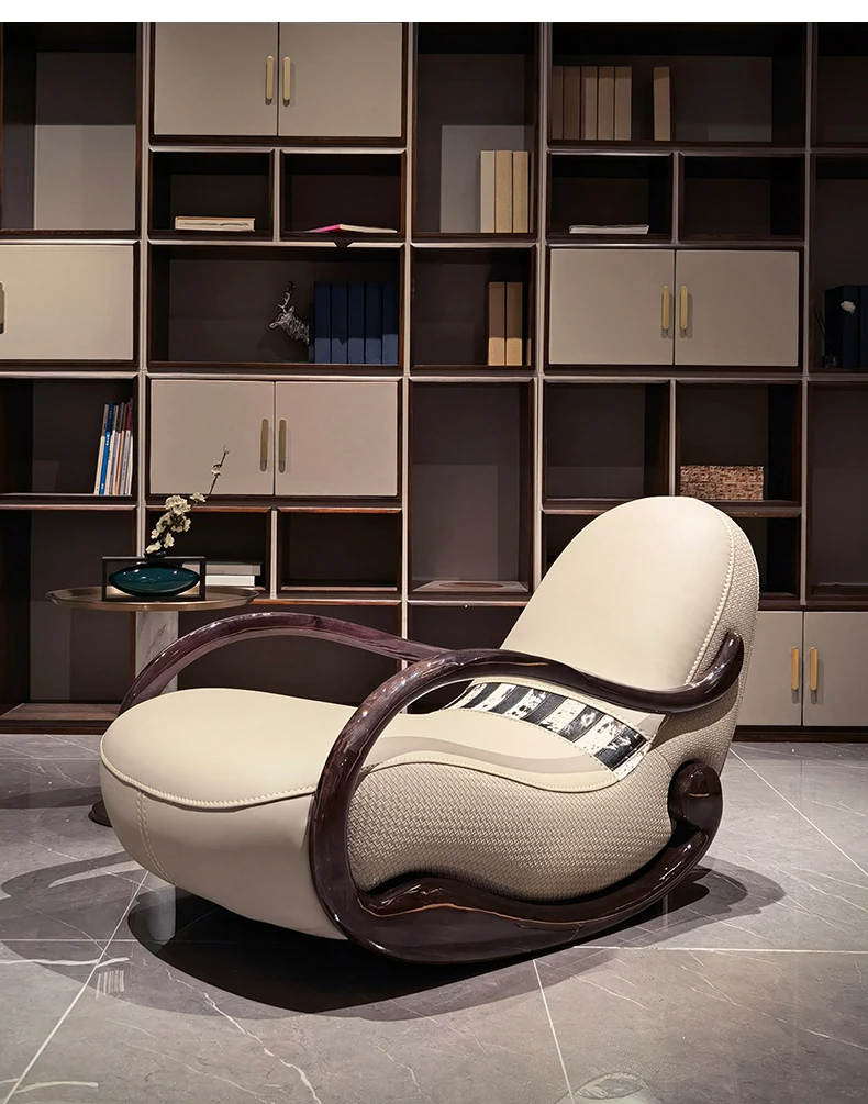 Italian Minimalist Luxury Solid Wood Rocking Chair - Modern Genuine Leather Designer Lounge Sofa for 2025, Perfect Blend of Comfort and Style