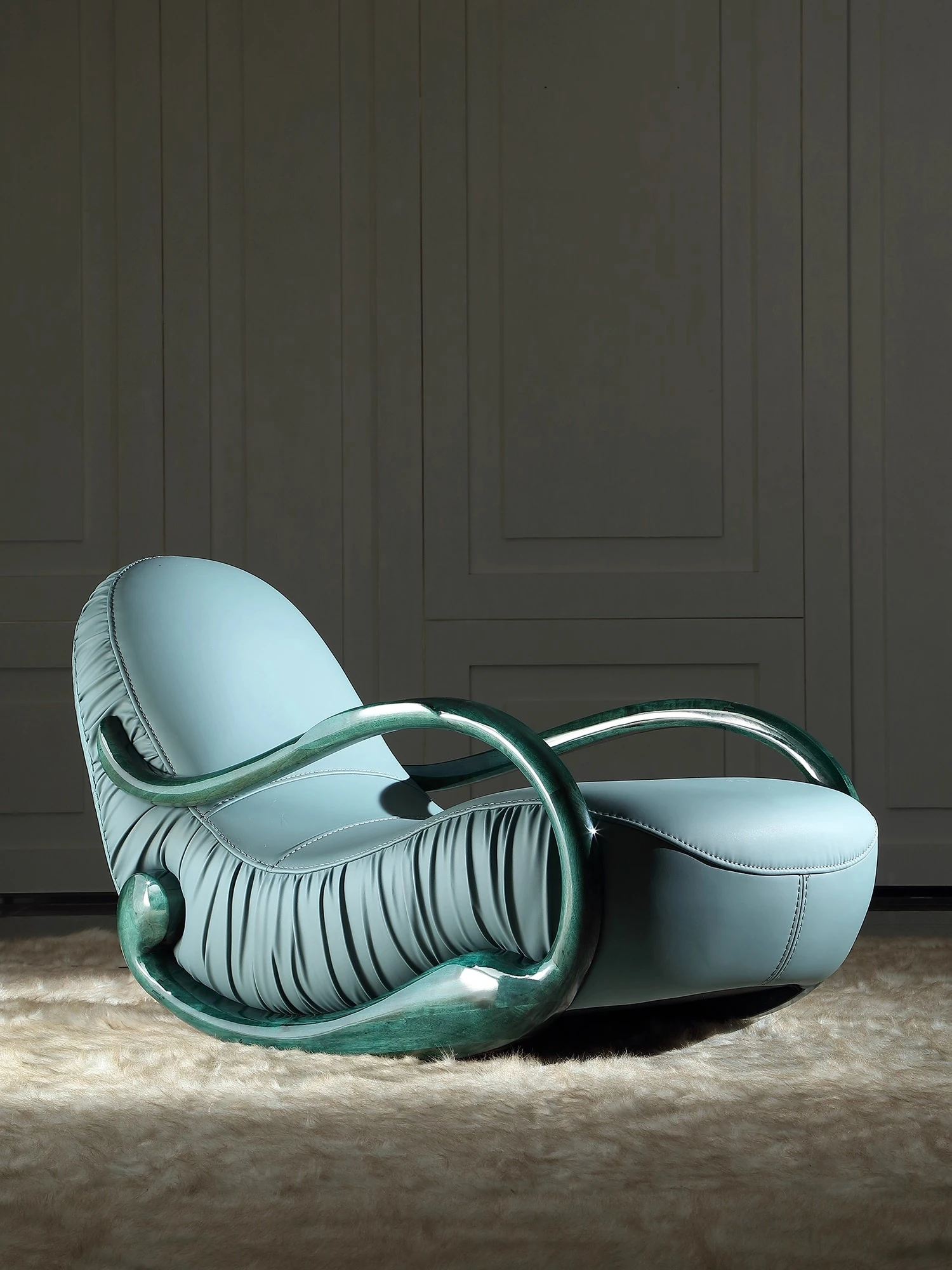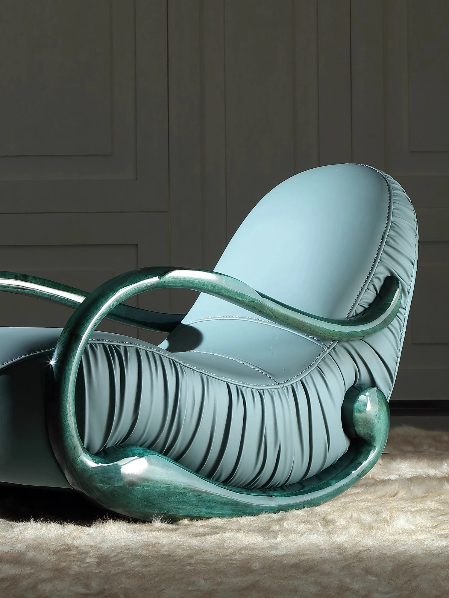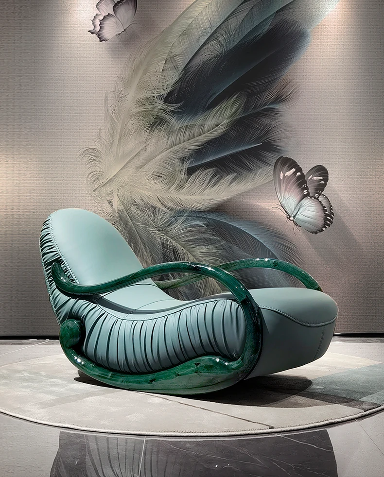 Italian Minimalist Luxury Solid Wood Rocking Chair - Modern Genuine Leather Designer Lounge Sofa for 2025, Perfect Blend of Comfort and Style