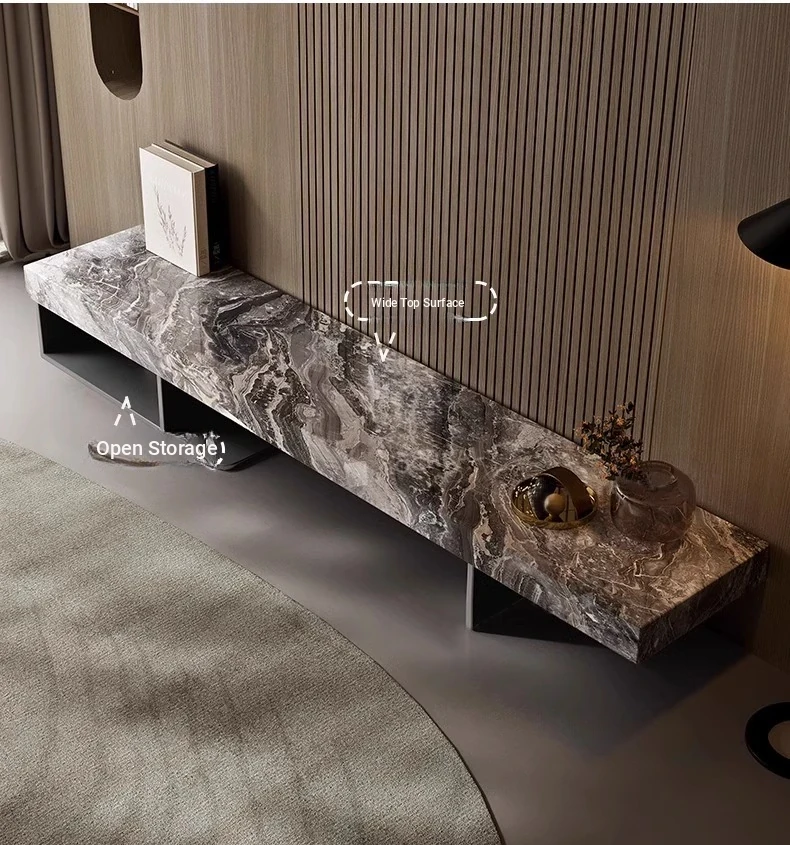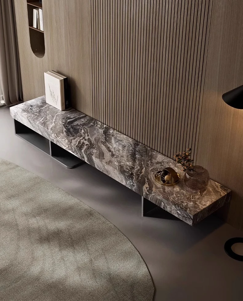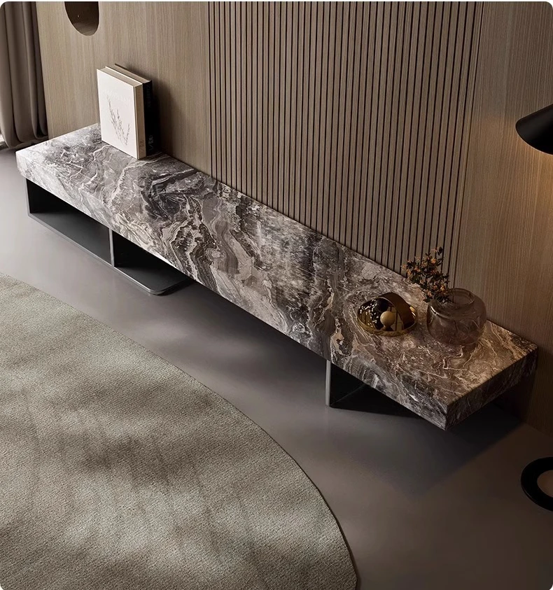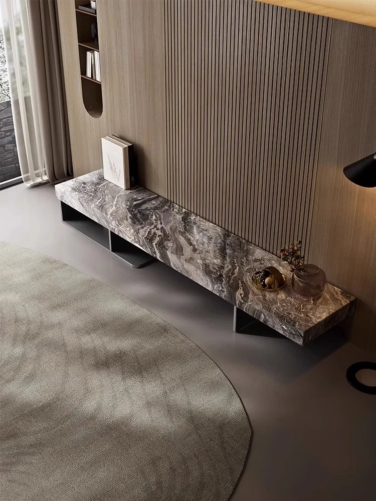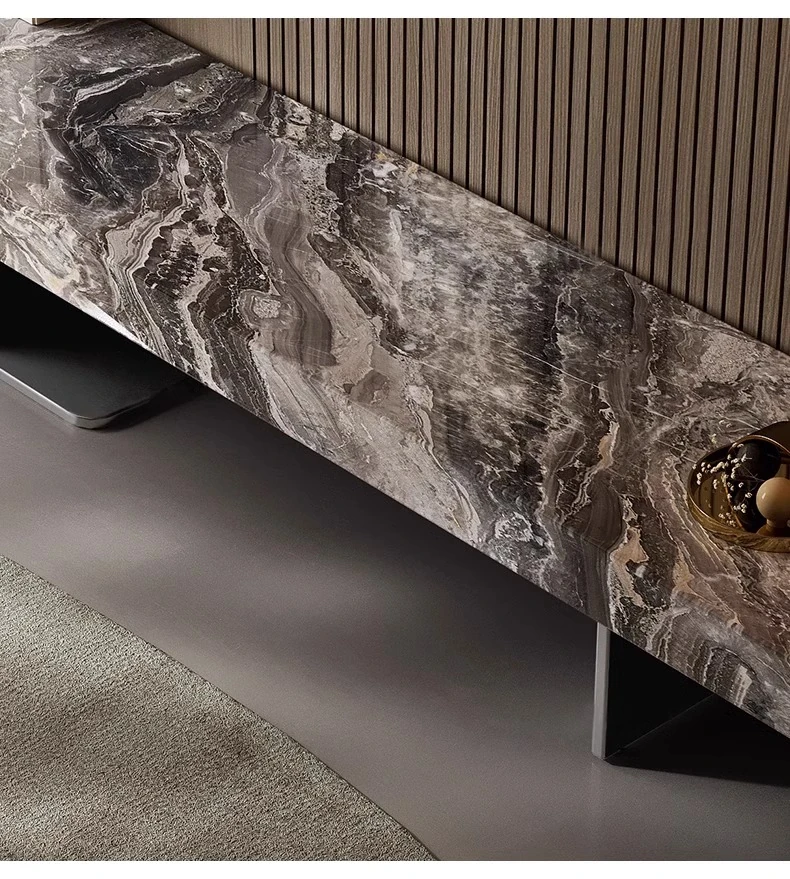 Italian Minimalist Rock Plate TV Stand - Modern Luxury Villa Living Room Furniture in Elegant Venice Brown - Perfect for Your Home