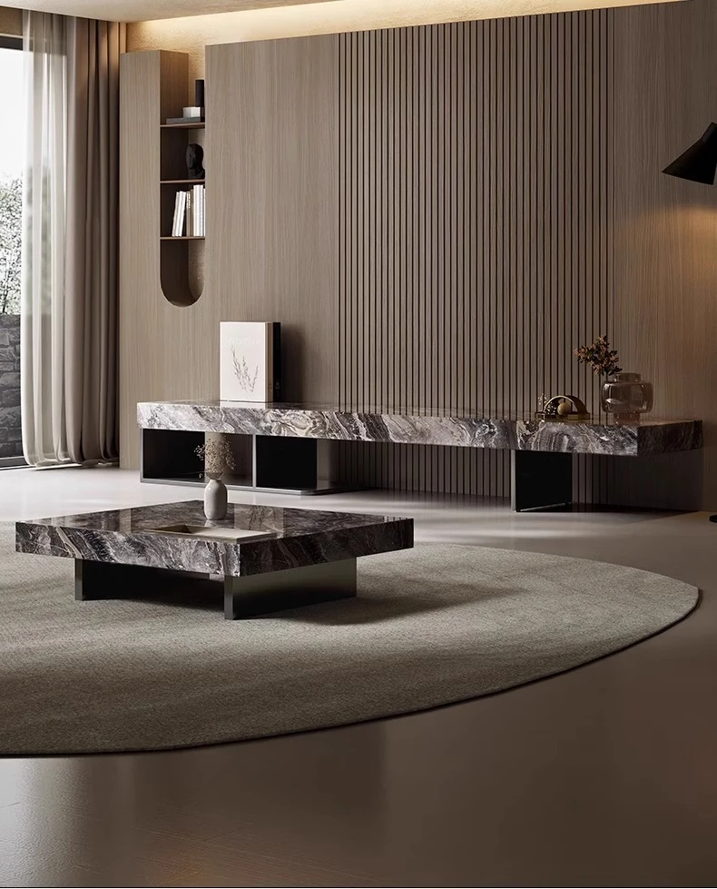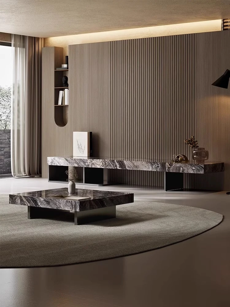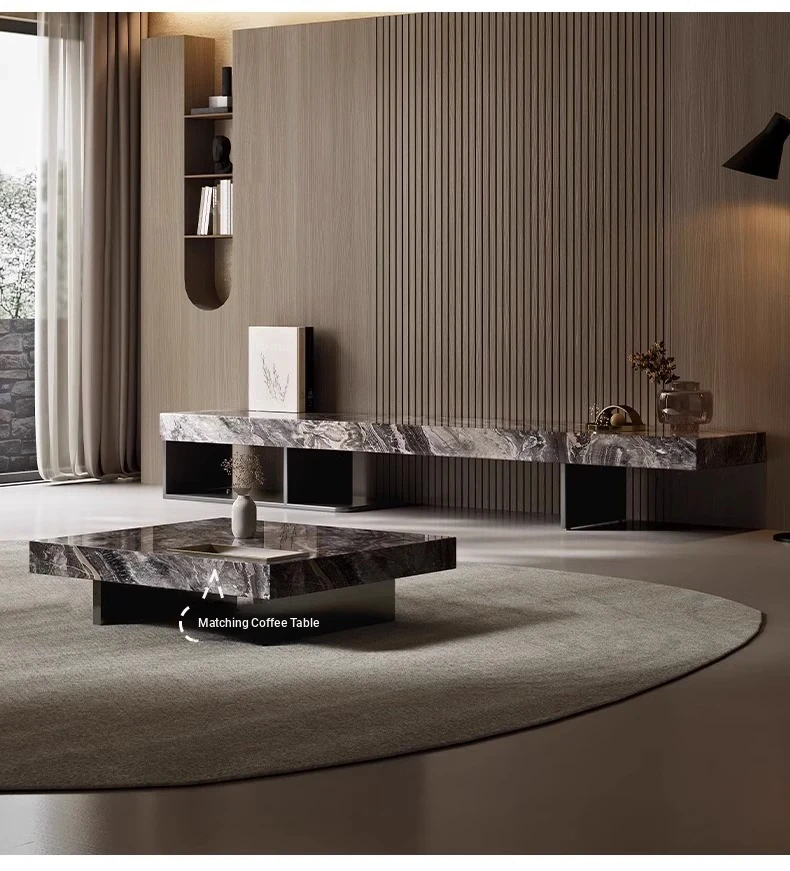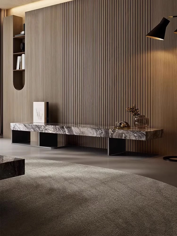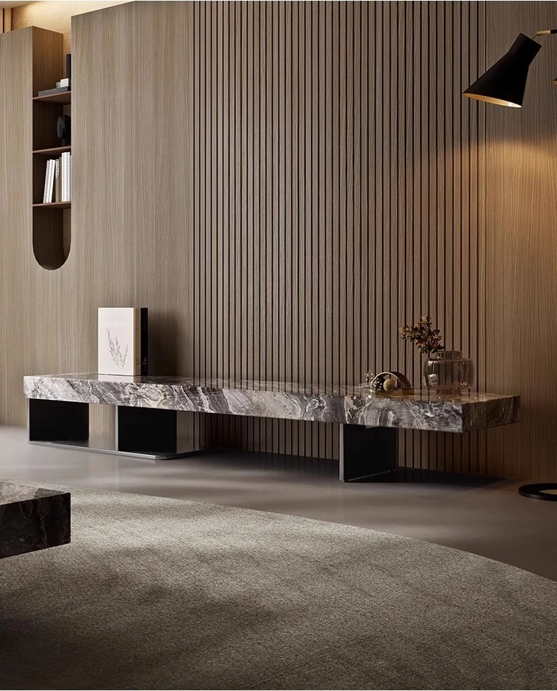 Italian Minimalist Rock Plate TV Stand - Modern Luxury Villa Living Room Furniture in Elegant Venice Brown - Perfect for Your Home