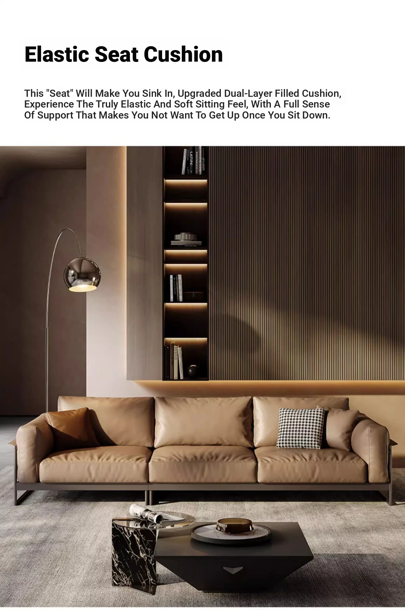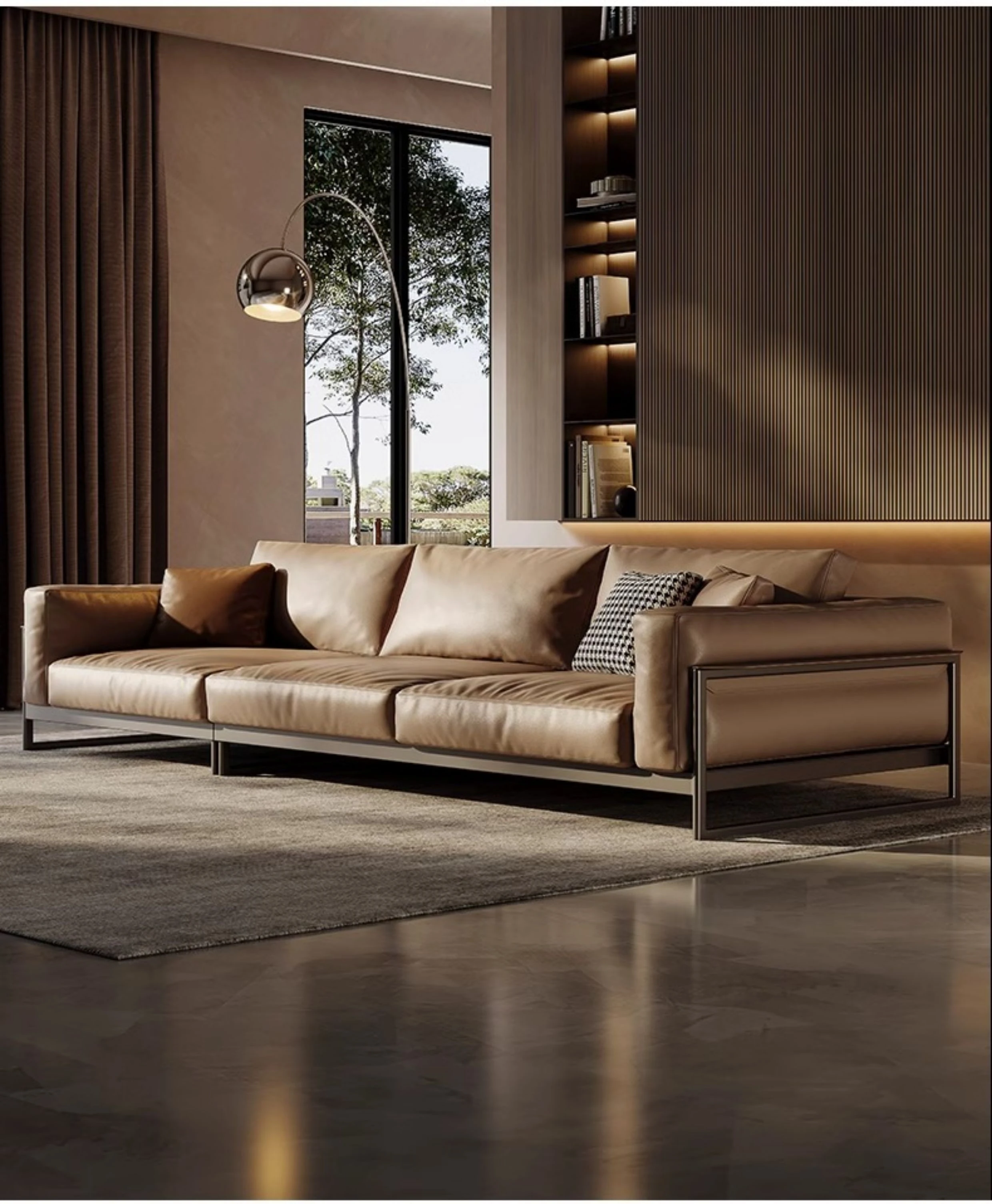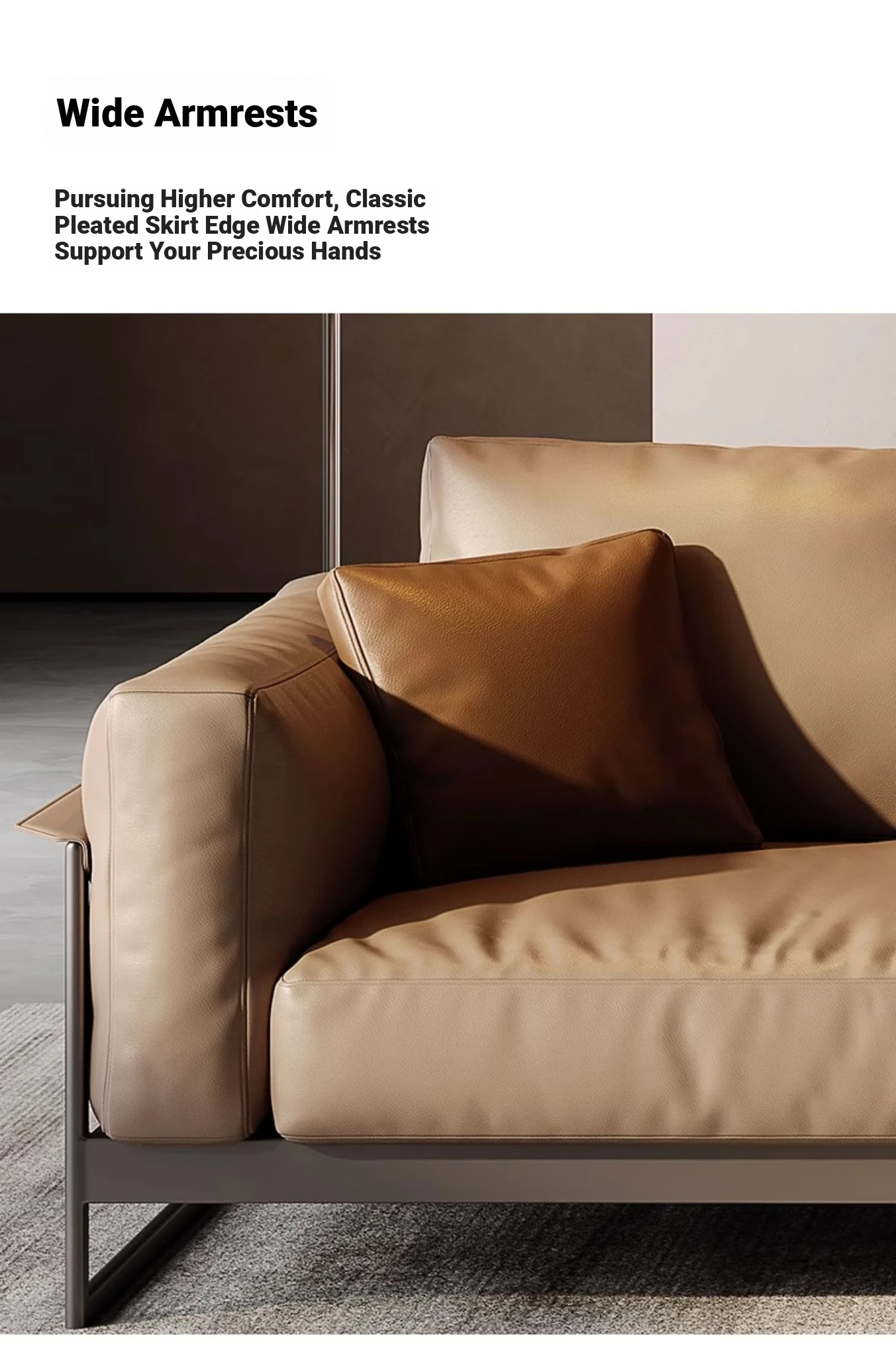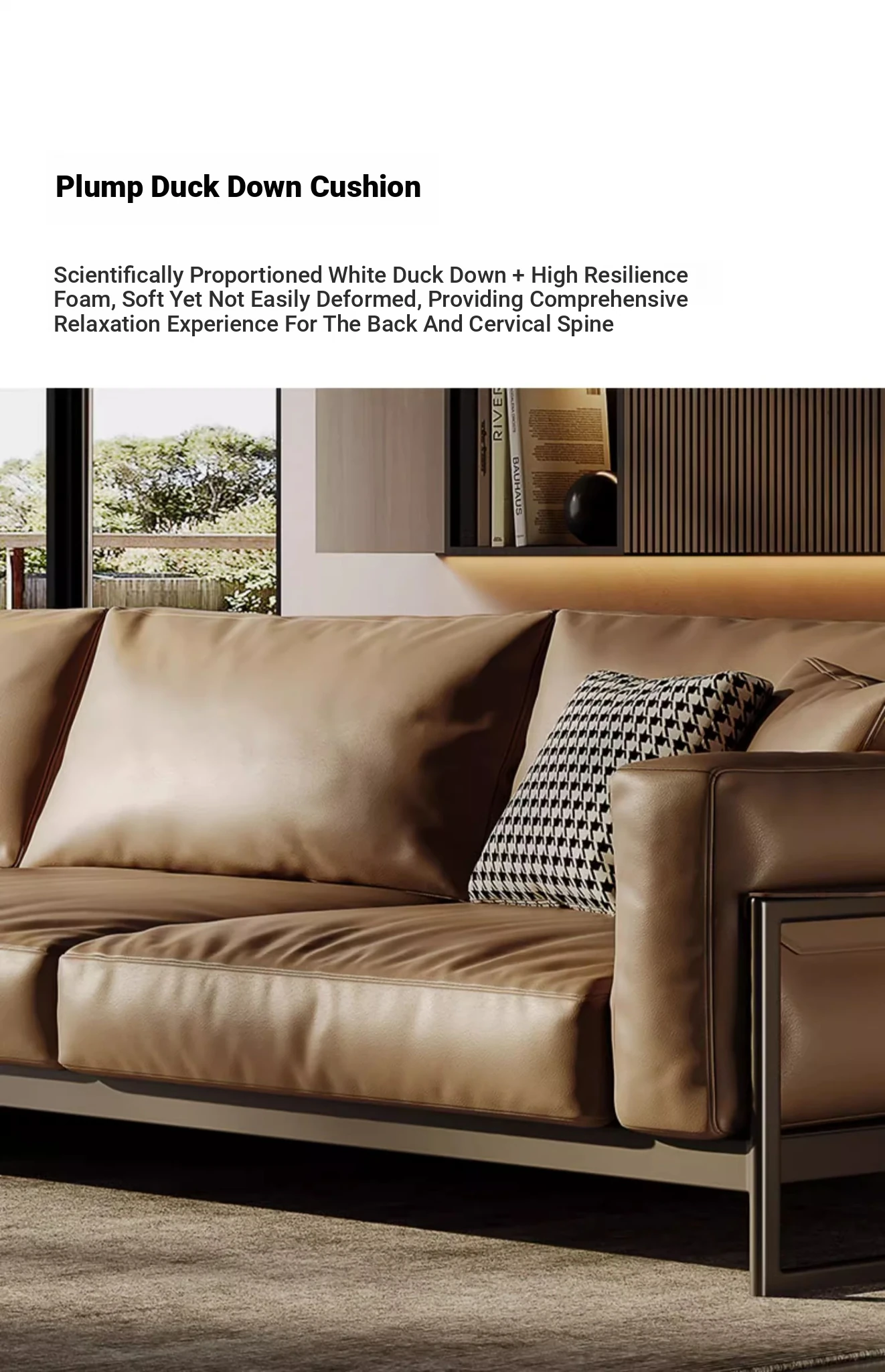Italian Minimalist Steel Frame Sofa - Modern Retro Genuine Leather Sofa Set with Top-Grain Cowhide for Living Room - Stylish and Comfortable Seating Solution