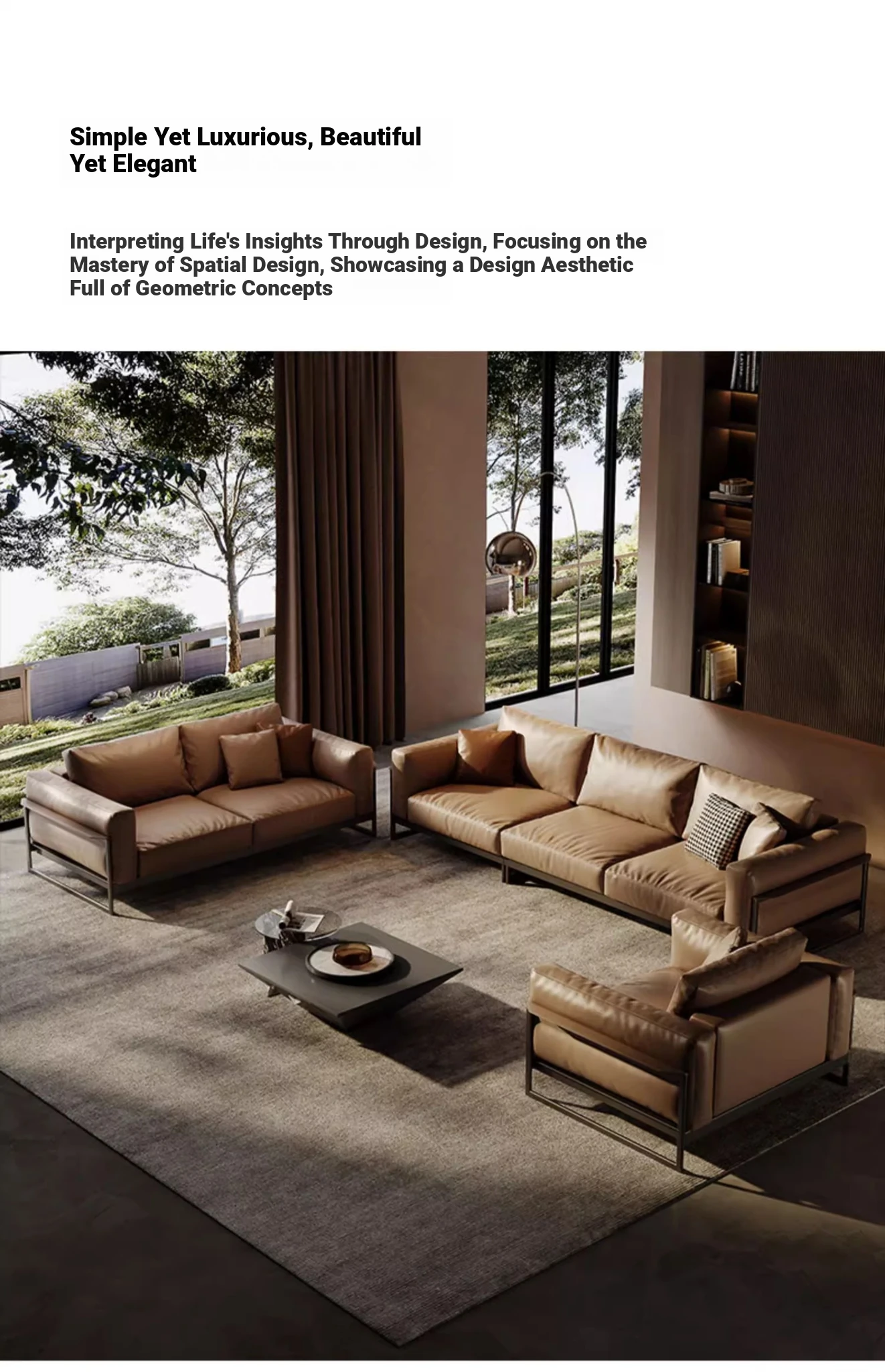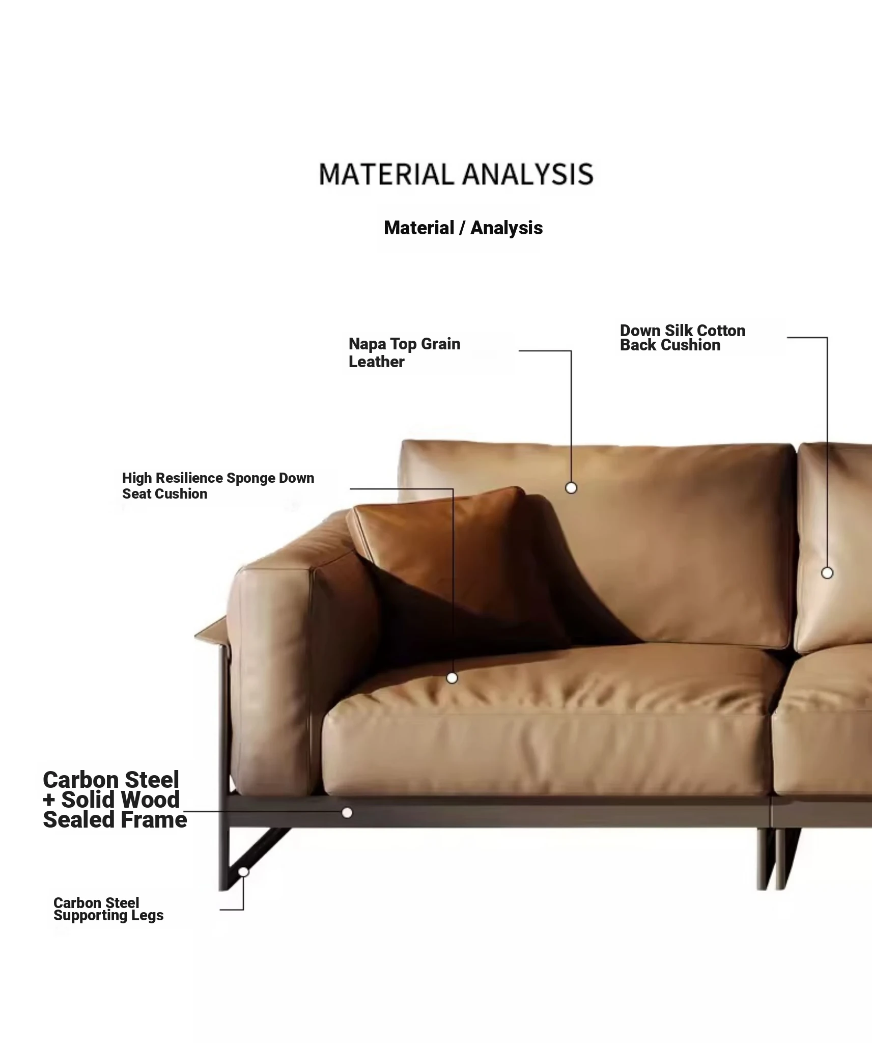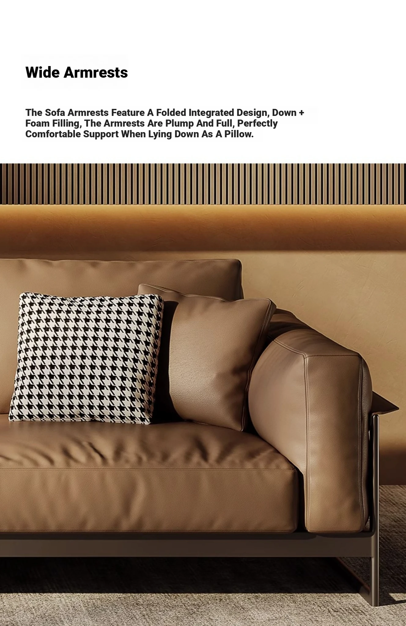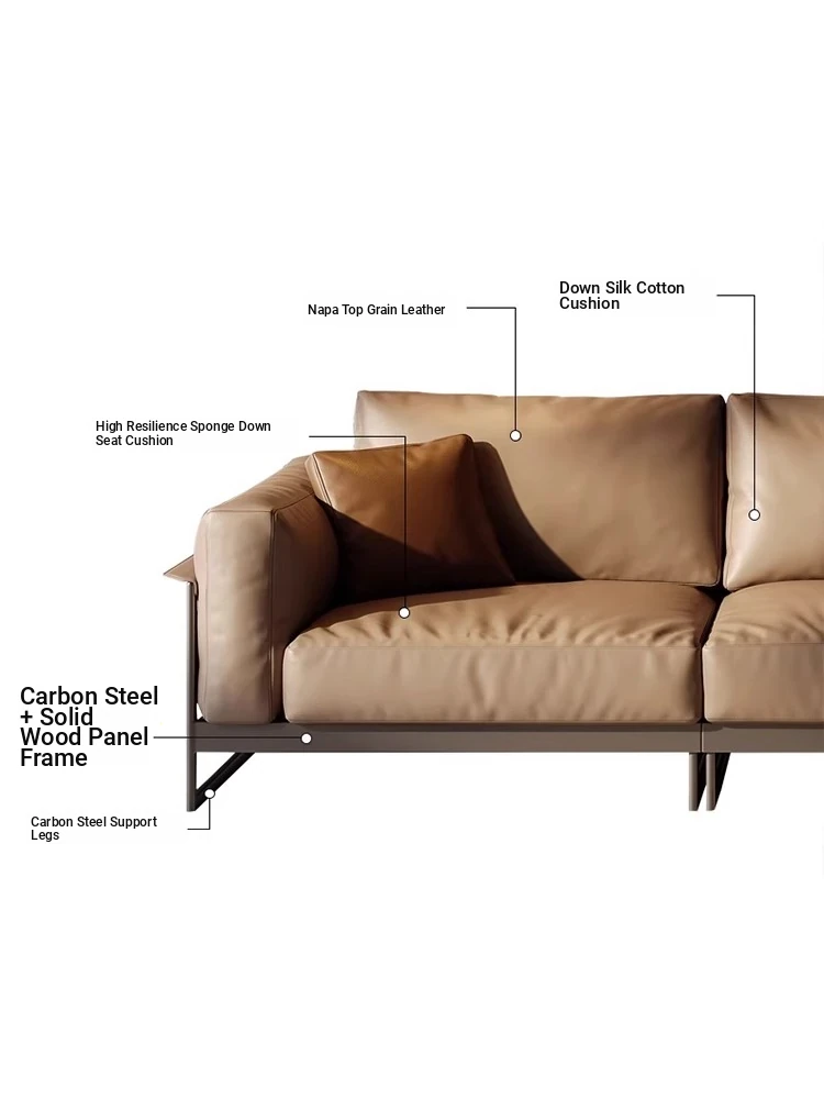 Italian Minimalist Steel Frame Sofa - Modern Retro Genuine Leather Sofa Set with Top-Grain Cowhide for Living Room - Stylish and Comfortable Seating Solution