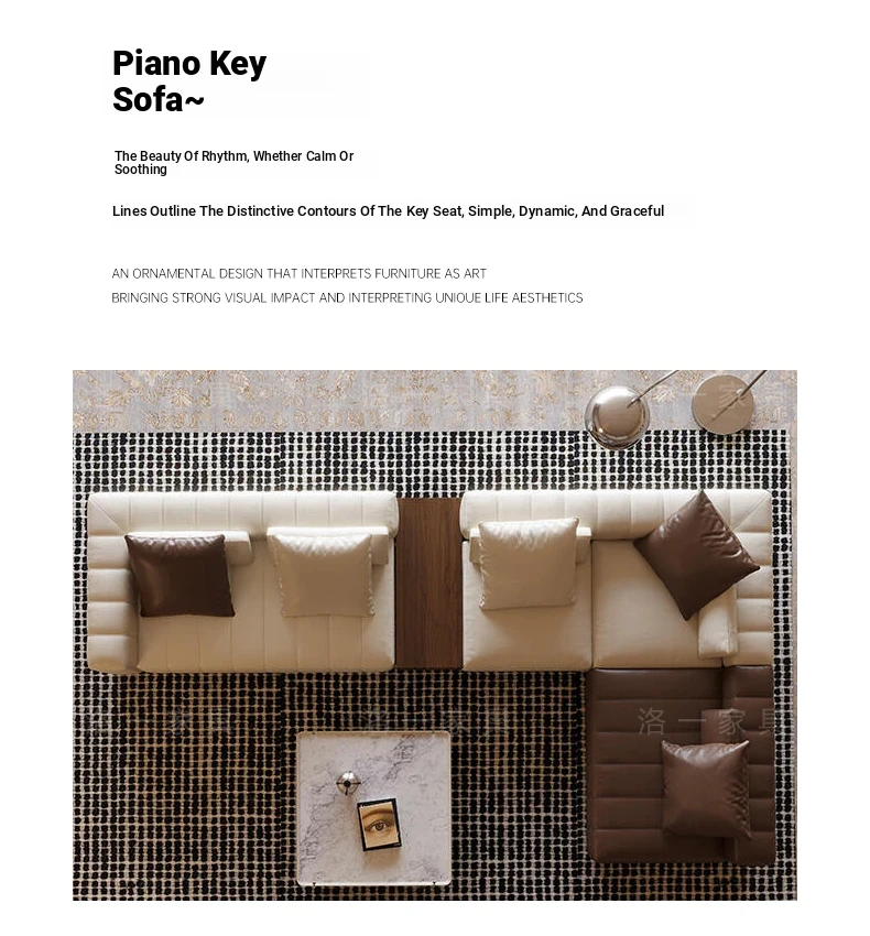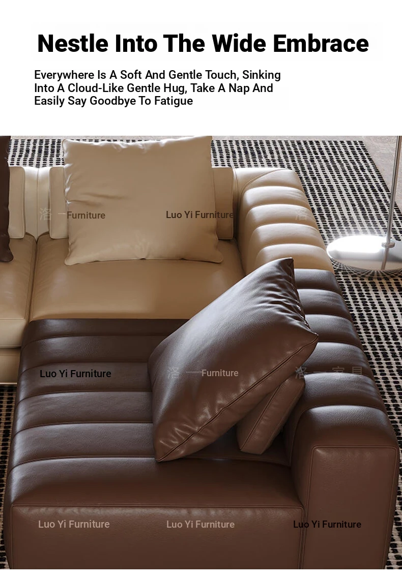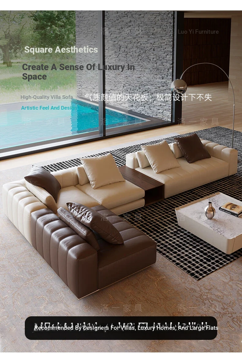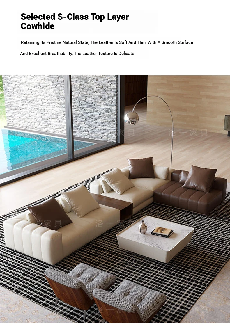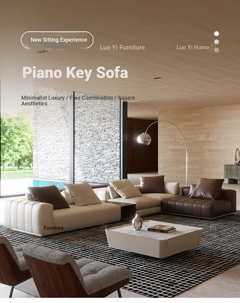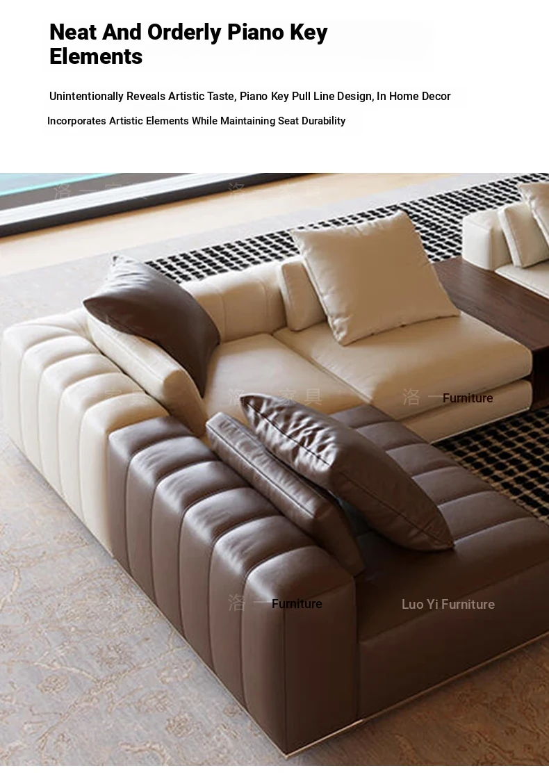 Italian Minimalist Top-Grain Leather Piano Key Sofa - Modern Luxury Design for Spacious Villas and Large Living Rooms - Premium Quality Genuine Leather Couch