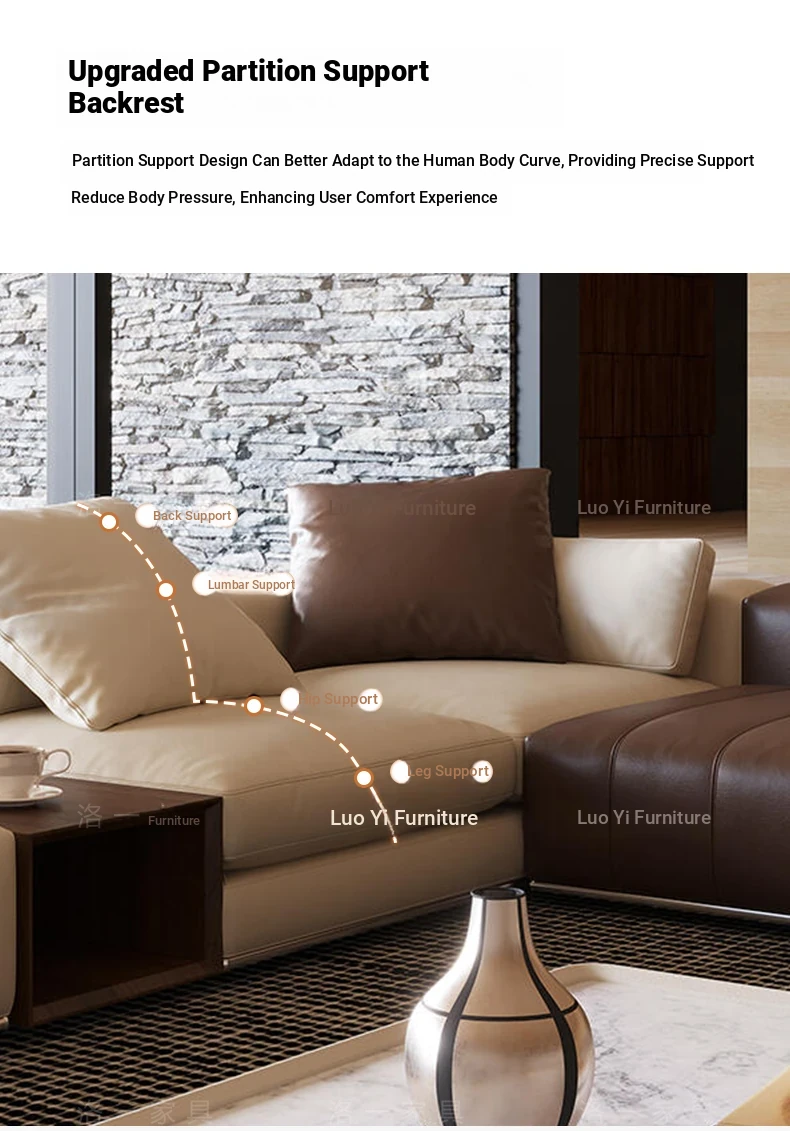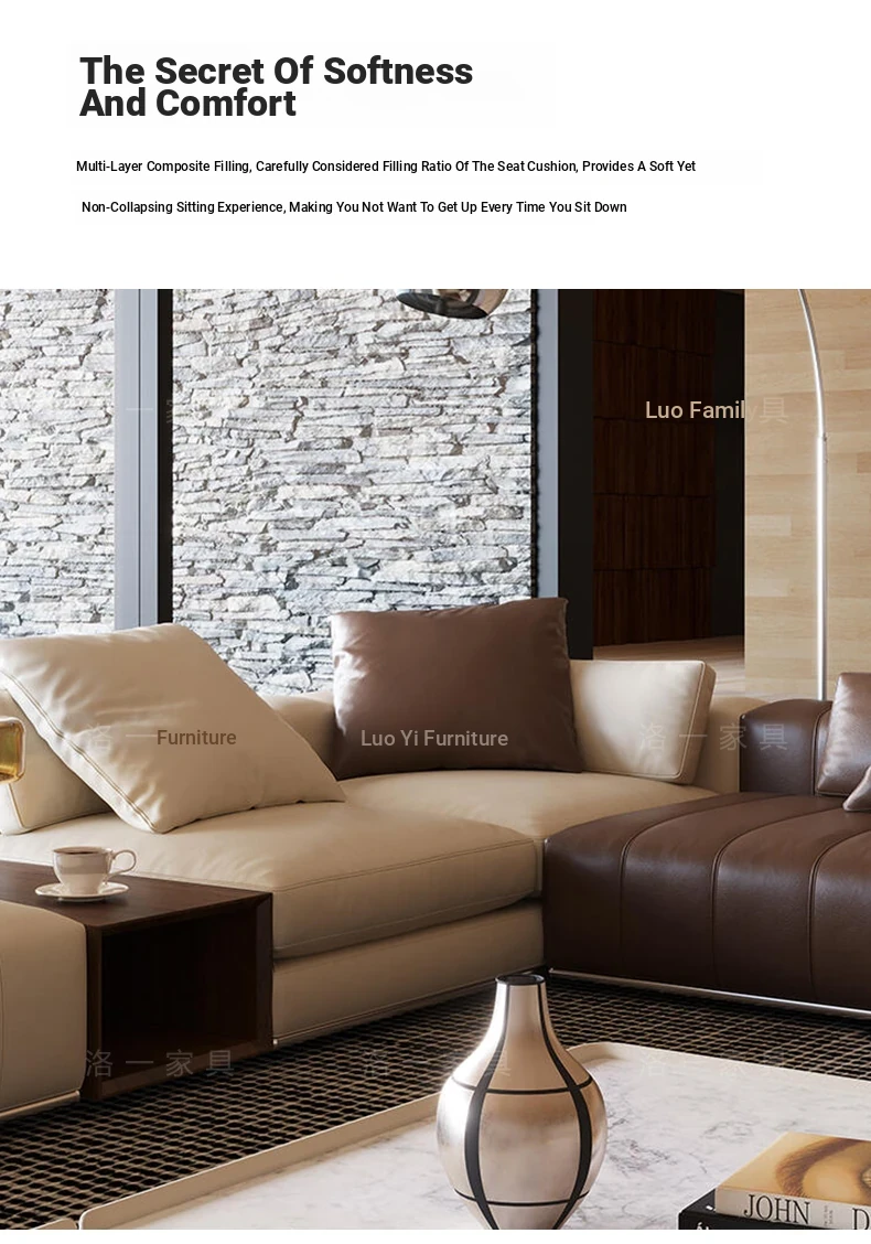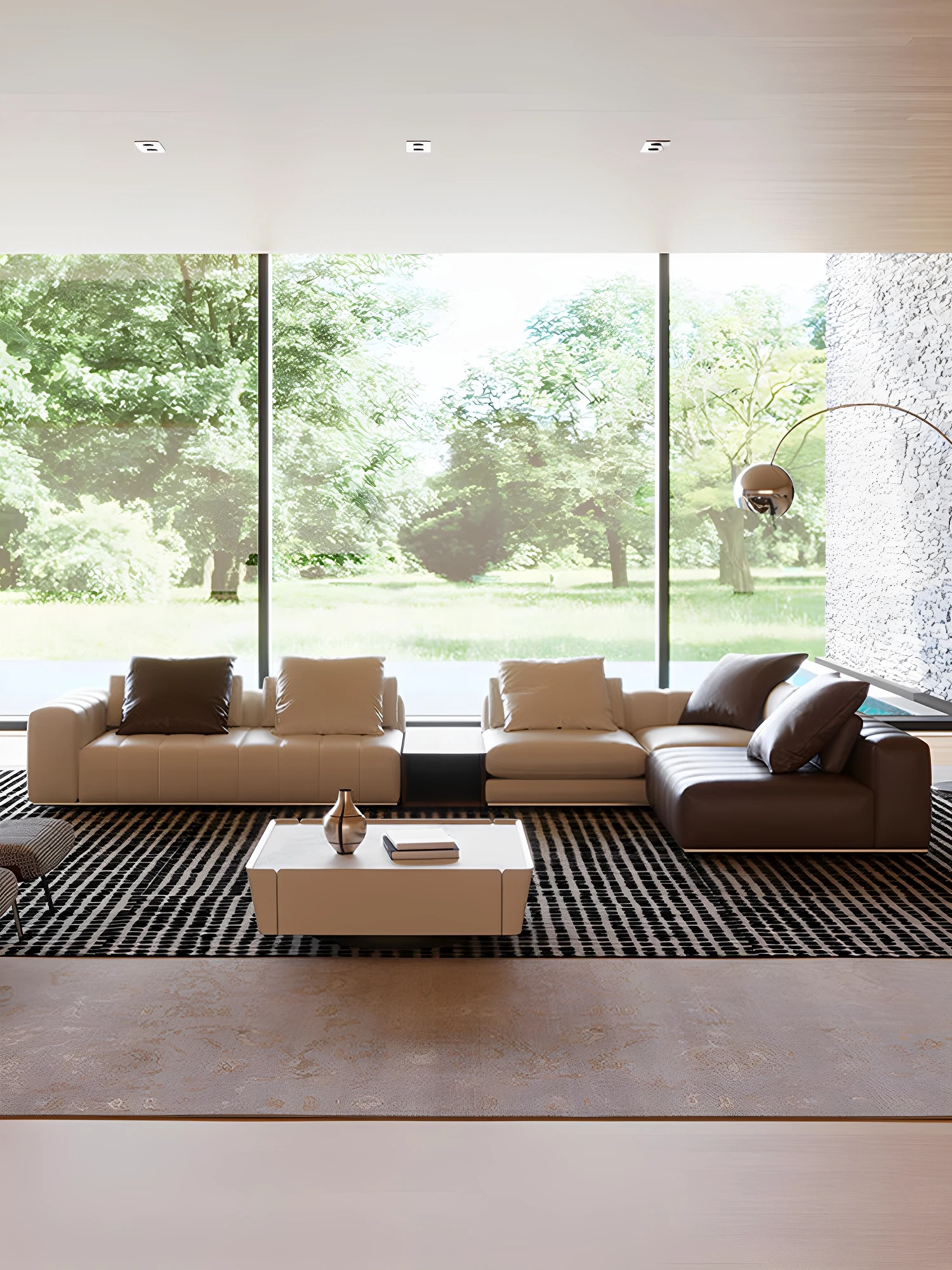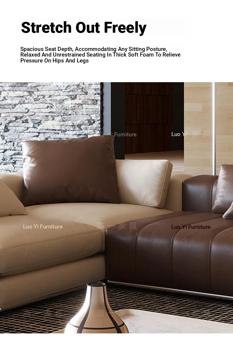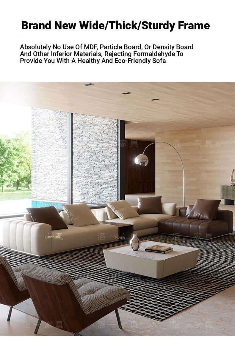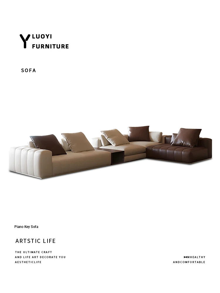 Italian Minimalist Top-Grain Leather Piano Key Sofa - Modern Luxury Design for Spacious Villas and Large Living Rooms - Premium Quality Genuine Leather Couch