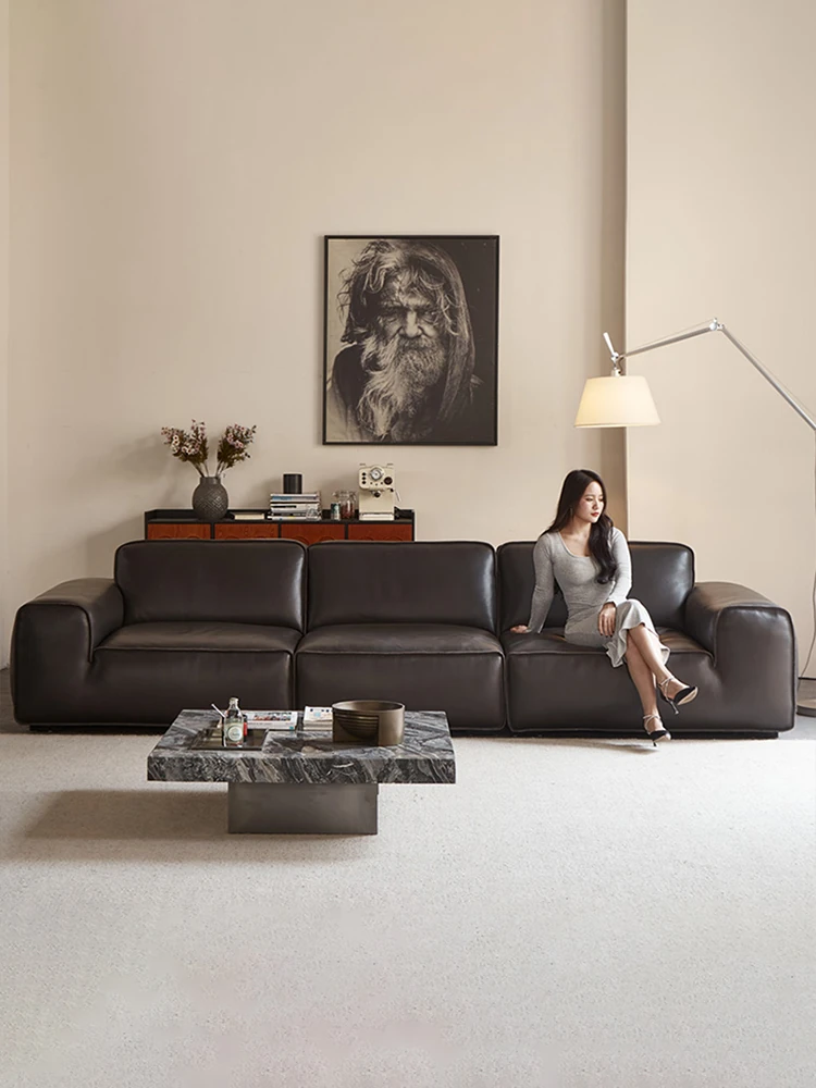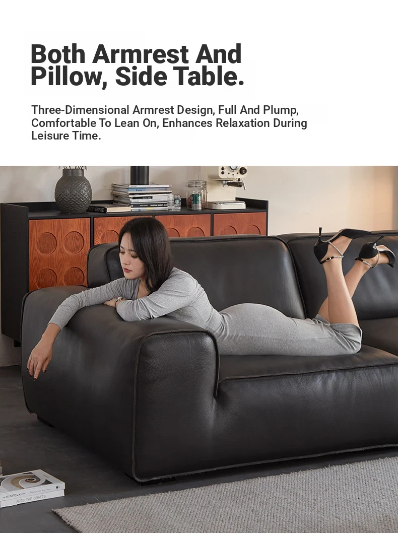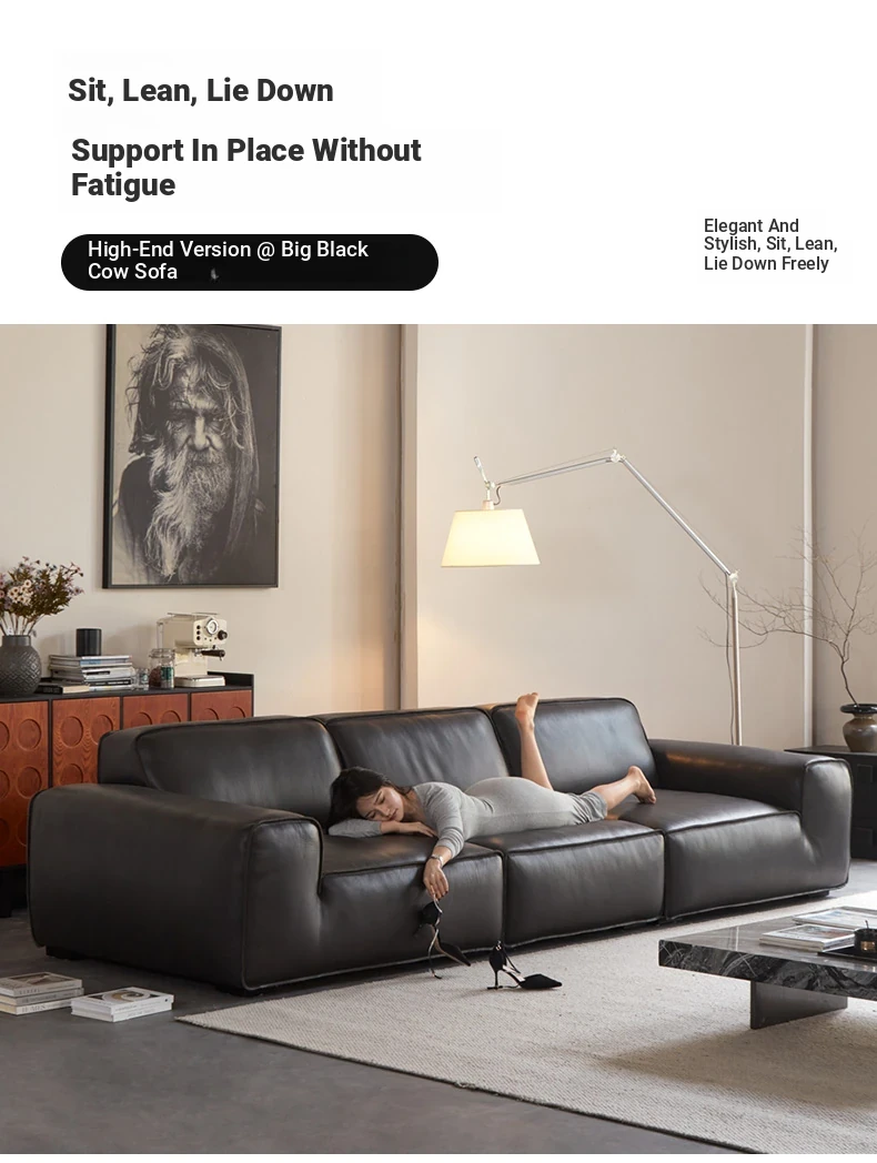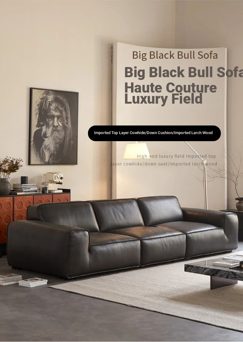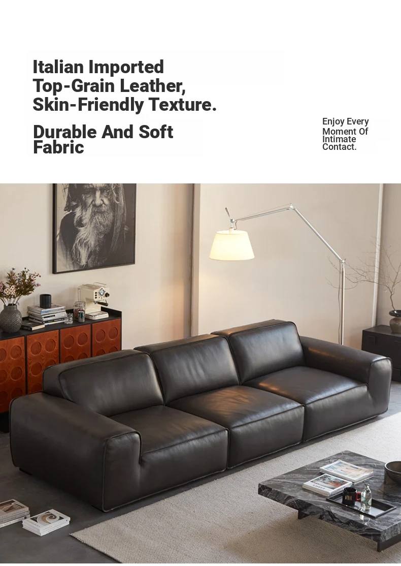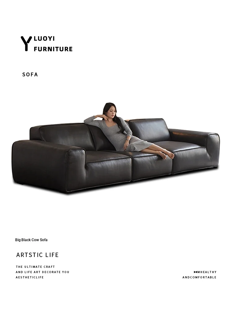 Luxury Italian Minimalist Black Leather Sofa - Custom High-End Design for Spacious Villas and Living Rooms - Perfect for Modern Elegance