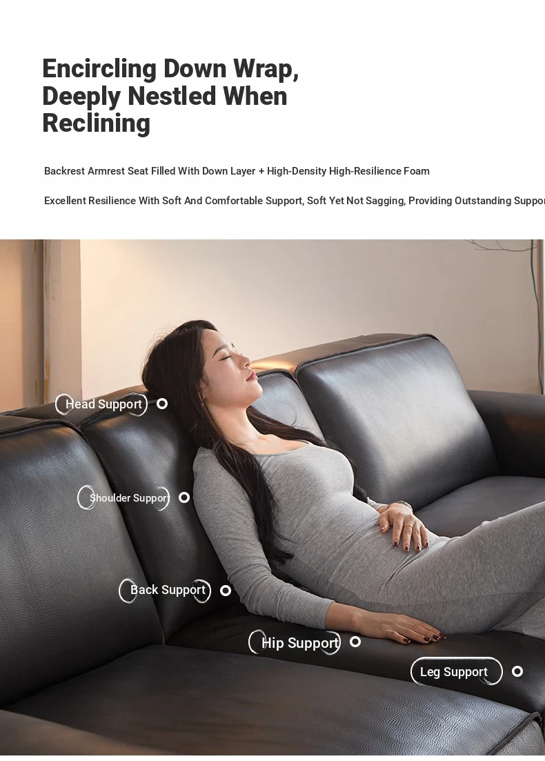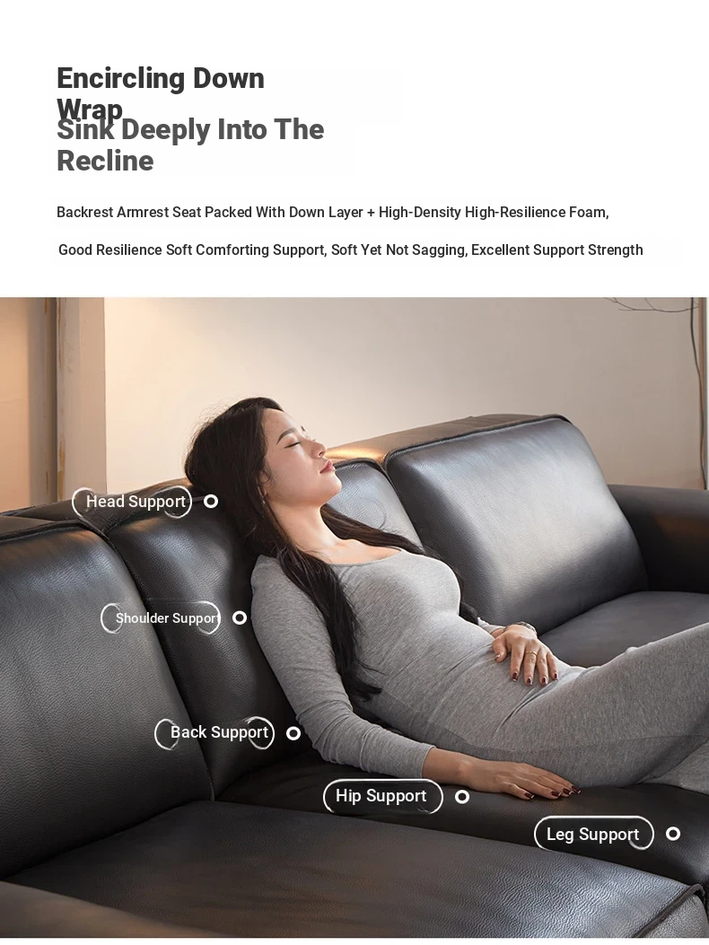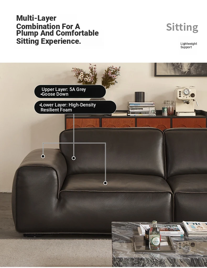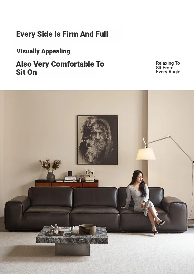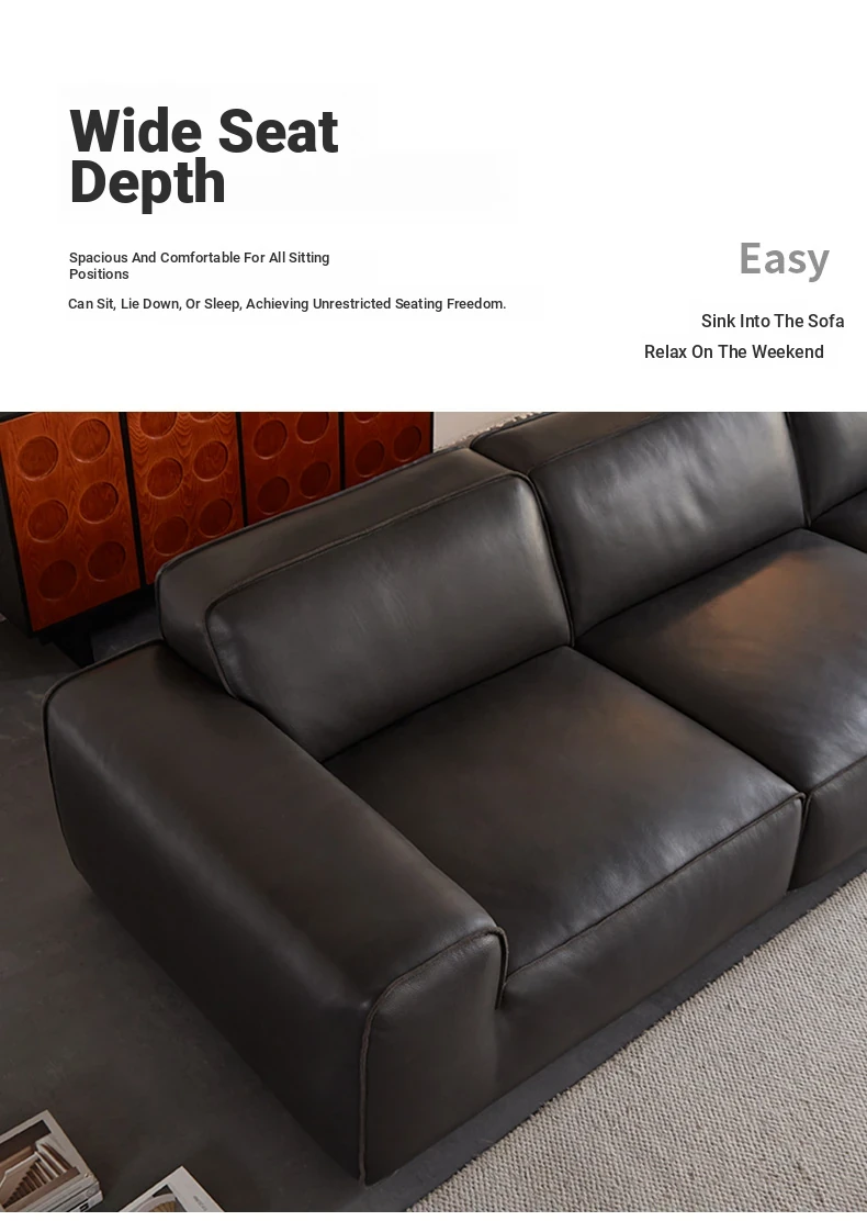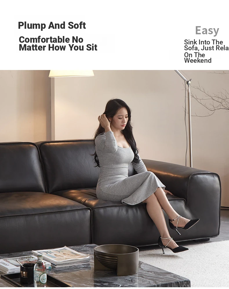 Luxury Italian Minimalist Black Leather Sofa - Custom High-End Design for Spacious Villas and Living Rooms - Perfect for Modern Elegance