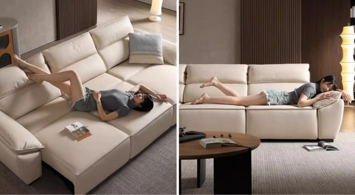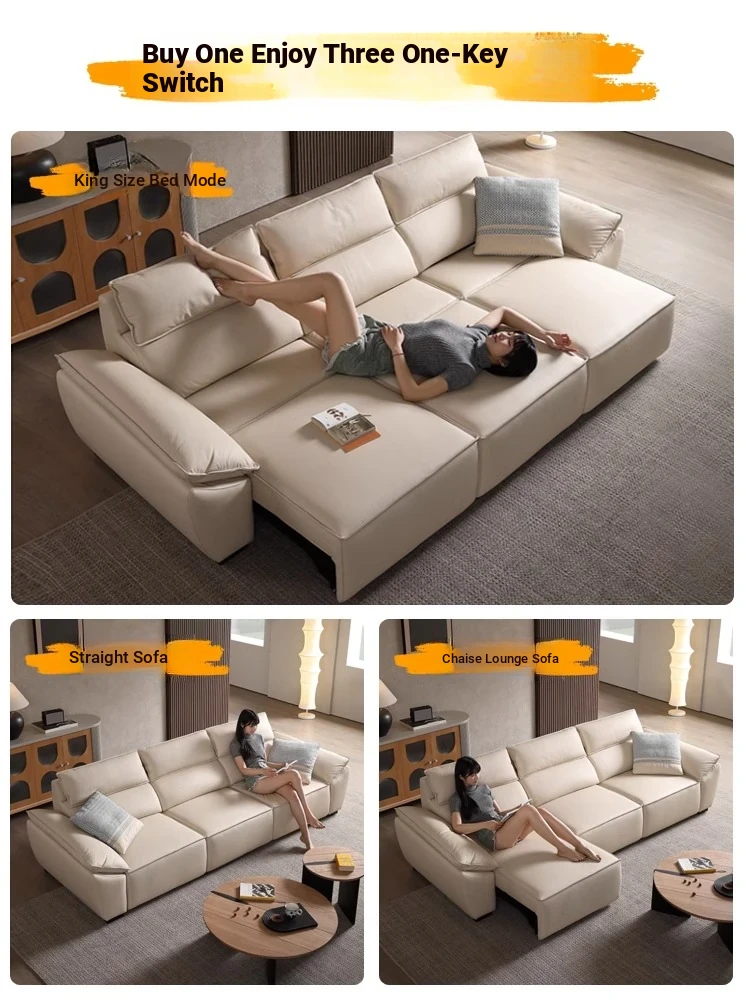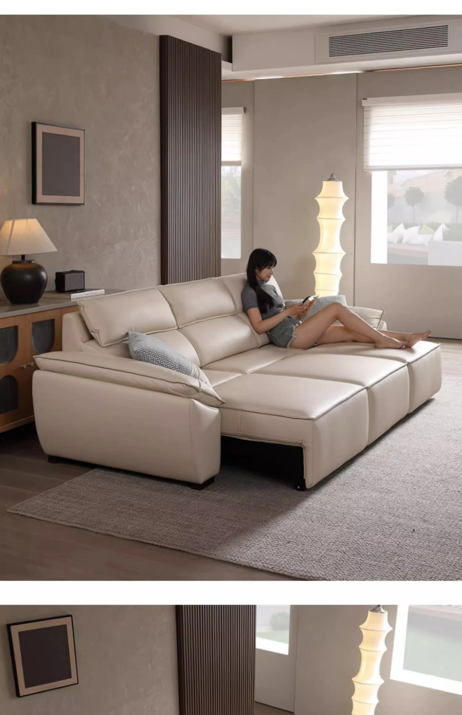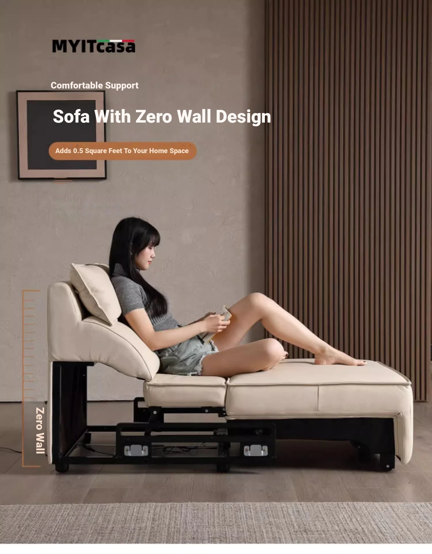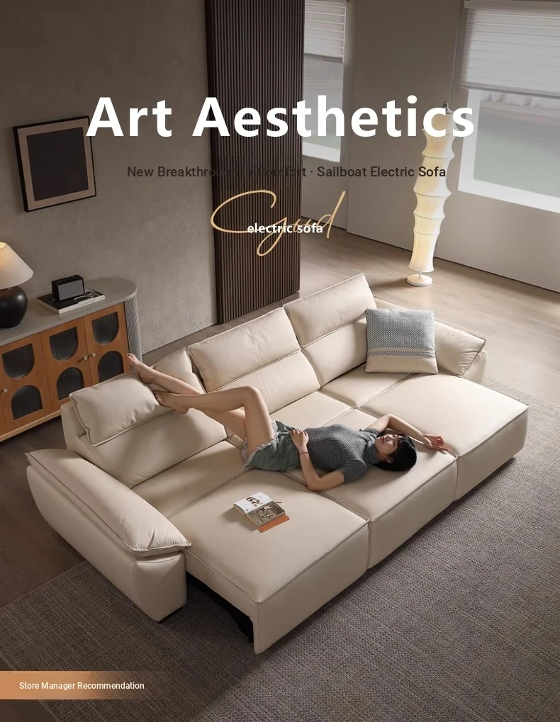Minimalist Cream-Style Wall-Free Electric Sailboat Sofa Bed with Adjustable Remote Control – Versatile and Space-Saving Design for Ultimate Comfort and Style