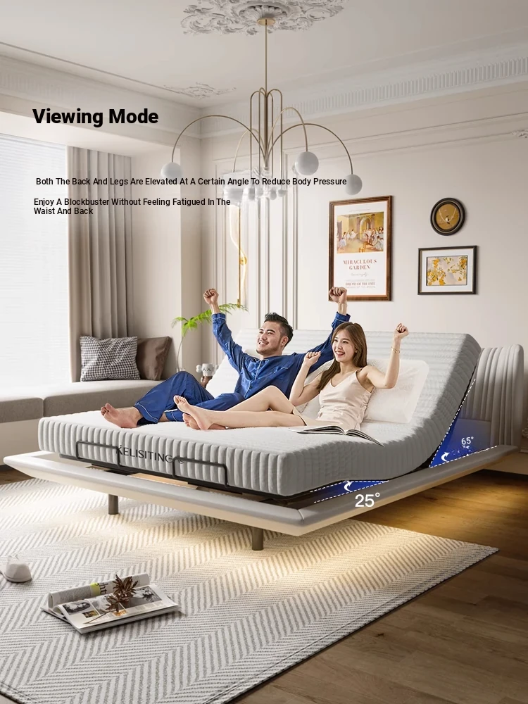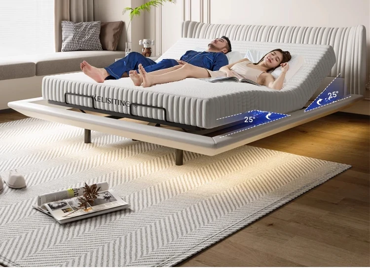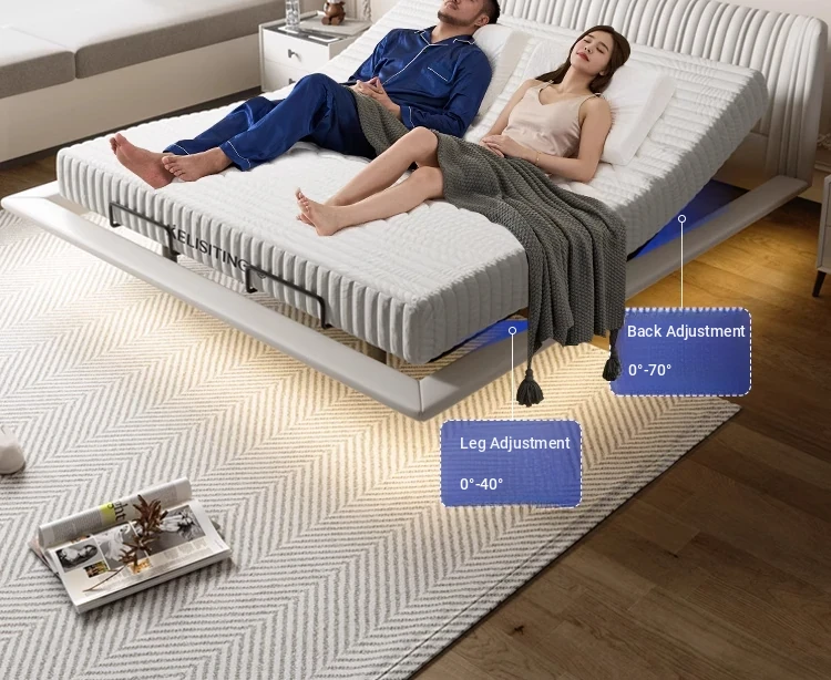 (First layer cowhide bed) + (German OKIN three motors) semi-Separates bed frame +(AI) zero pressure sponge mattress