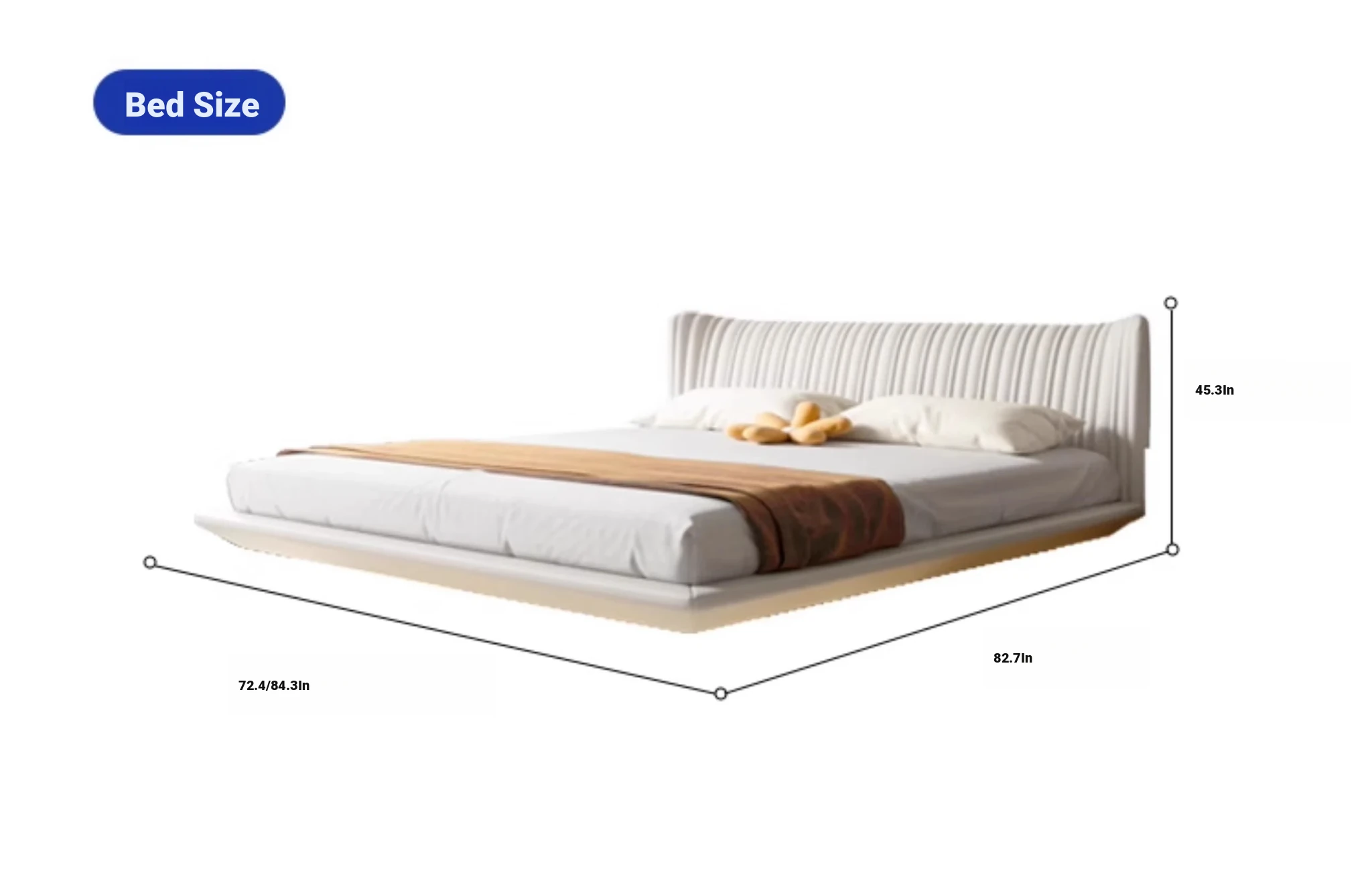 Minimalist Electric Leather Bed - Designer Floating Cream French Style with Adjustable Strips, Perfect for Modern Living Spaces!
