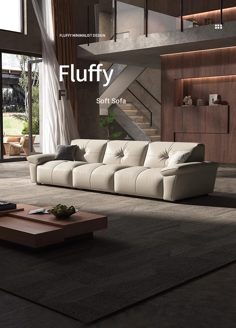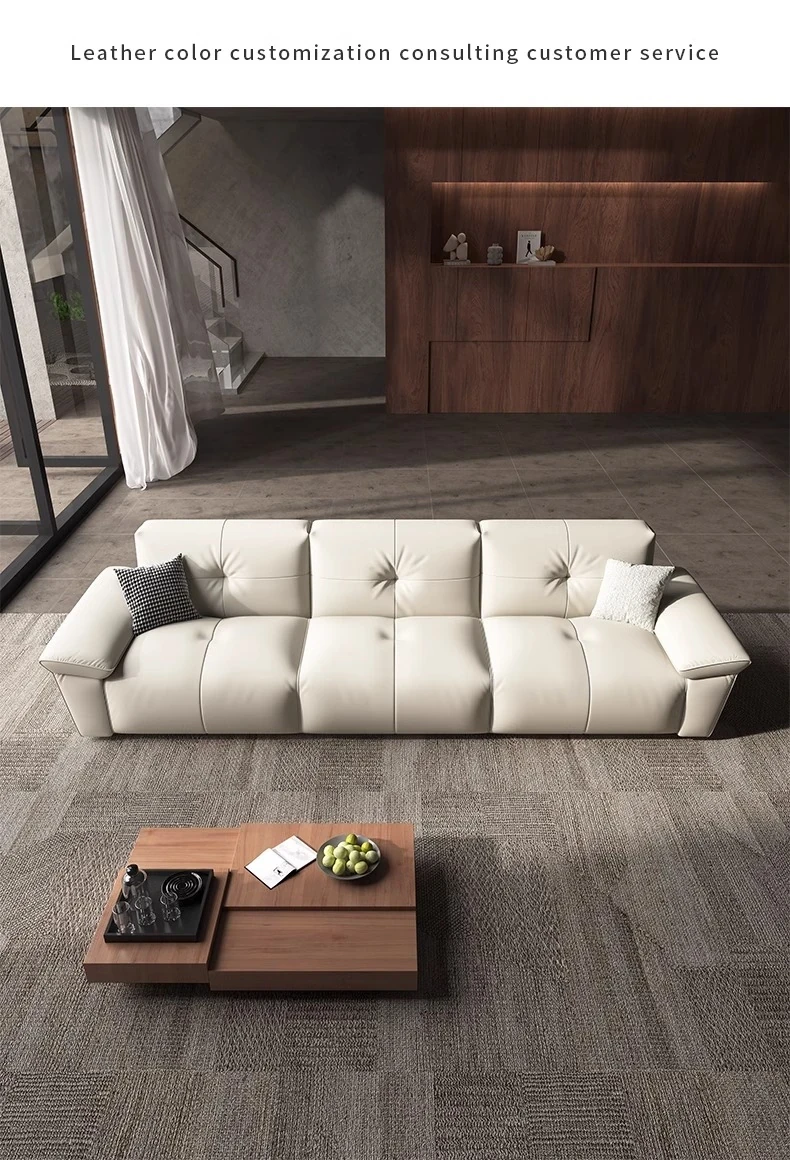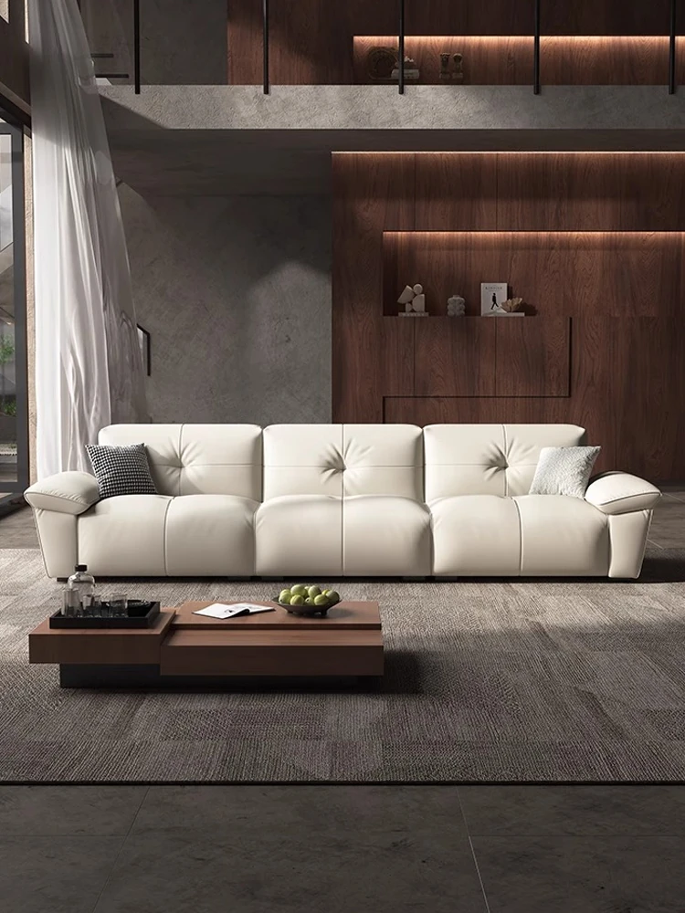 Minimalist Italian Bread Sofa - Luxurious First Layer Cowhide for Small Villas and Living Rooms - Chic New Design in Nordic Style