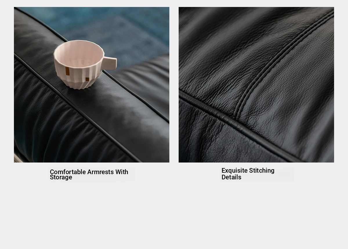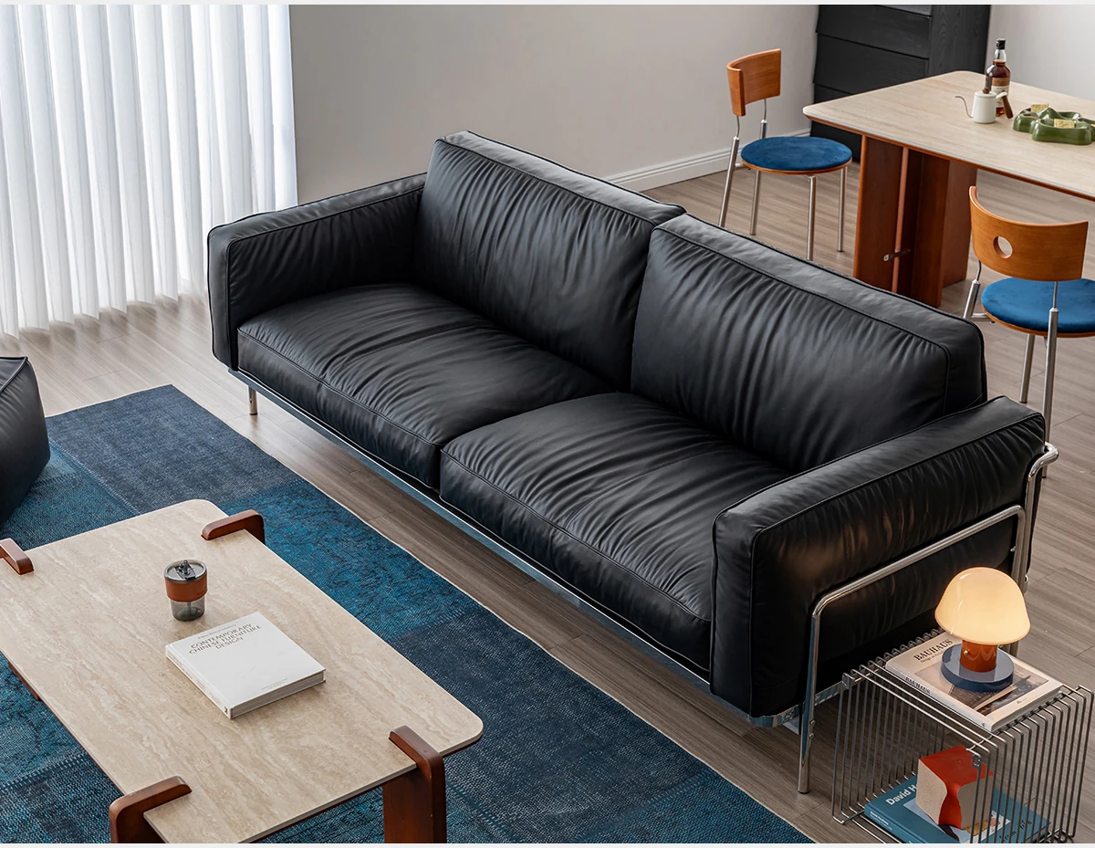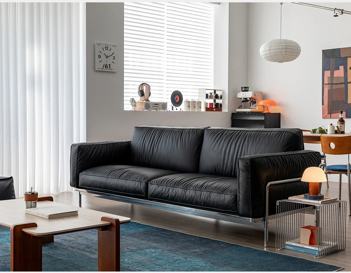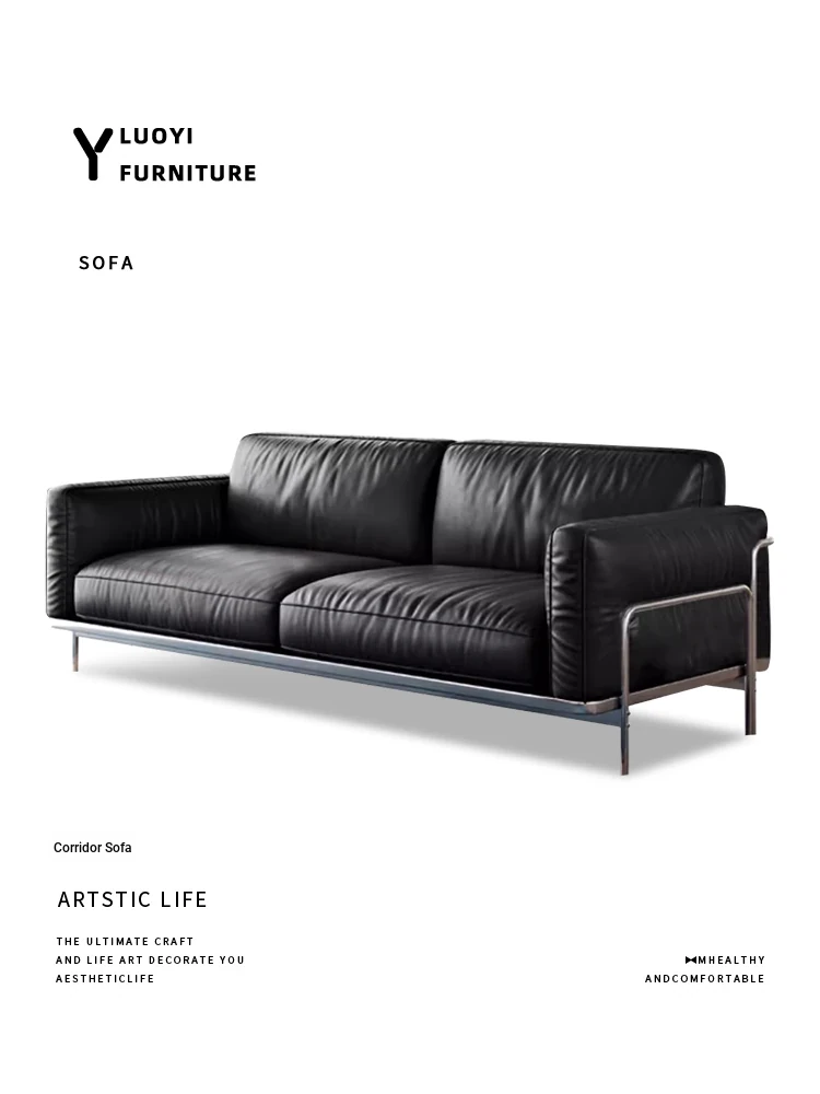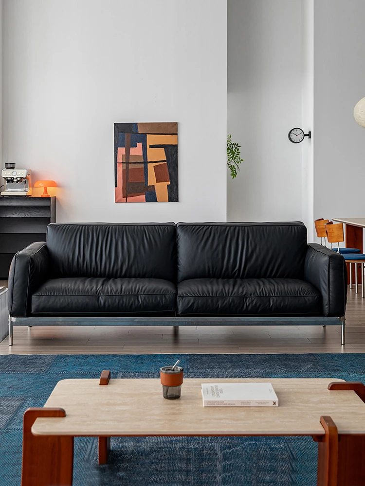 Modern Minimalist Black Sofa for Small Living Rooms - 2025 New Arrival, Crafted from Top-Grade Leather with Down Filling and Steel Frame. Perfect for Stylish Comfort!