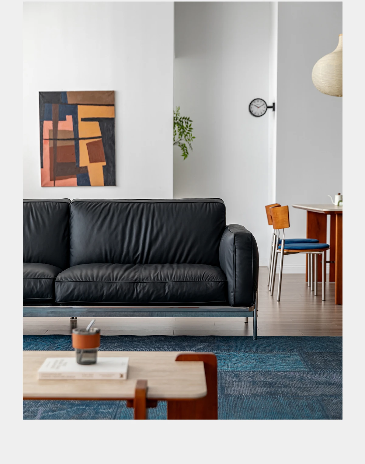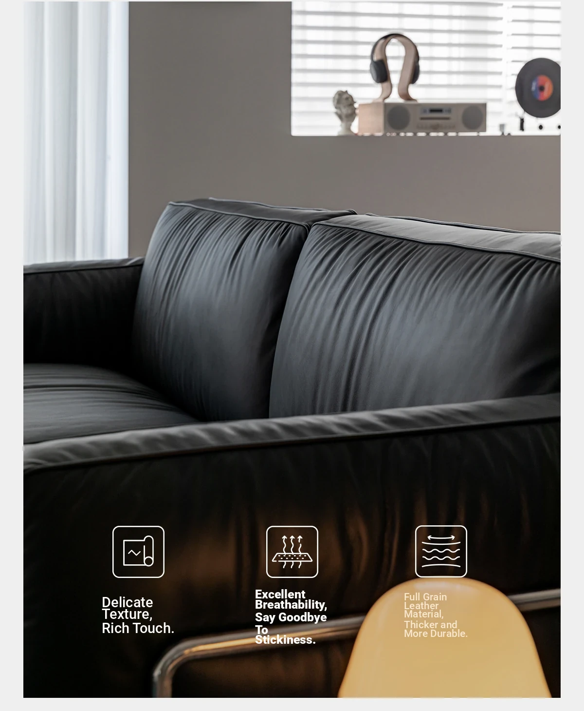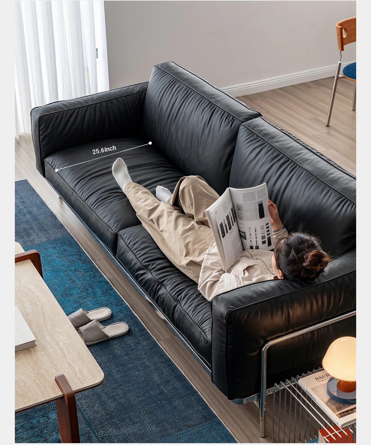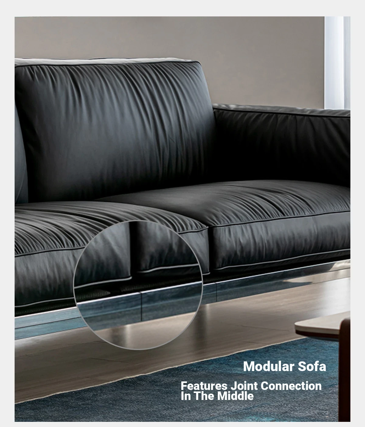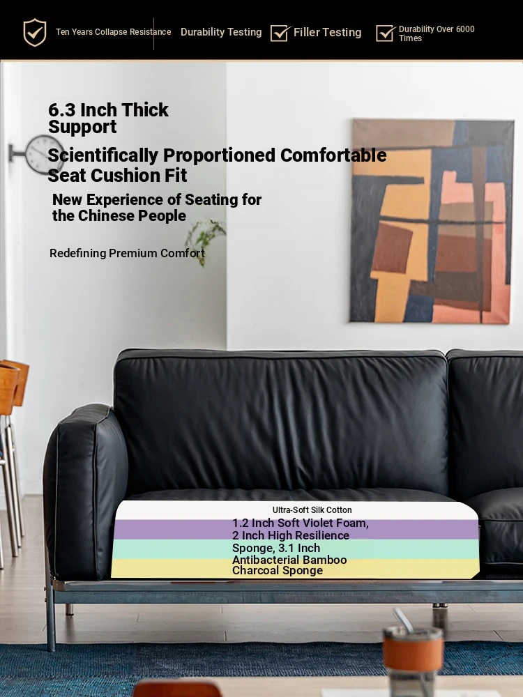 Modern Minimalist Black Sofa for Small Living Rooms - 2025 New Arrival, Crafted from Top-Grade Leather with Down Filling and Steel Frame. Perfect for Stylish Comfort!