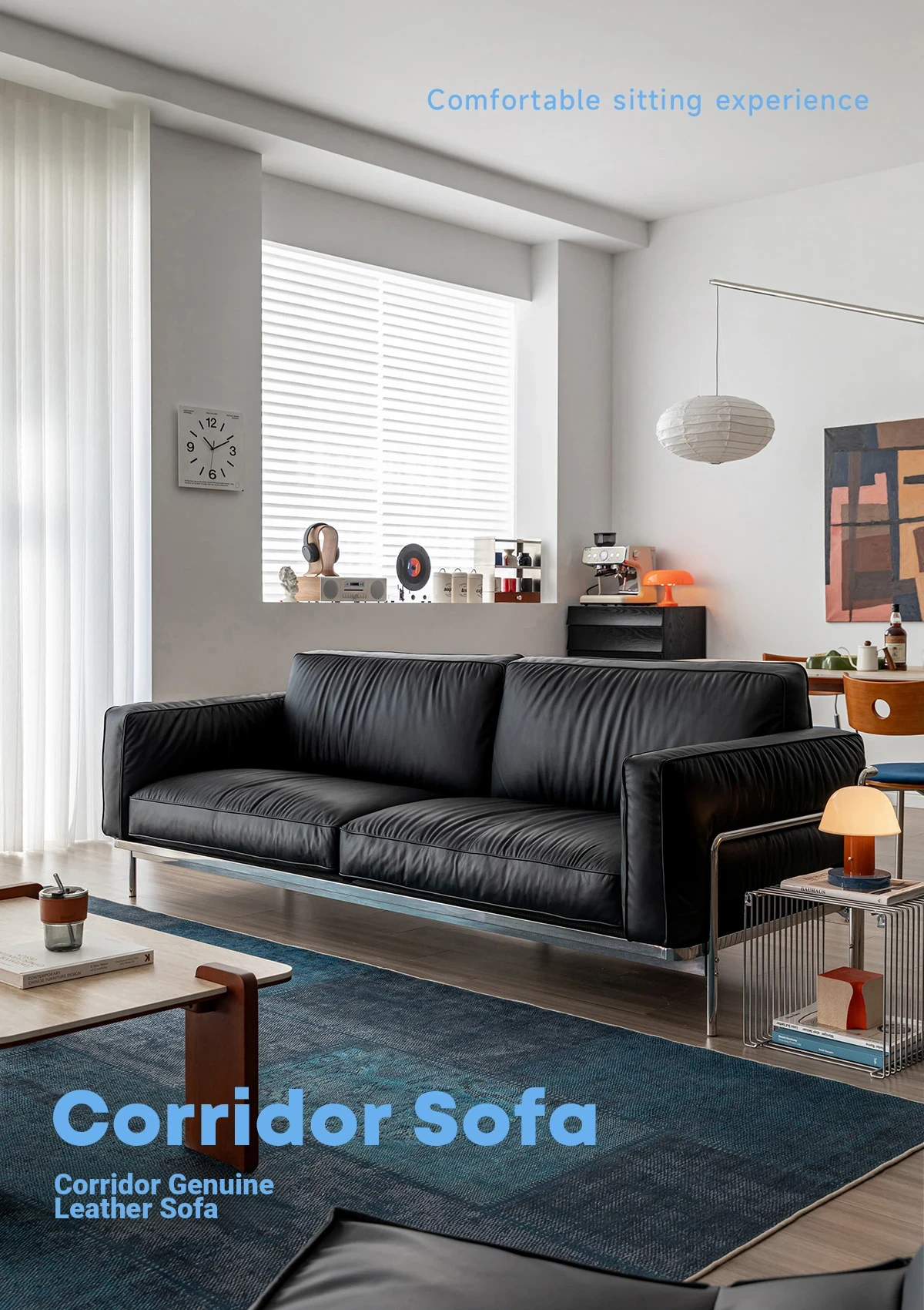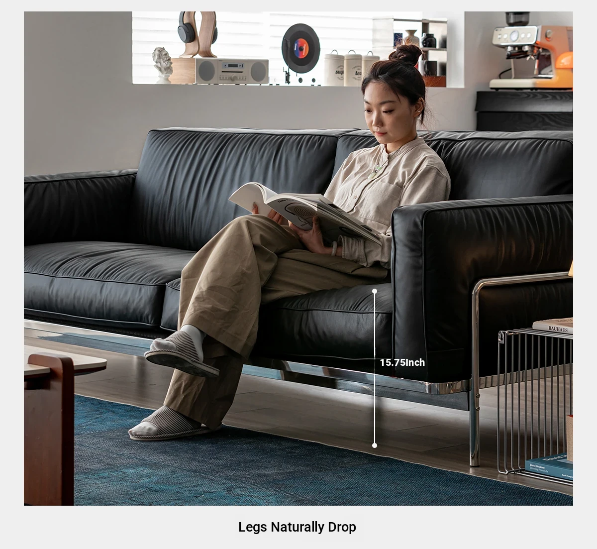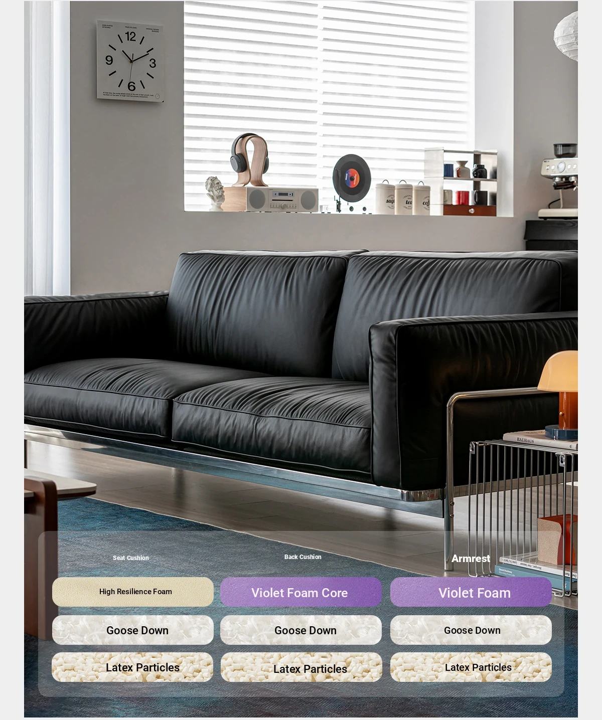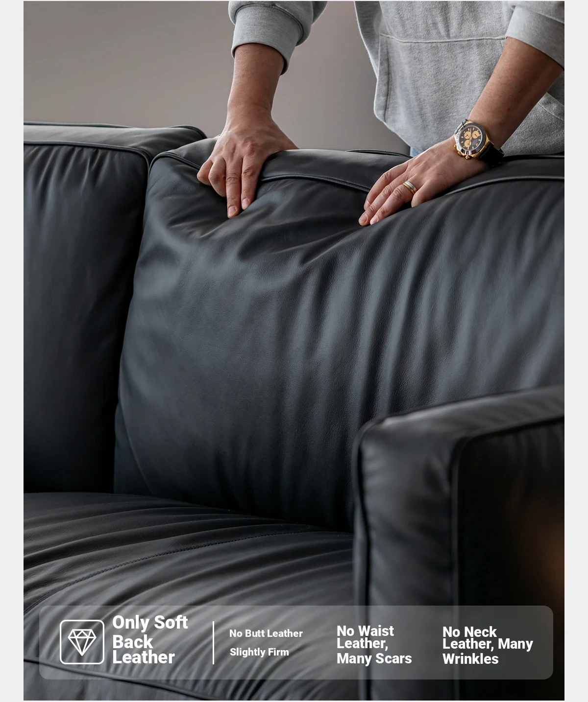 Modern Minimalist Black Sofa for Small Living Rooms - 2025 New Arrival, Crafted from Top-Grade Leather with Down Filling and Steel Frame. Perfect for Stylish Comfort!