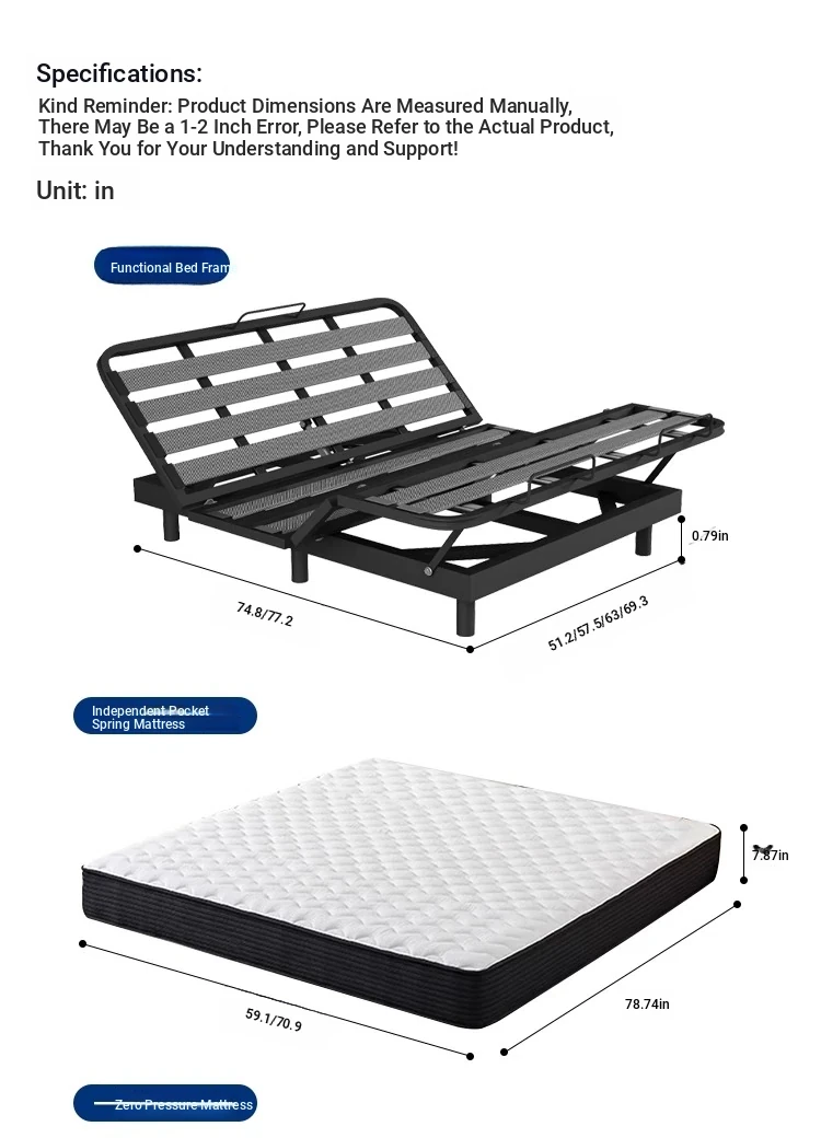 No bedside bed + electric bed frame + (moderate hardness) 0 pressure sponge mattress