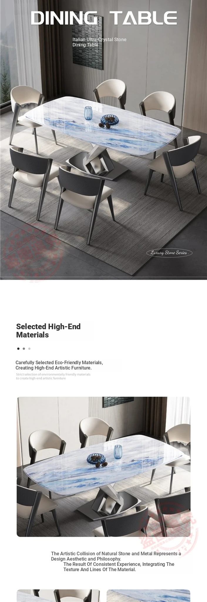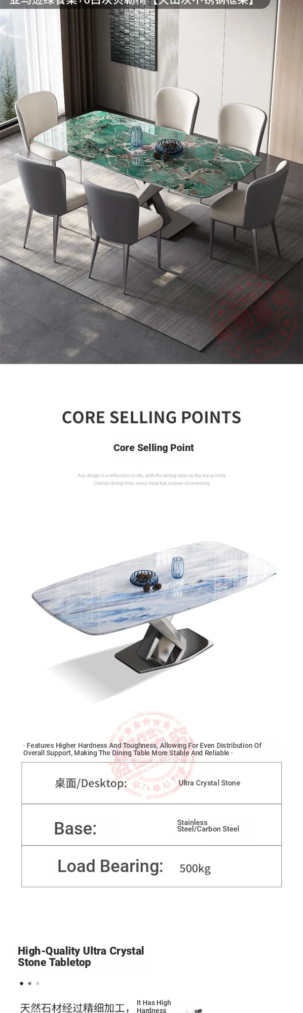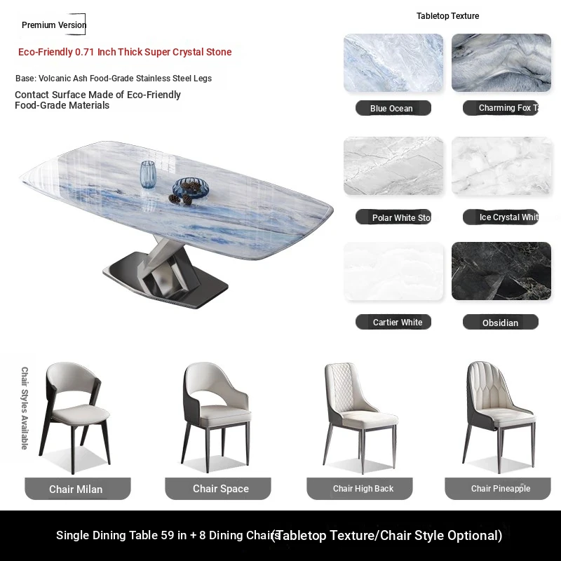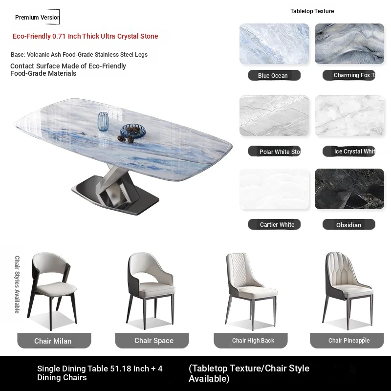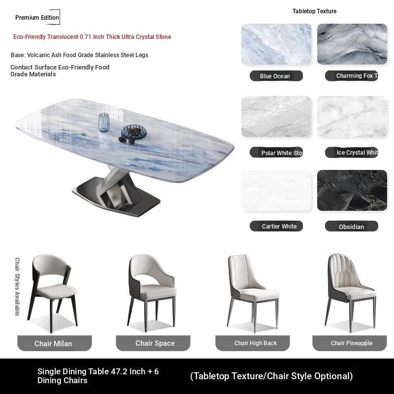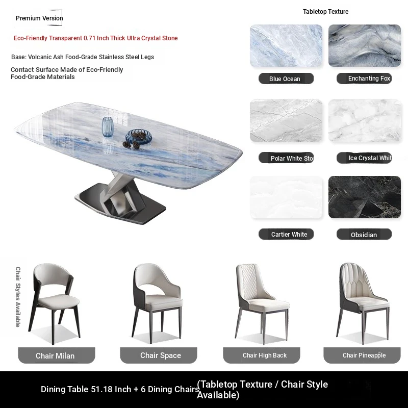 Premium Stainless Steel Ultra-Crystal Stone Dining Table for Home - Perfect for Small Spaces, Featuring Natural Large Imitation Marble Design, Elegant Micro-Crystal Stone Luxury Table for Western Dining.
