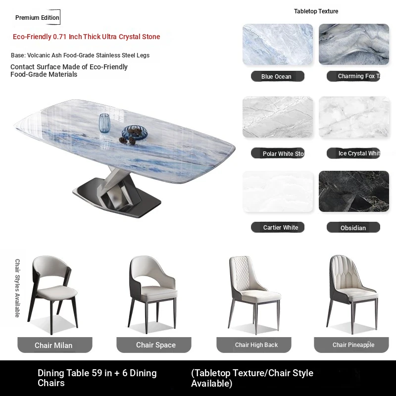59.06 in 898# Super crystal stone square table +6 Cat Claw leather dining chairs [styles optional]]