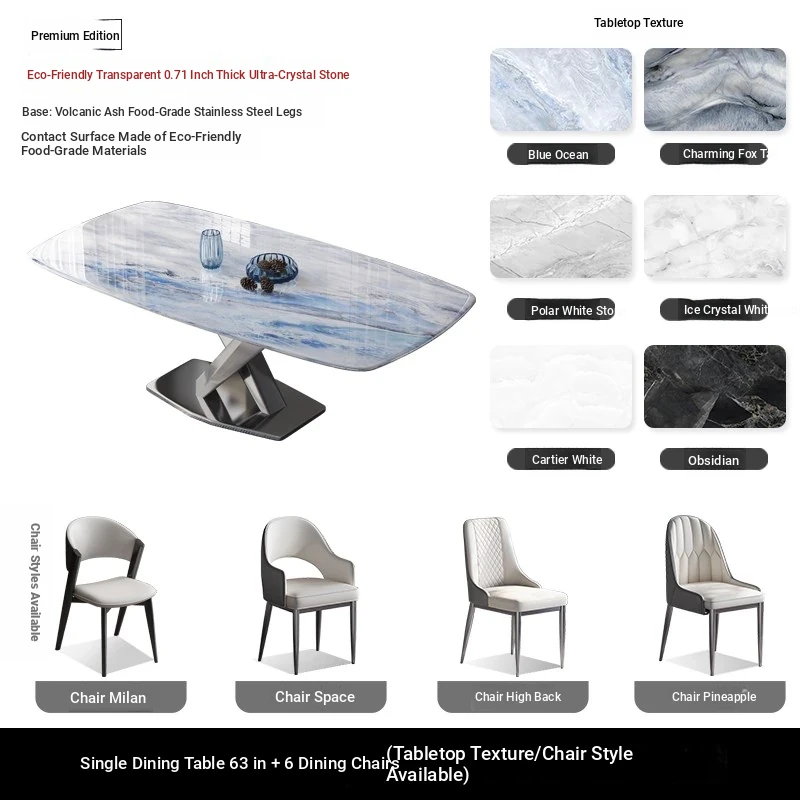 55.12 in 898# Super crystal stone square table +6 Cat Claw leather dining chairs [styles optional]]