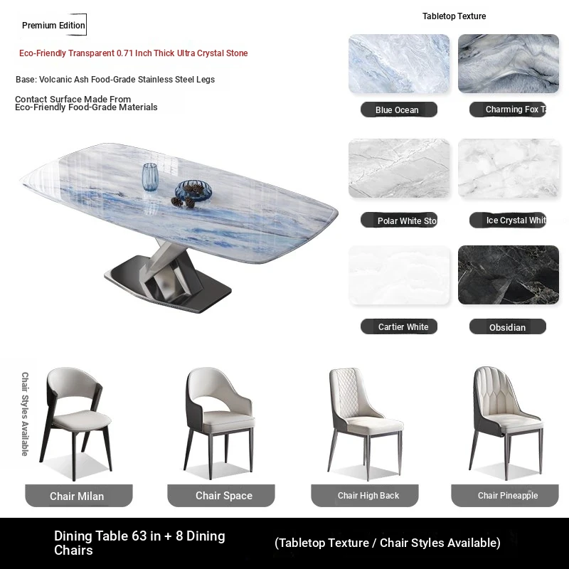 62.99 in 898# Super crystal stone square table +8 Cat Claw leather dining chairs [styles optional]]