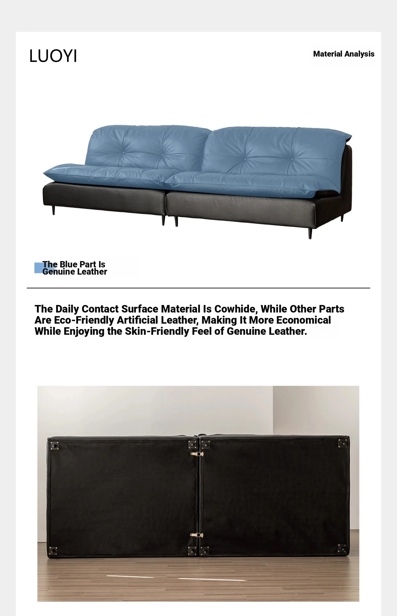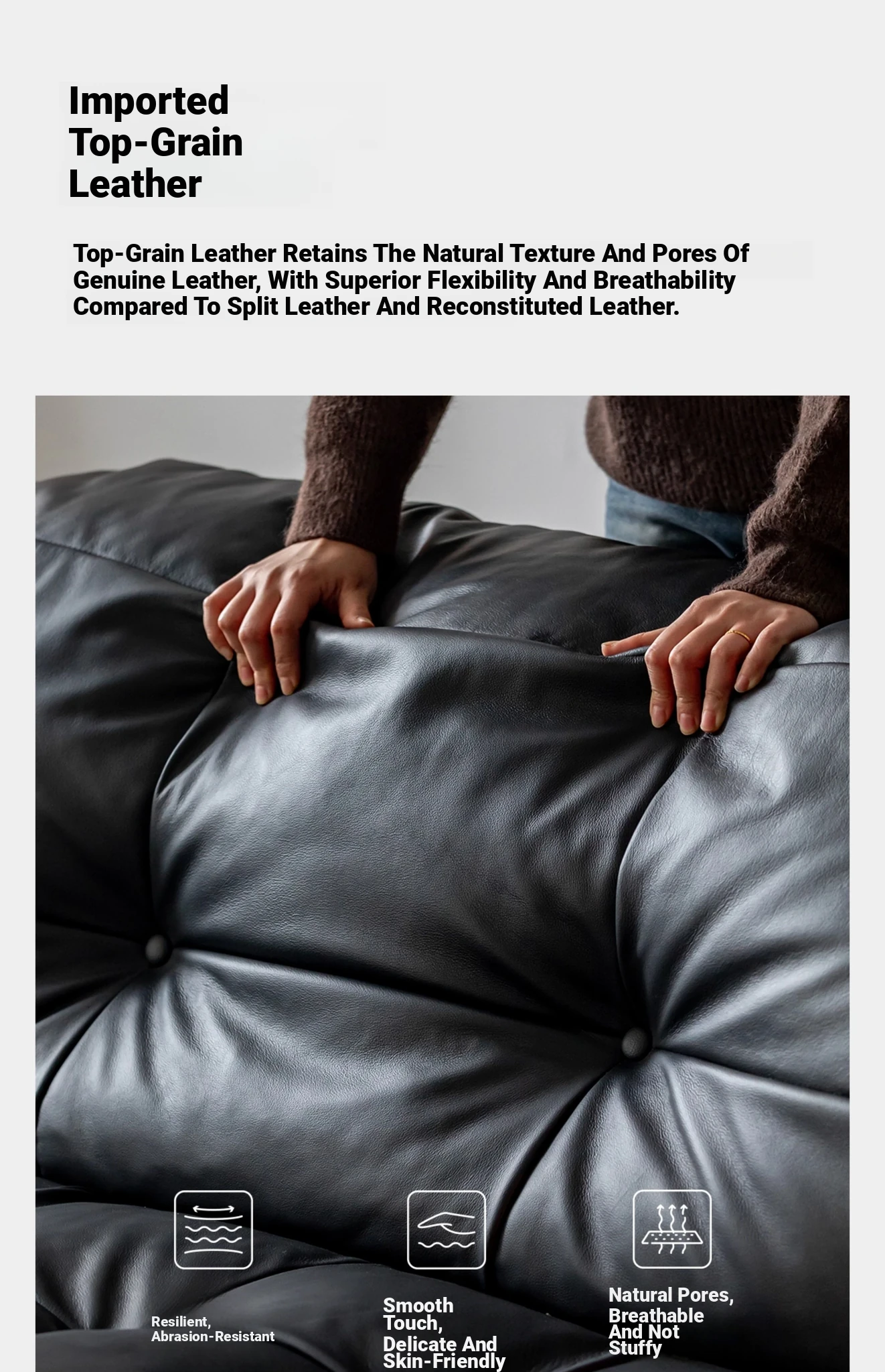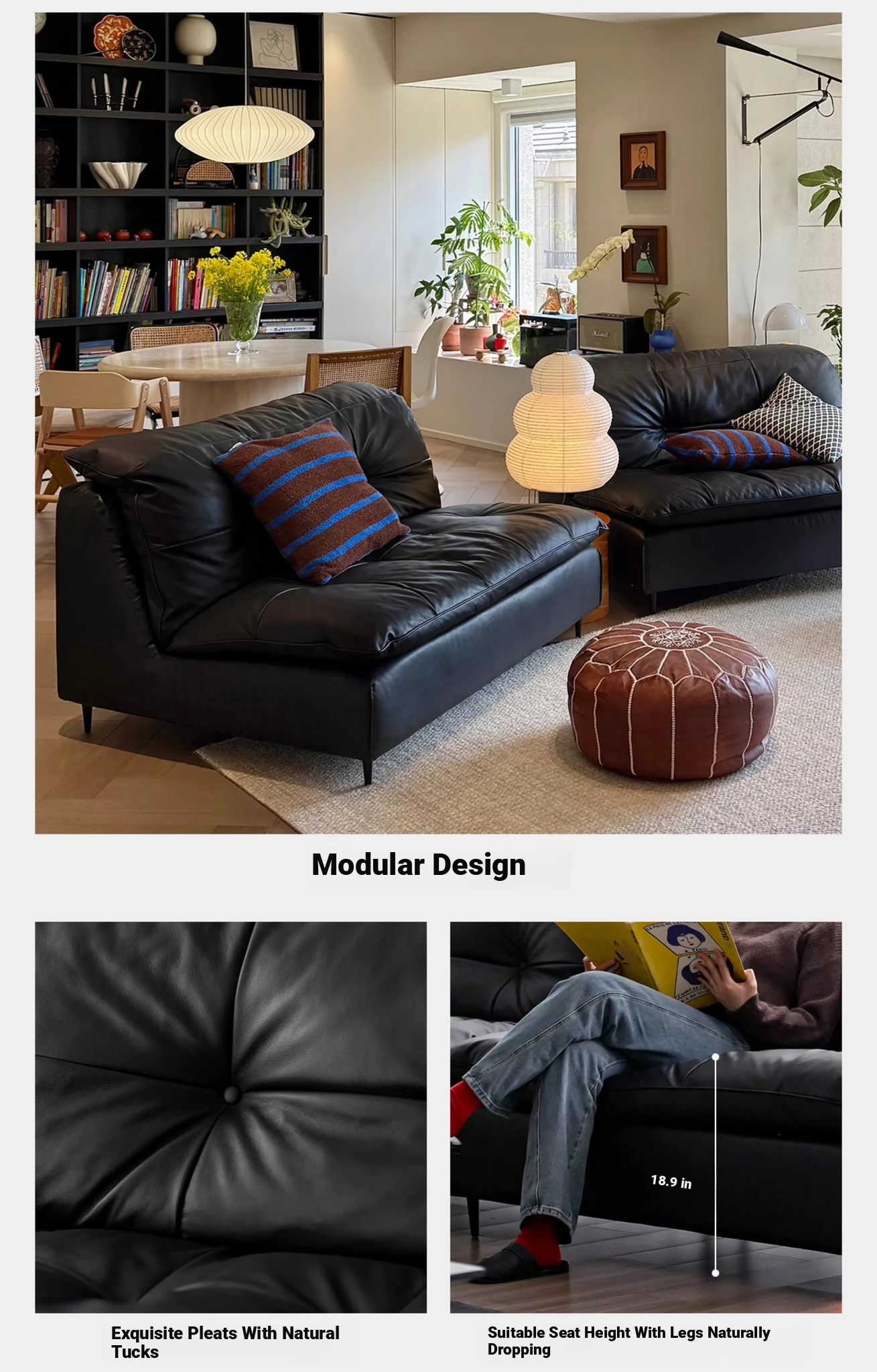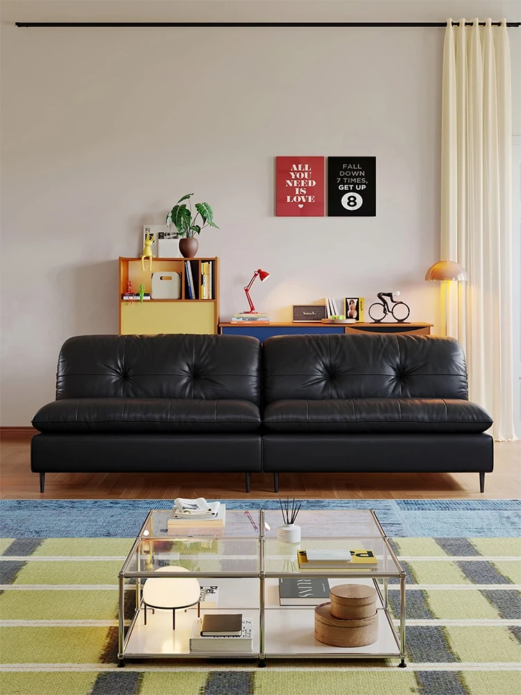 Riga Bauhaus Genuine Leather Sofa - Modern Minimalist Retro Armless Couch for Living Room, Stylish and Comfortable Upholstered Furniture