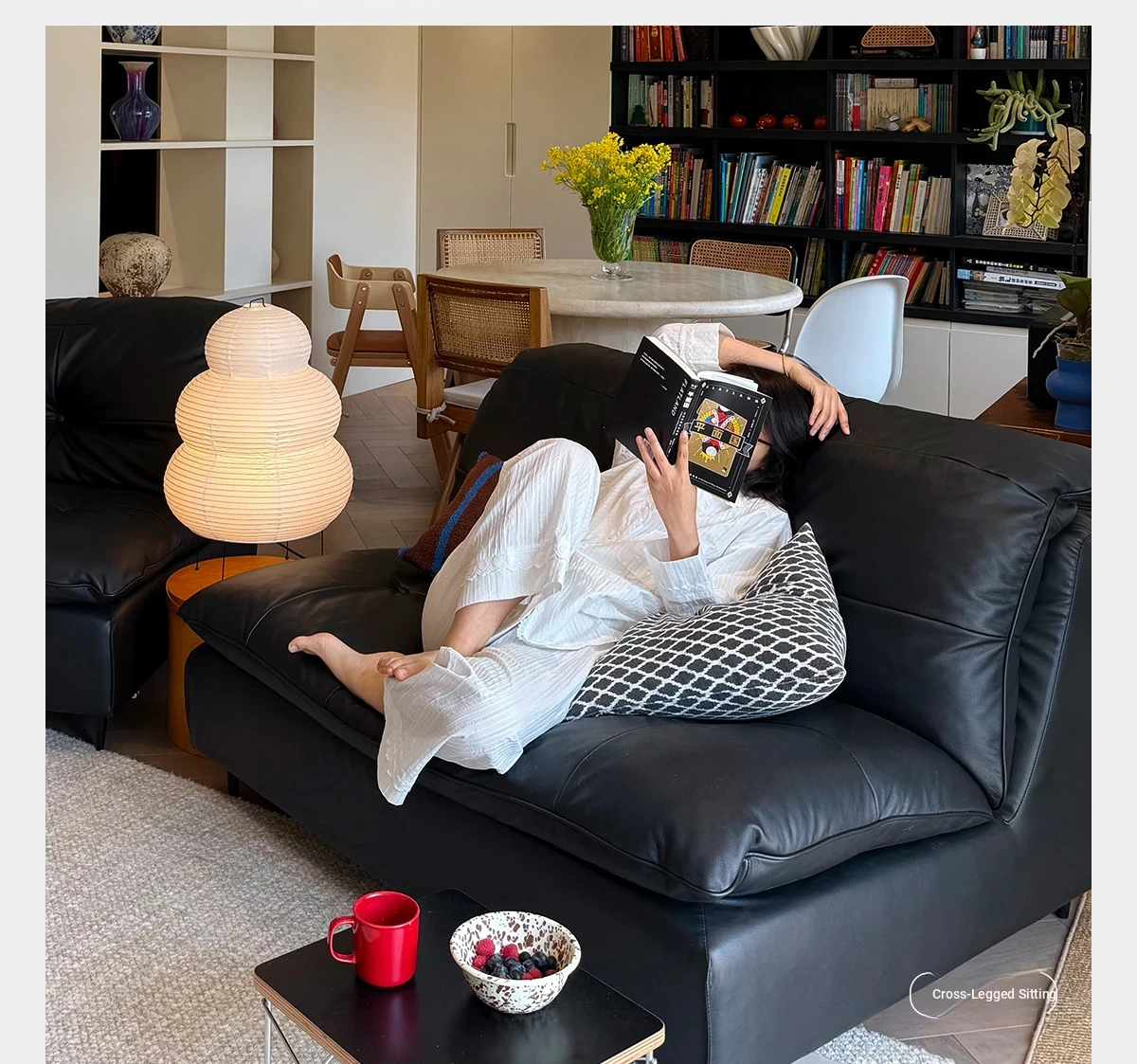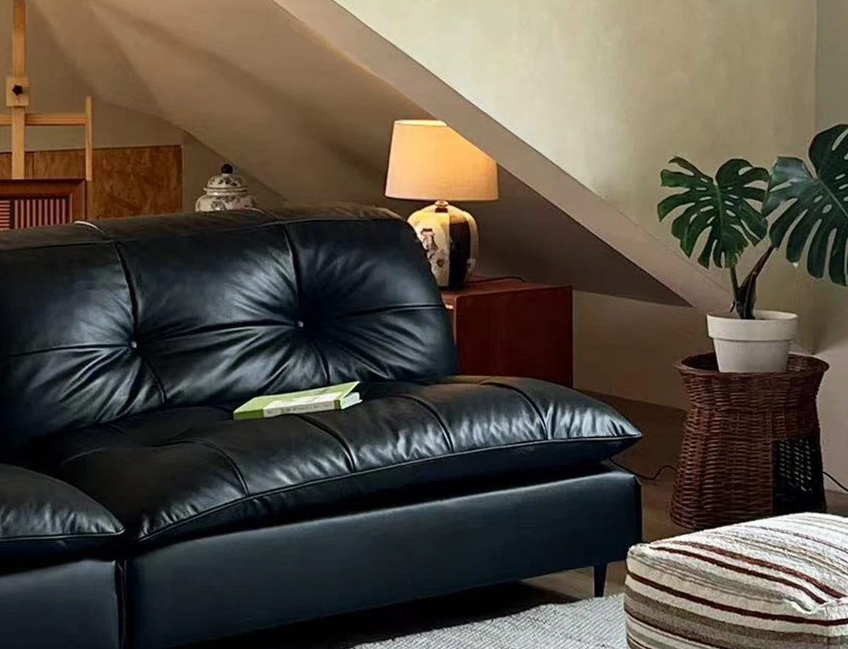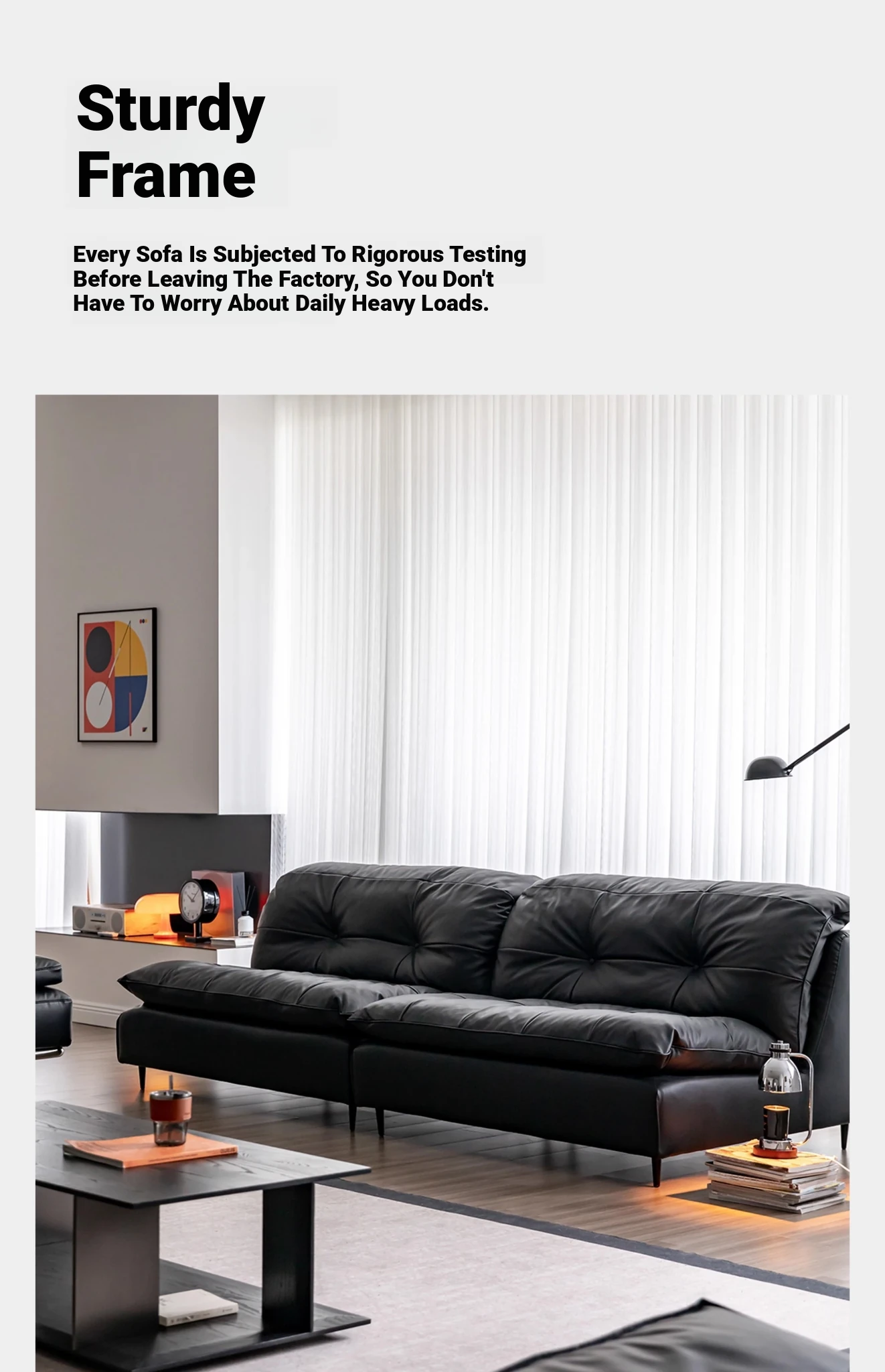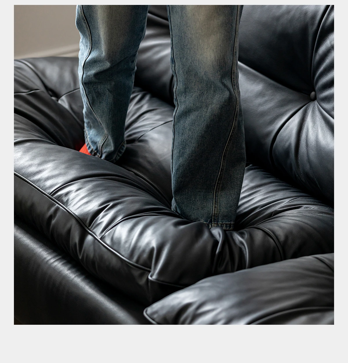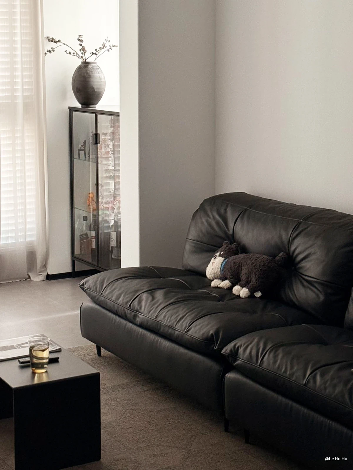 Riga Bauhaus Genuine Leather Sofa - Modern Minimalist Retro Armless Couch for Living Room, Stylish and Comfortable Upholstered Furniture