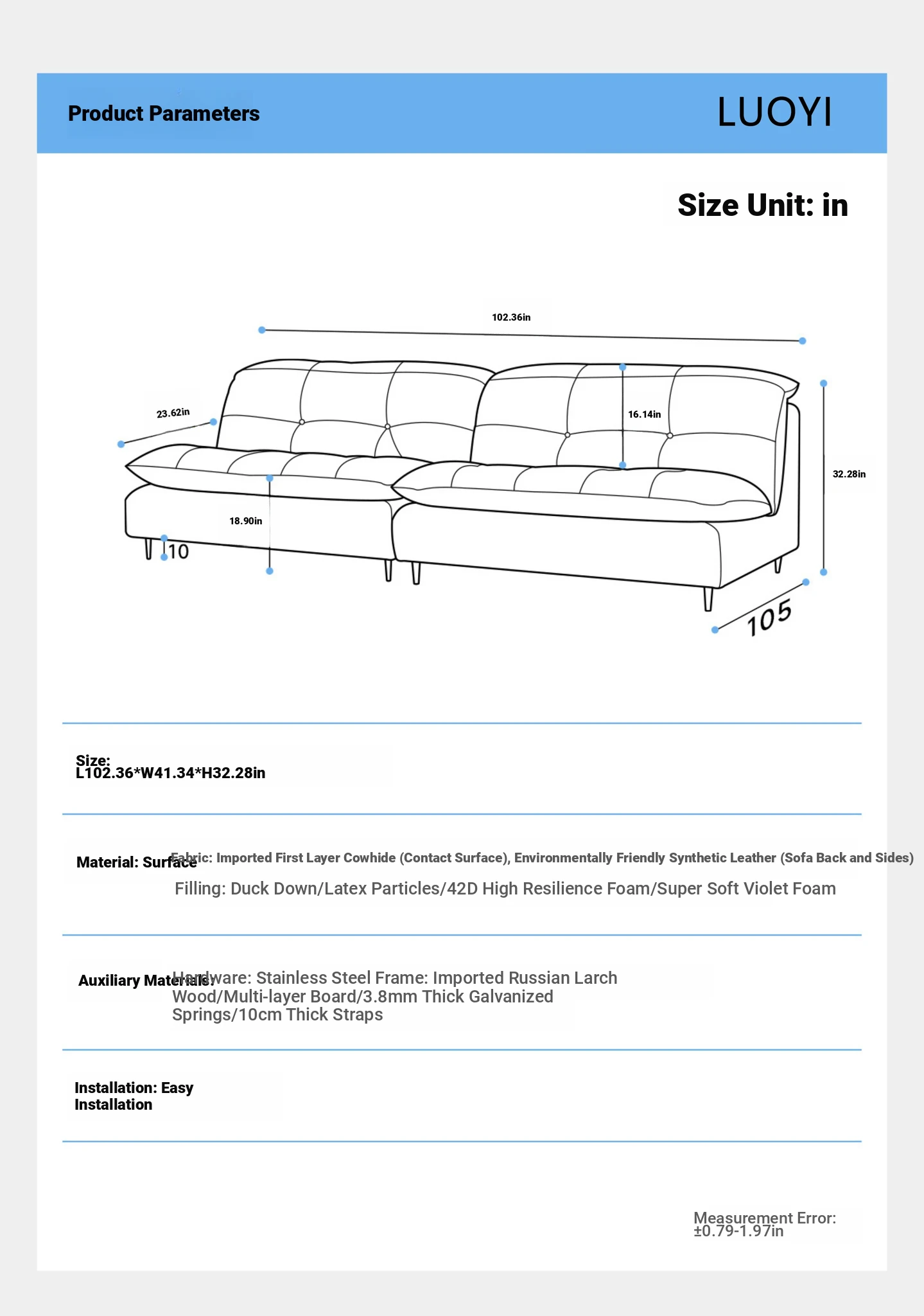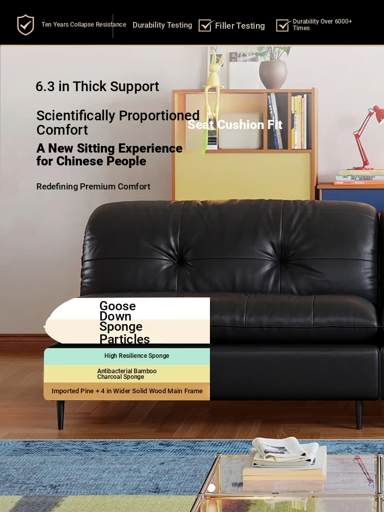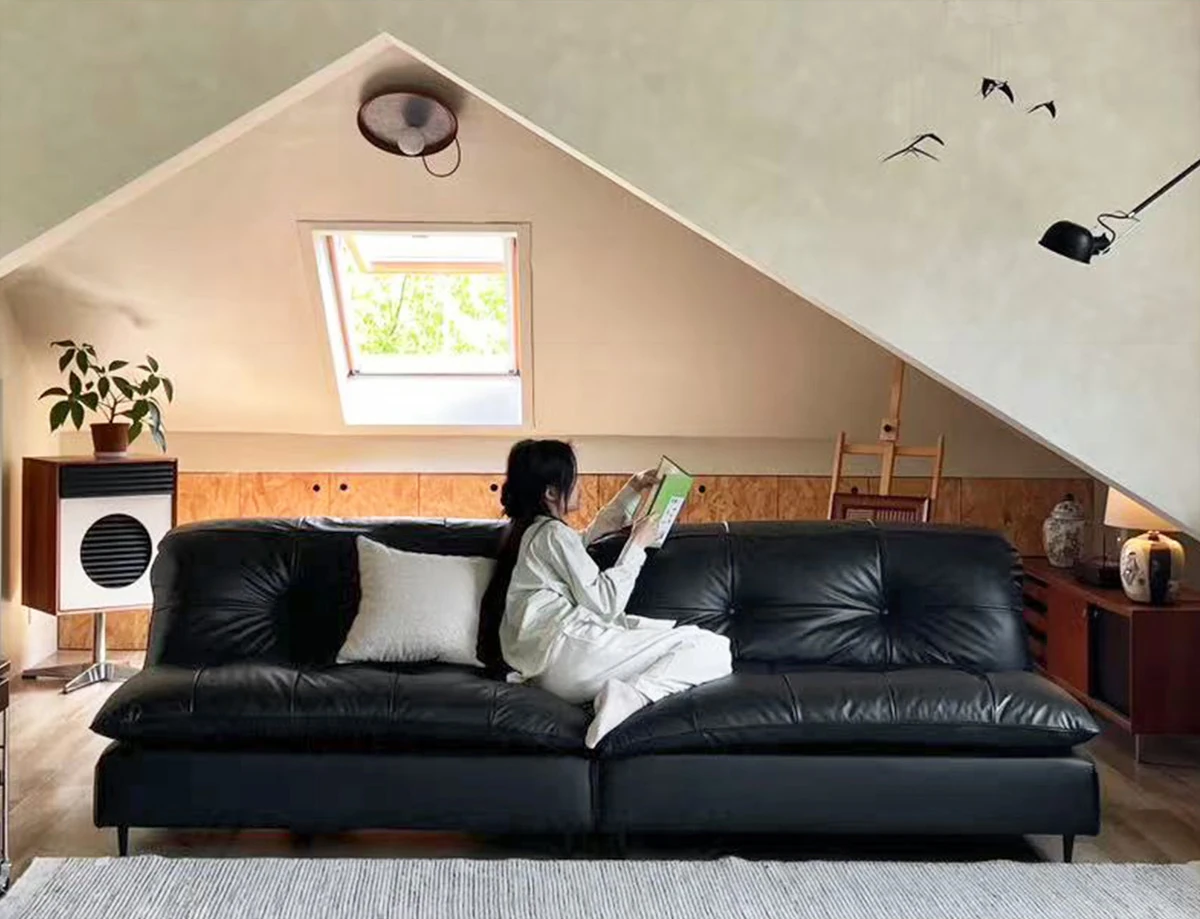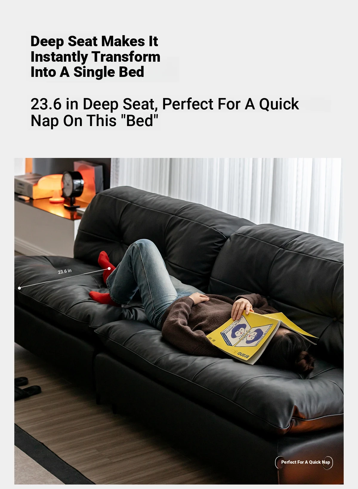 Riga Bauhaus Genuine Leather Sofa - Modern Minimalist Retro Armless Couch for Living Room, Stylish and Comfortable Upholstered Furniture
