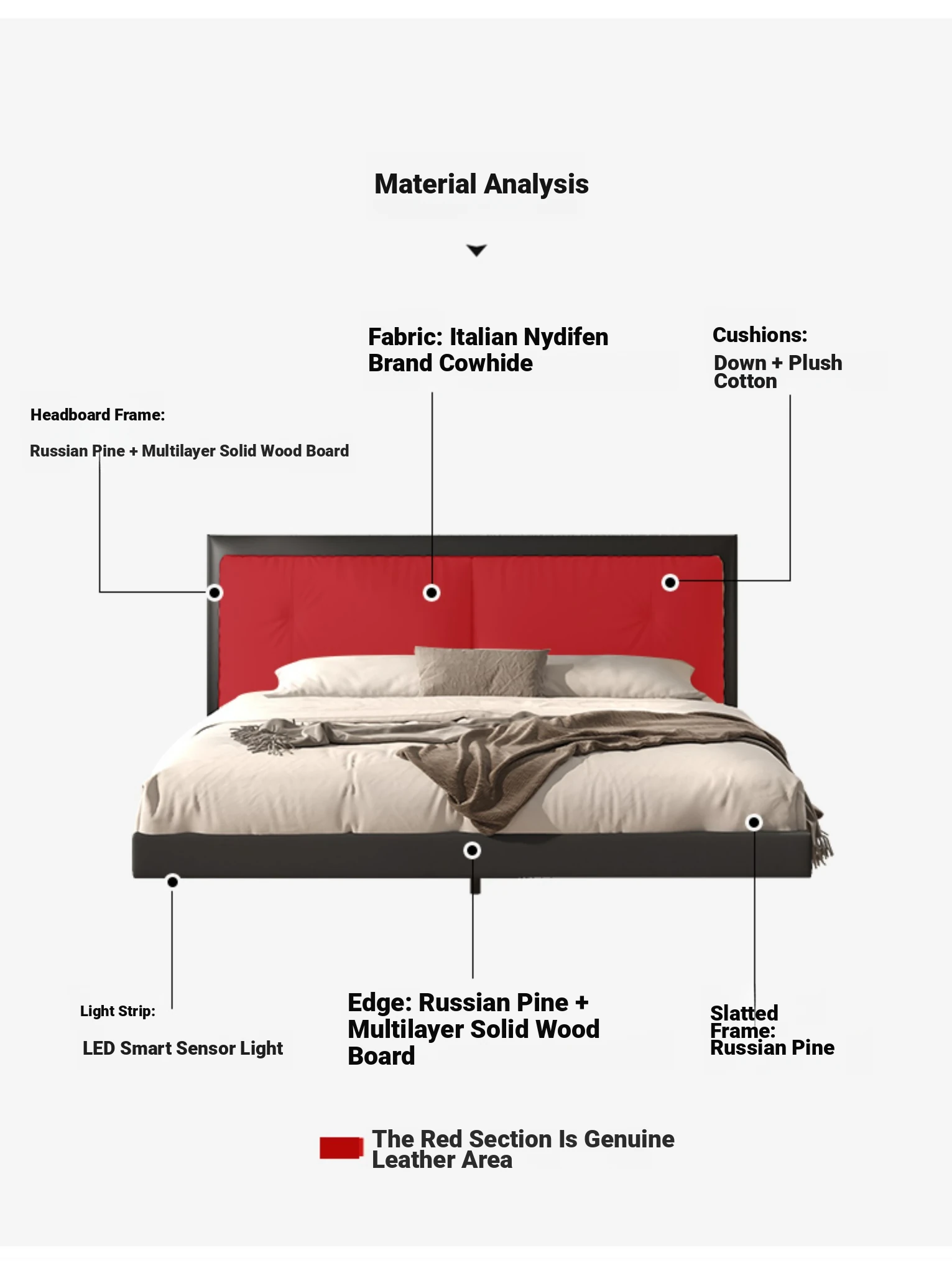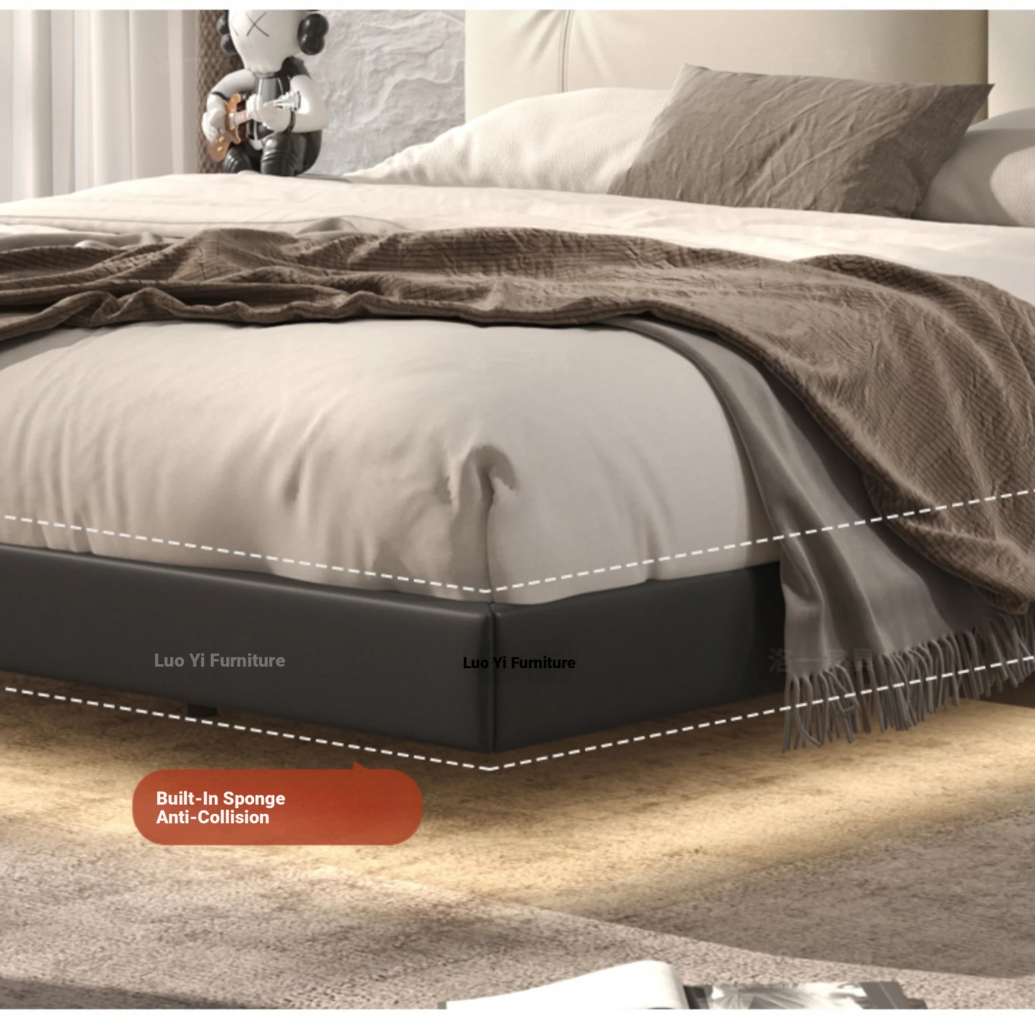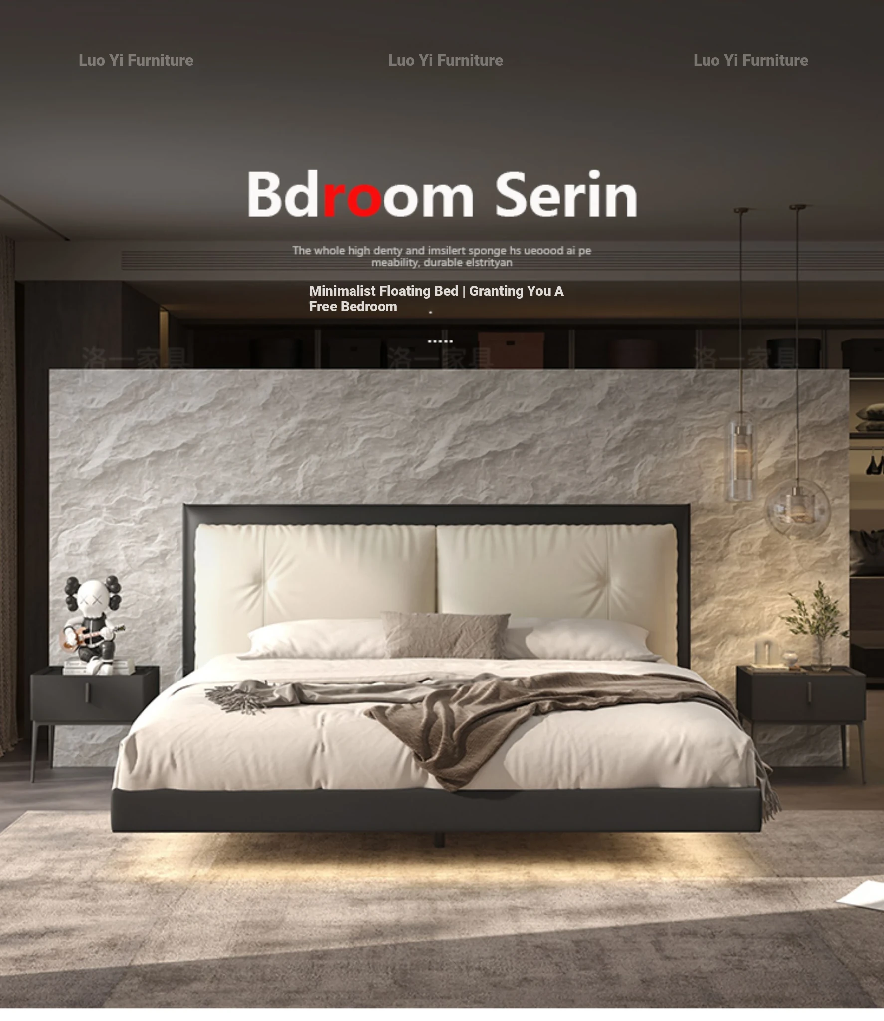 Suspended Bed - Italian Minimalist Genuine Leather Bed for Modern Master Bedrooms, Elegant Top-Grain Cowhide Upholstered Design with Soft Padding, Perfect for Newlyweds
