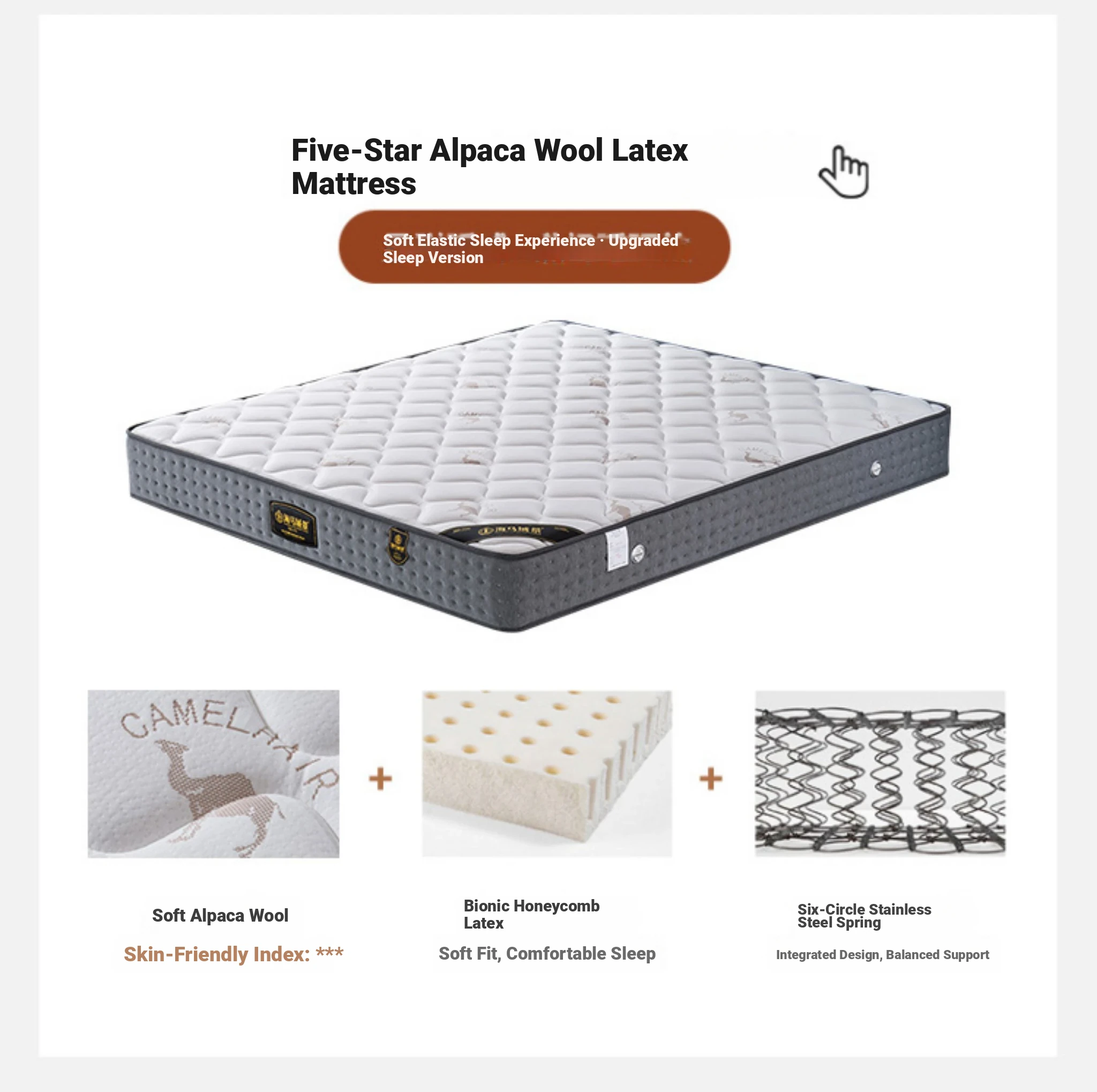 [Exclusive Edition] Single Bed + (Moderate) Five-star Camel Hair Latex Mattress (Lamp Belt)