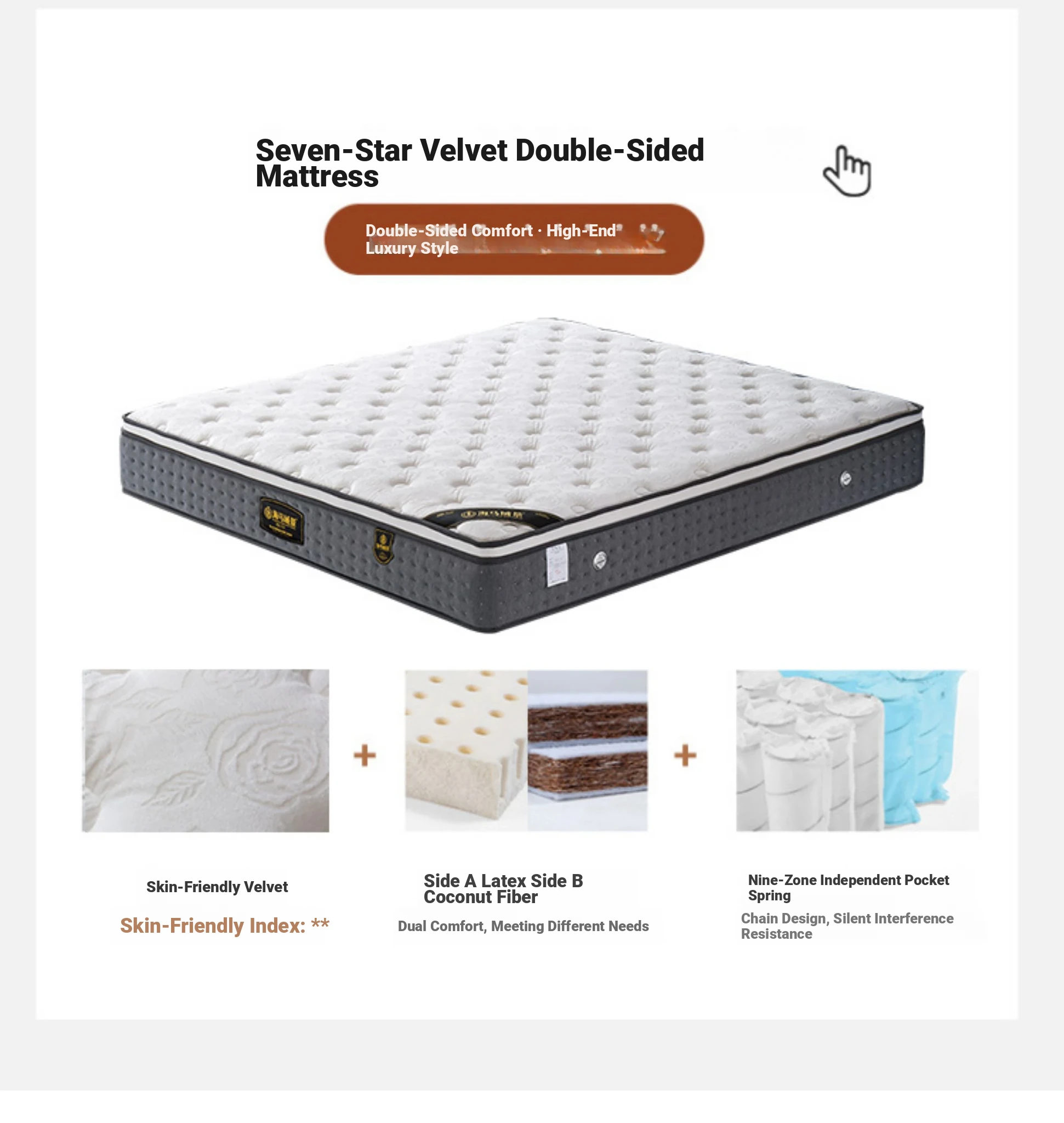 [Flagship Edition] Single Bed + (Soft) Seven-Star Velvet Double-Sided Mattress (Light Belt)