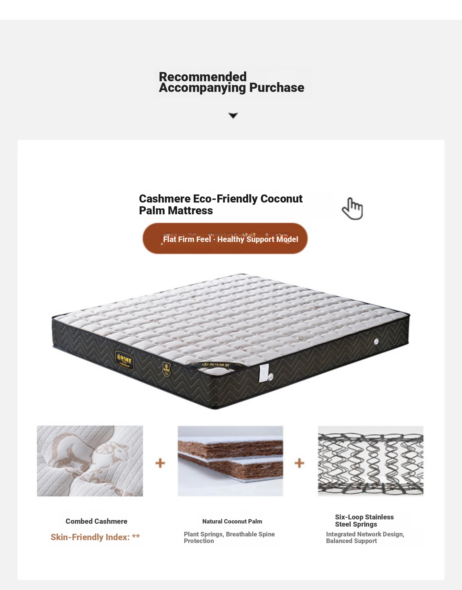 [Flagship Edition] Single Bed + (Hard) Cashmere Environmental-Friendly Coconut Mattress (Light Belt)