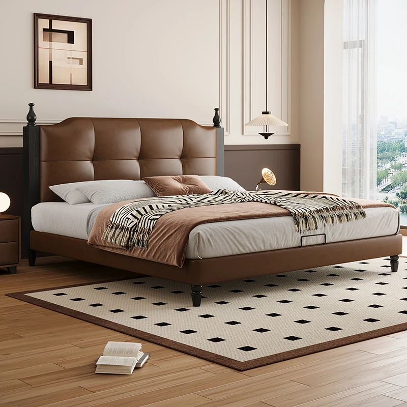 Vintage Retro High Pressure Storage Leather Bed - 2025 New Model for Small Apartments, Available in 1.5m/1.8m Sizes, Perfect for Master Bedrooms and Couples