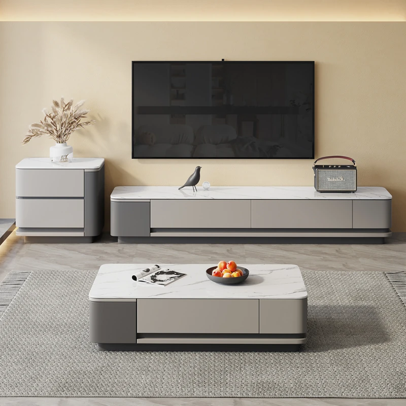 Modern Minimalist Italian-Style Rock Plate Coffee Table & TV Cabinet Set for Small Apartments – Trendy Storage Solution for Living Rooms