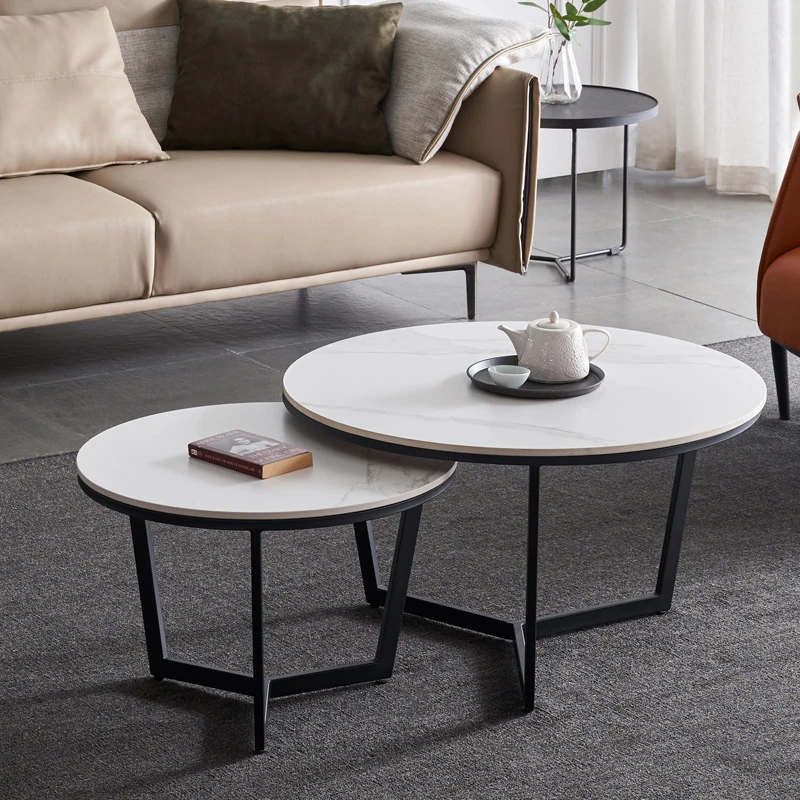 Modern Minimalist Round Coffee Table and TV Stand - Nordic Style Luxury for Small Living Rooms, Featuring Imported Rock Plate - Perfect Combination for Your Home!