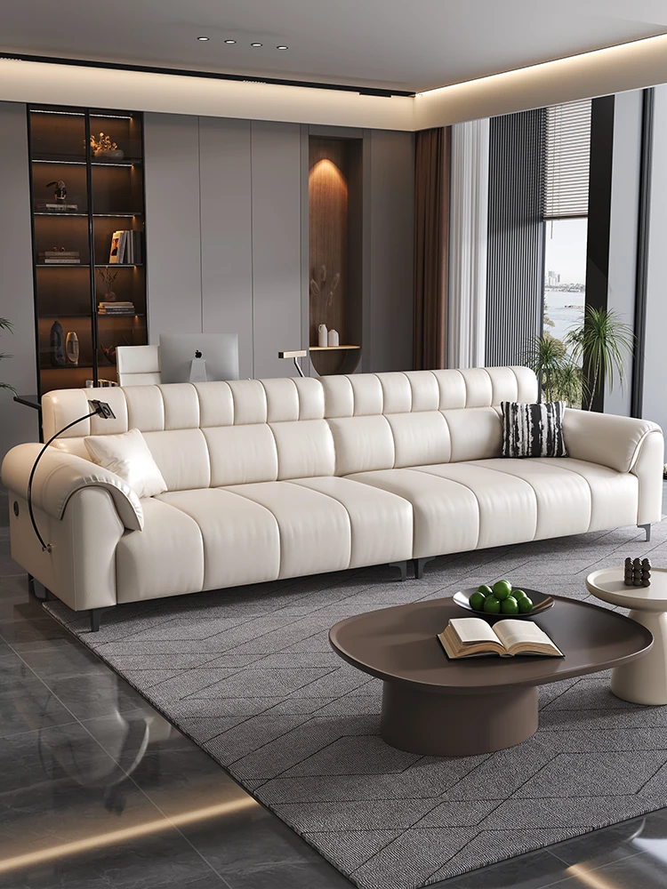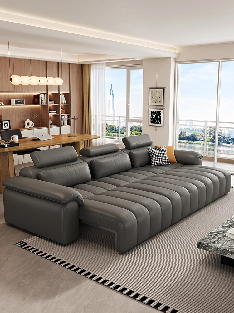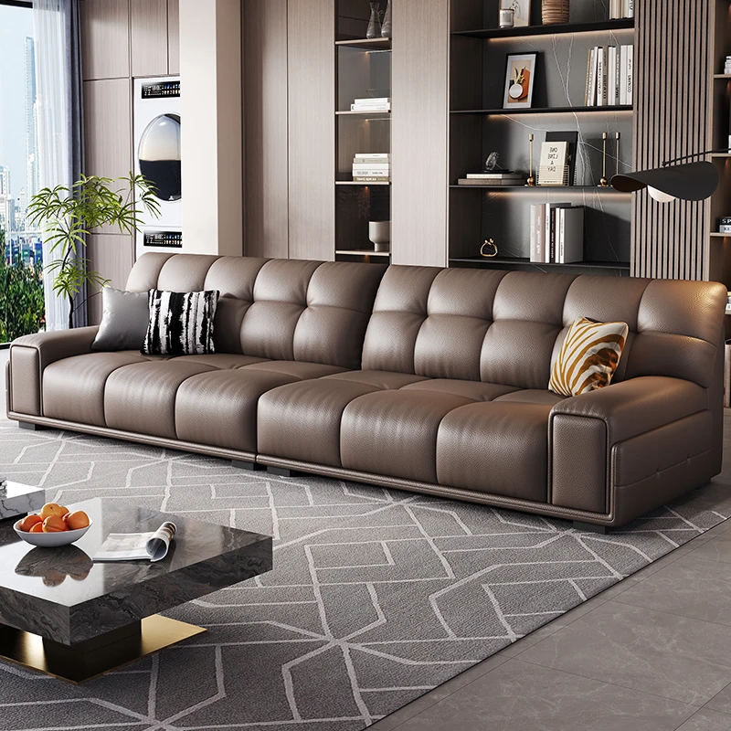 2025 New Italian Genuine Leather Sofa for Small Spaces - 3m Straight Design with No Backrest, Made from First-Class Cowhide, Perfect for Living Rooms, 2.8m Size Ideal for Compact Homes.